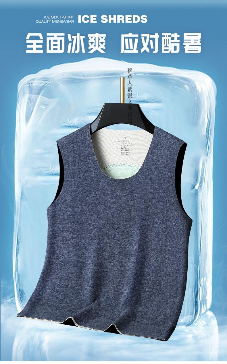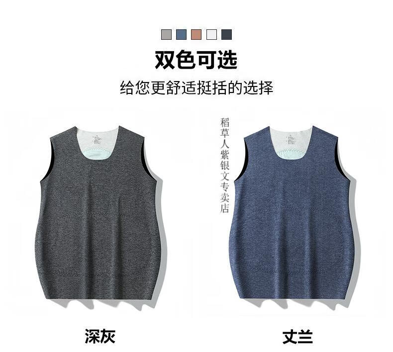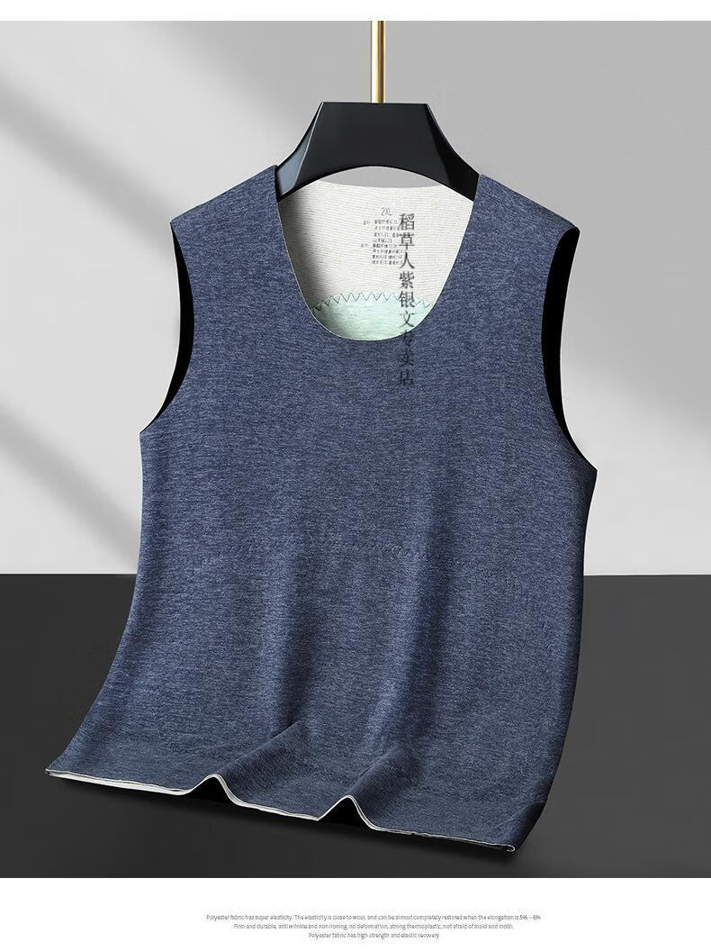 Scarecrow 2024 Men's Belly Protective Warm Vest Plus Size Sleeveless Bottoming Light Luxury Men's Soft Skin Friendly Fat Vest Navy Blue 2XL