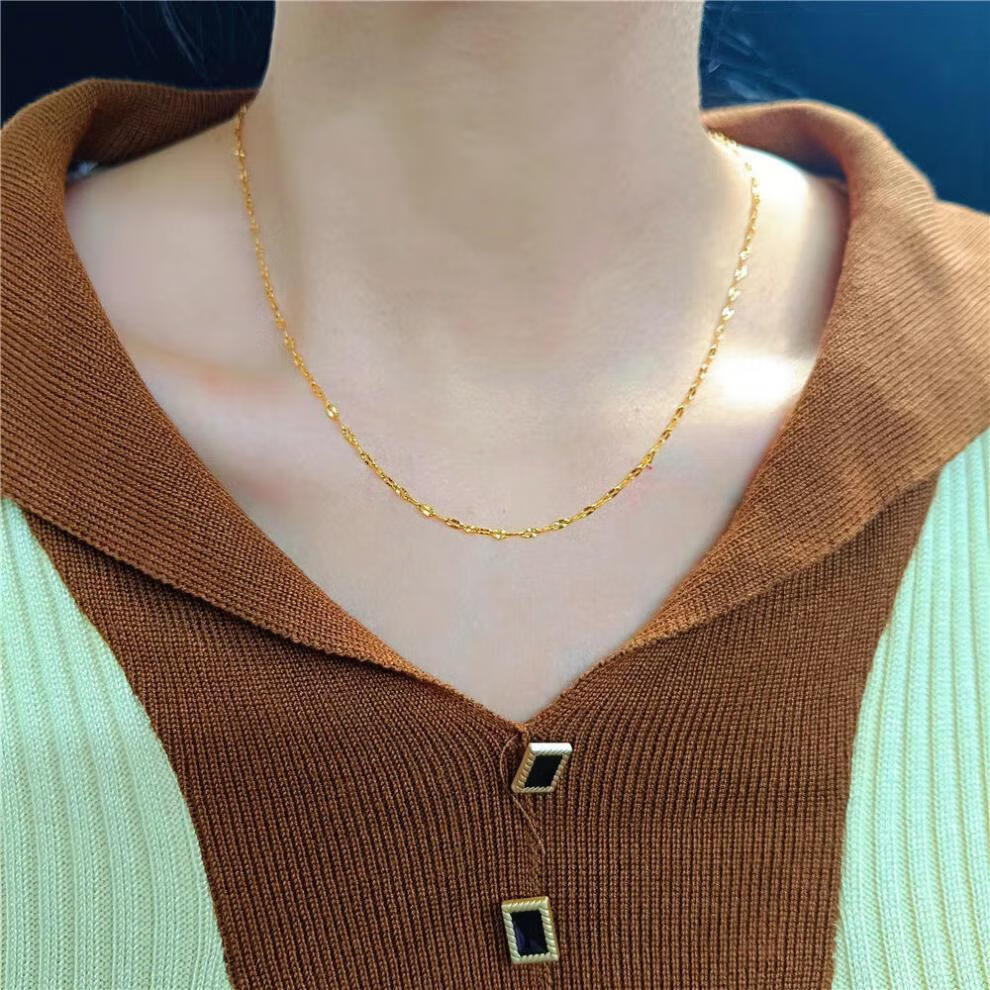 Zhijue pure gold 999 gold necklace for men and women, pure gold chain, clavicle chain, gold color water wave chain, gift for girlfriend, gold water wave chain 0.01g