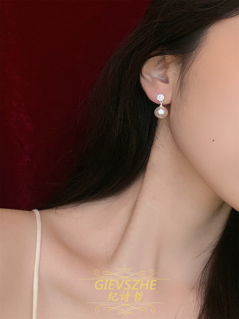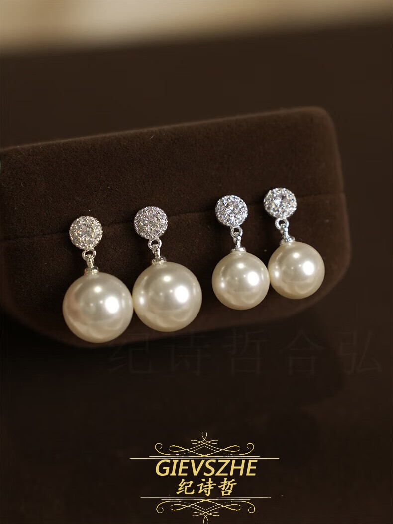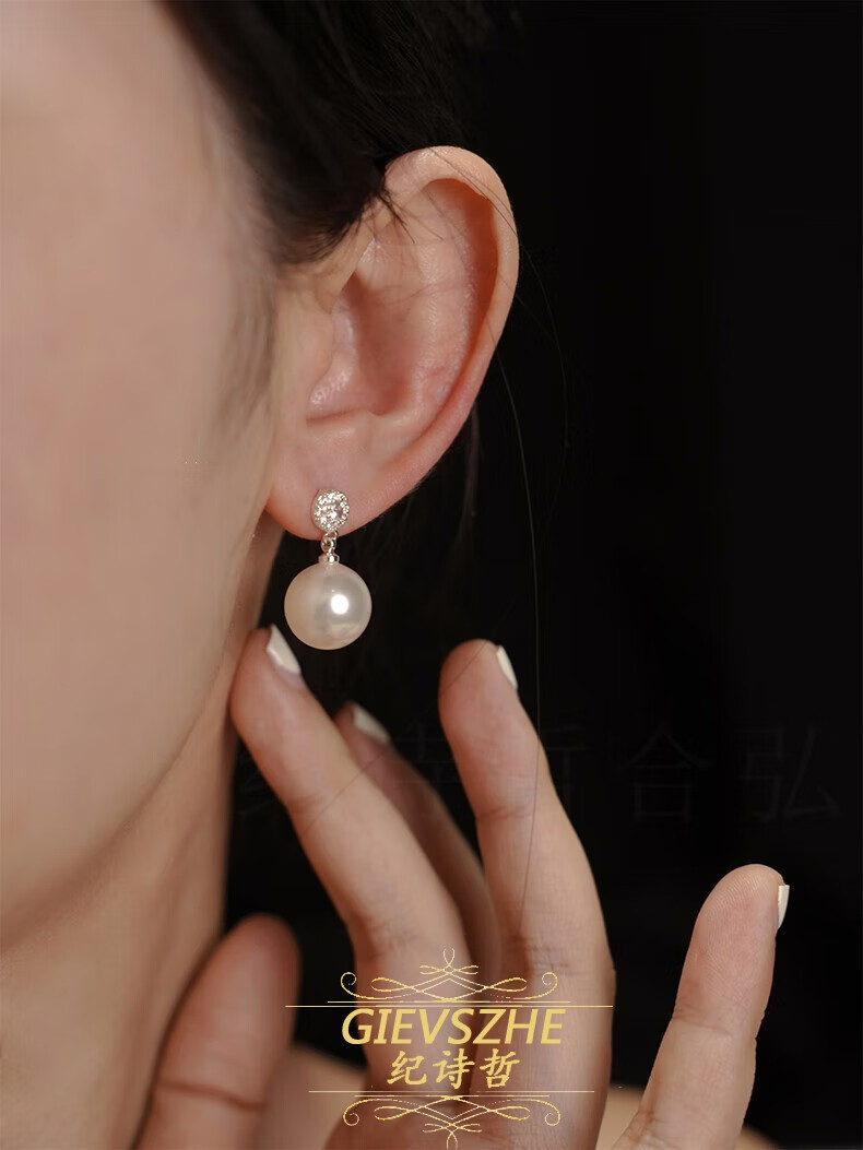 GIEVSZHE Light luxury freshwater pearl earrings for women without piercing, practical heart-shaped birthday and Valentine's Day gift for girlfriend and wife, white pearl 10mm with pierced ears, same day/next day delivery