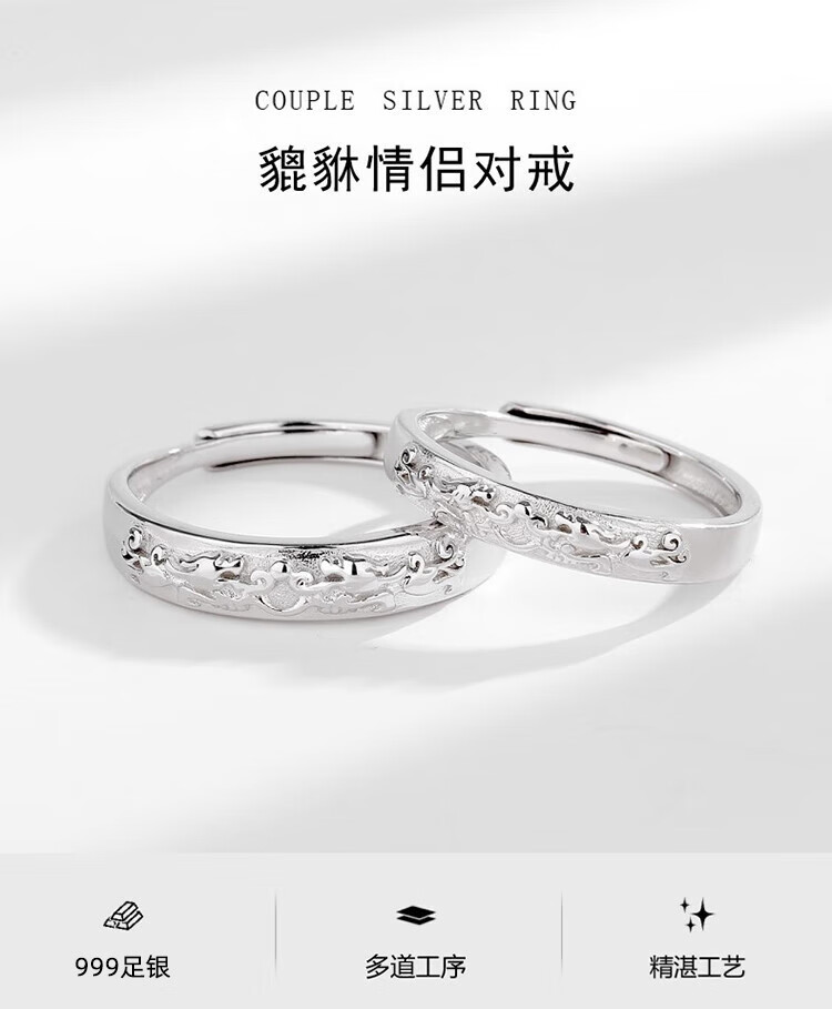 Zhongyi Pixiu 999 Pure Silver Couple Rings Pair of Men's and Women's Sterling Silver Rings 2024 Birthday Gift for Girlfriend (999 Pure Silver) Pixiu Couple Rings 3 Openings Adjustable