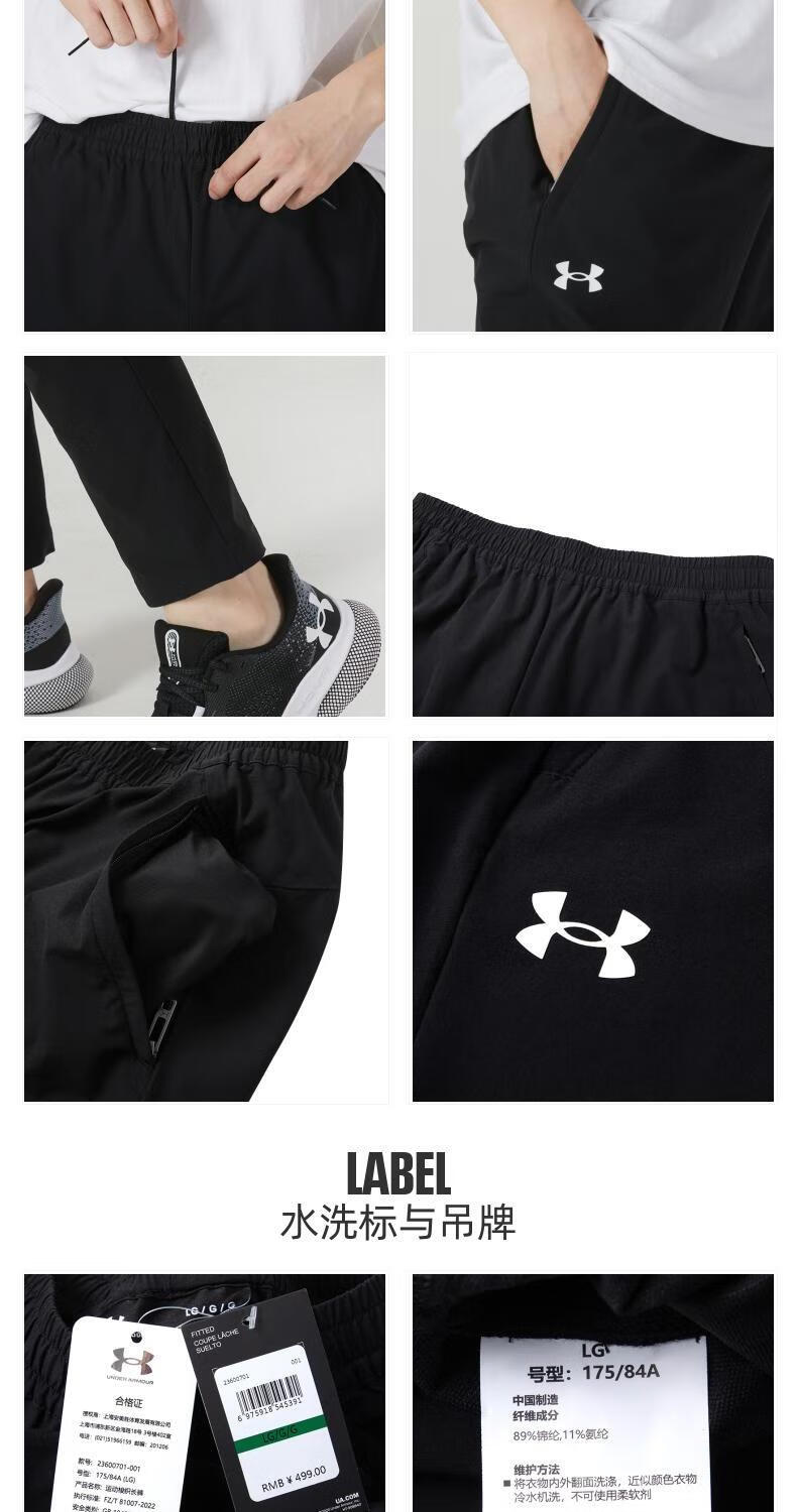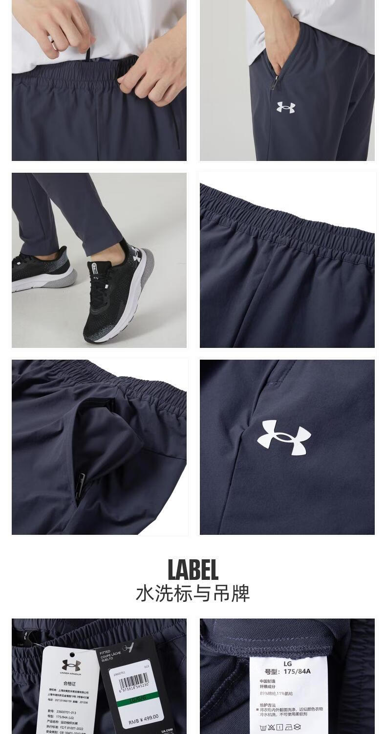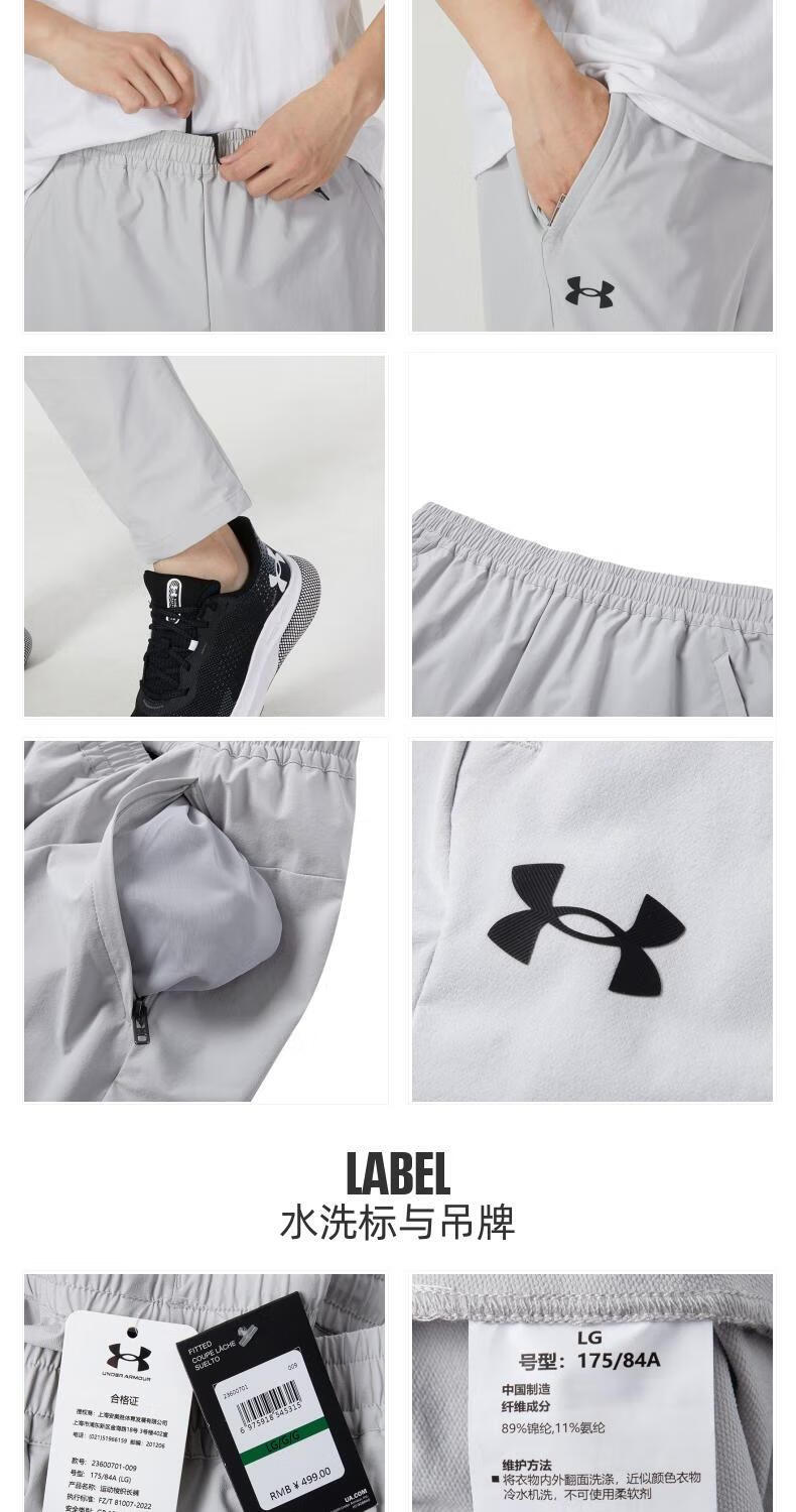 Under Armor woven quick-drying straight-leg sweatpants men's spring and autumn running training pants light gray 23600701-009 M