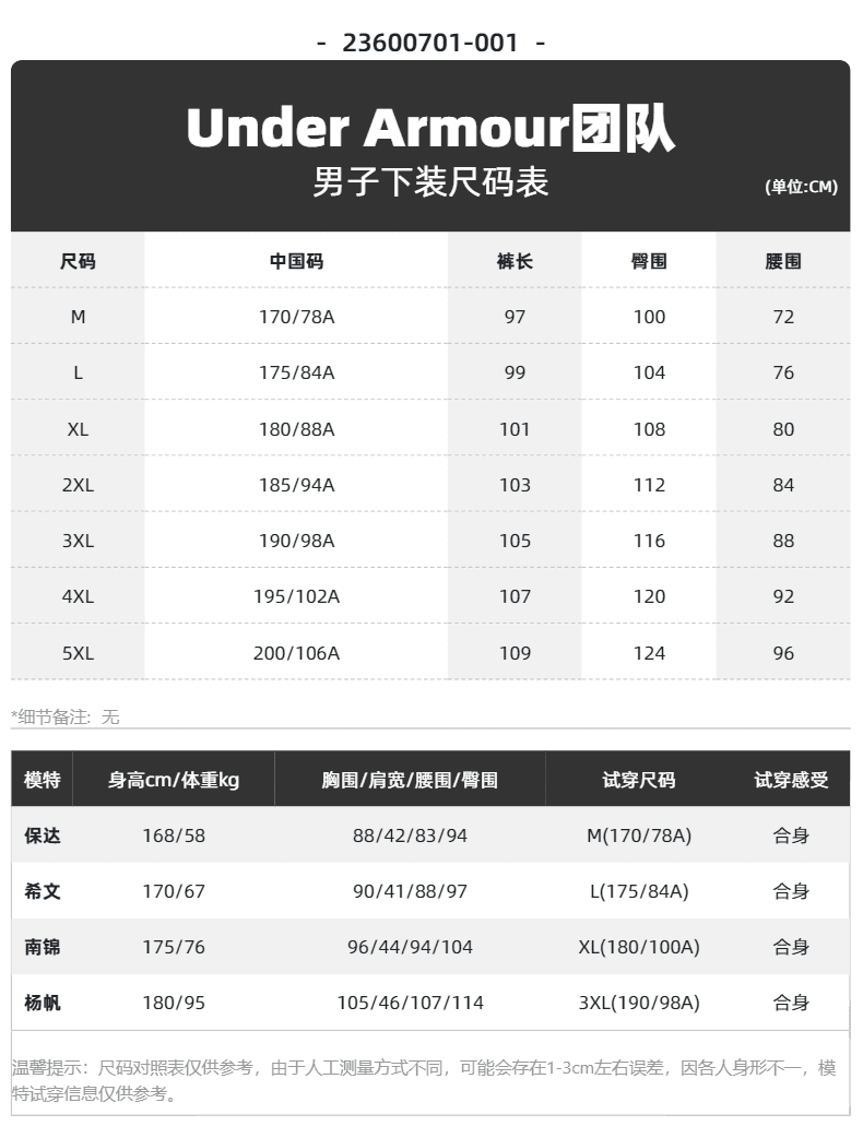 China (cm) 160-165/84-86 165-170 / 88-90 167-172 / 92-96 168-173 / 98-102 170-176 / 106-110