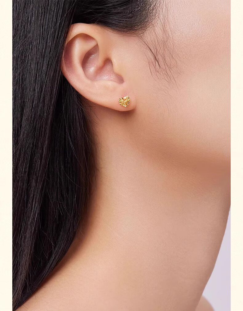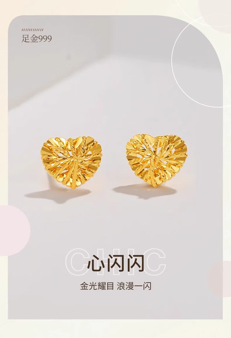 CHINA GOLD Love Gold Earrings for Women 999 Pure Gold Earrings Birthday Gift for Girlfriend and Wife Love Gold Earrings Gold Weight Approximately 1g