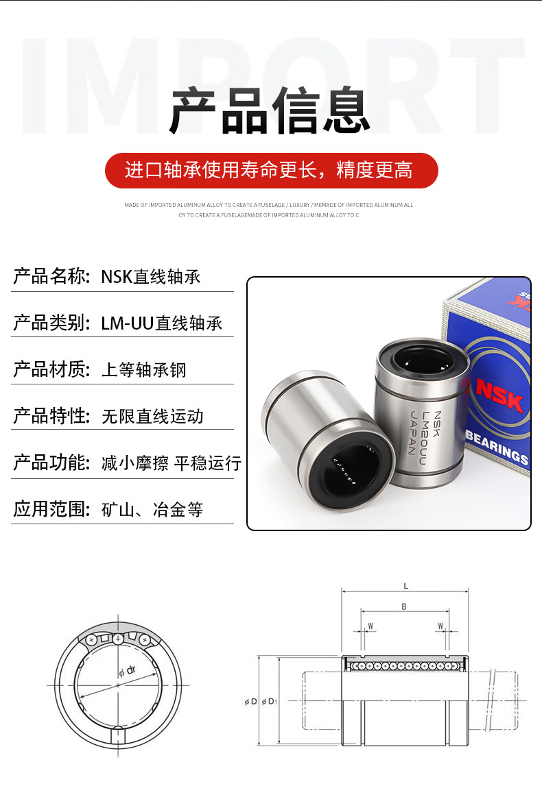 Inch non-standard linear bearing LMB LBB6 8 10 12 16 20 24 32UU and its LMB32UU