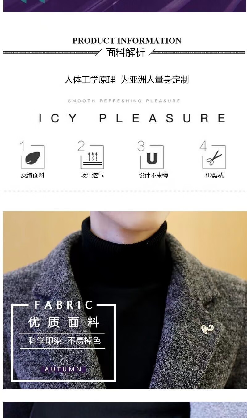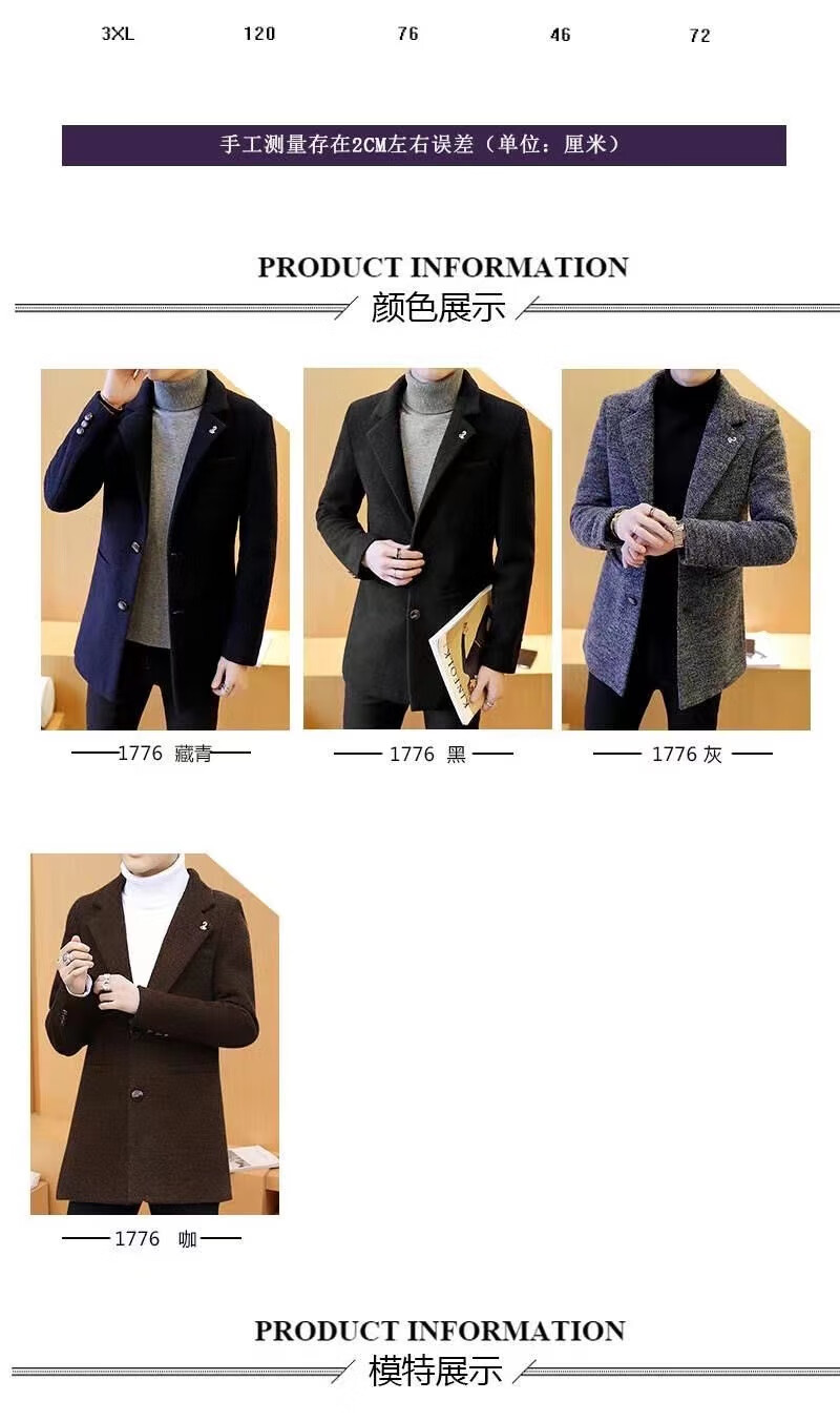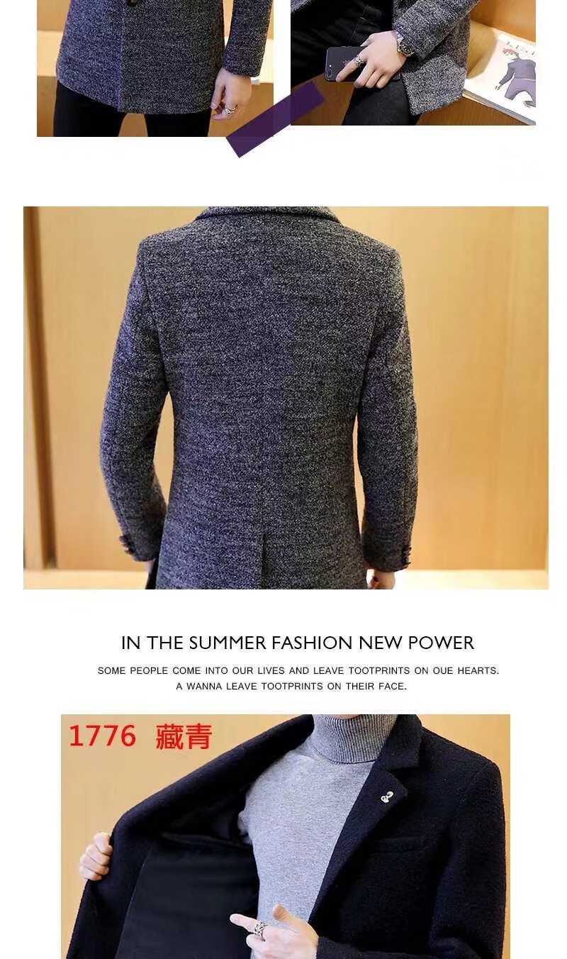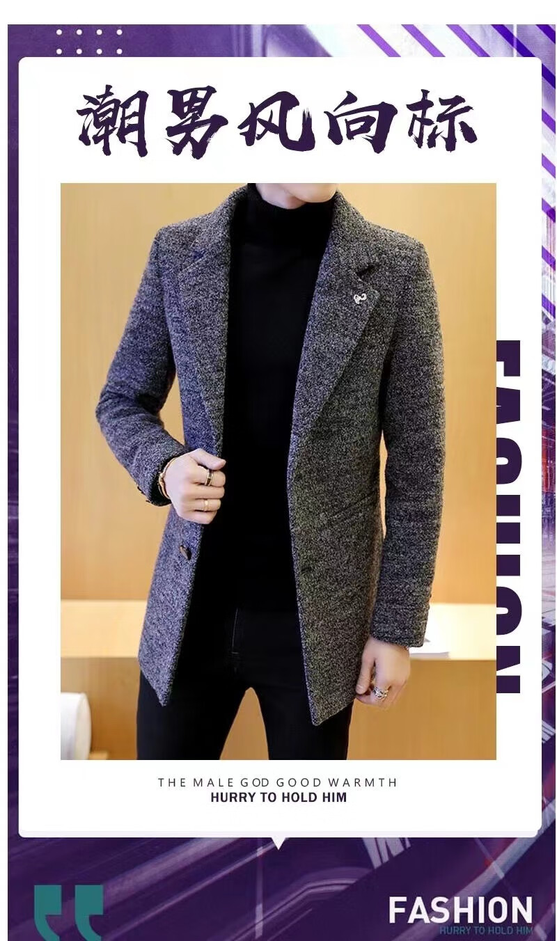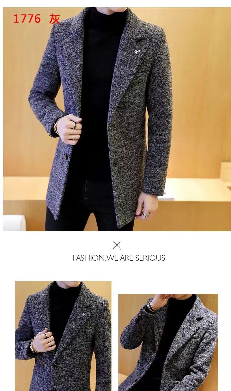 ROMON woolen coat men's windbreaker mid-length autumn and winter Korean style men's clothing Korean style trendy woolen slim coat 998 gray cotton XL 125Jin Jin equals 0.5kg -140Jin Jin equals 0.5kg