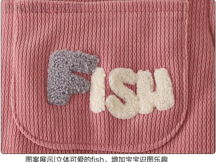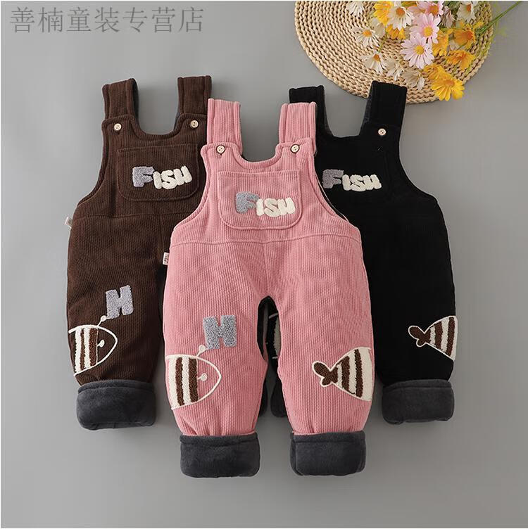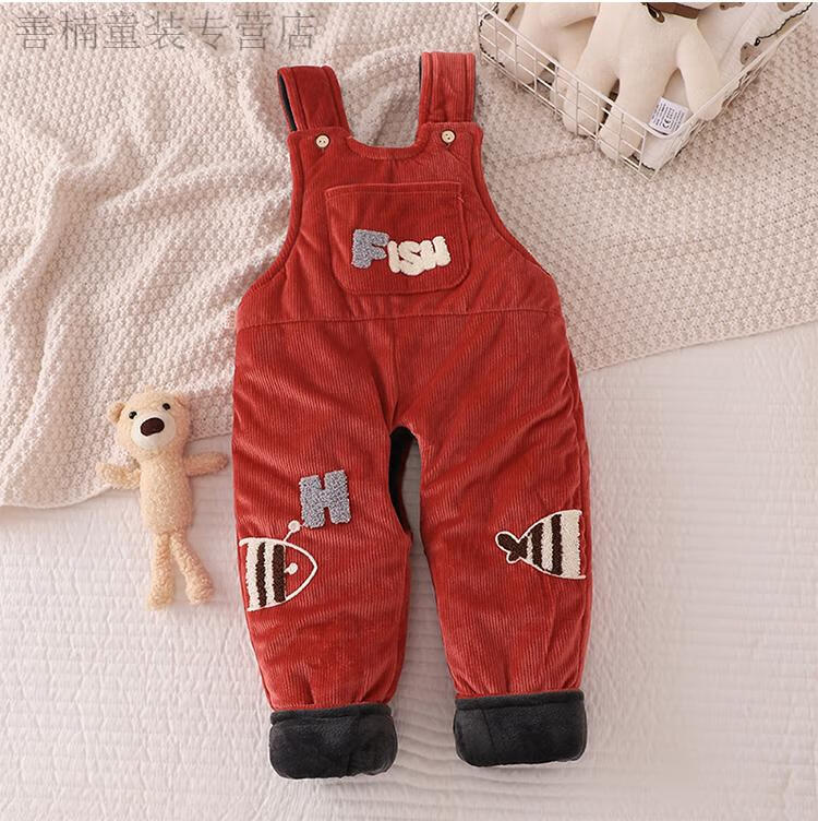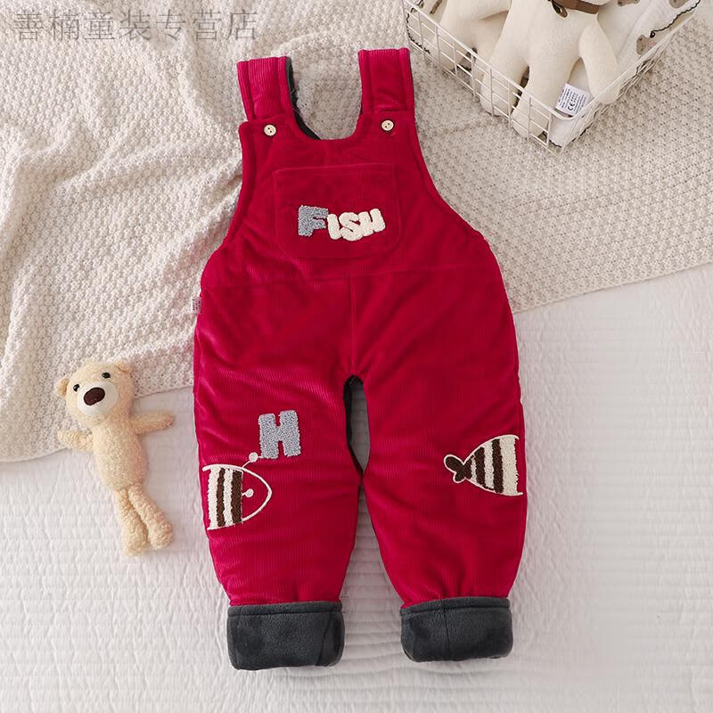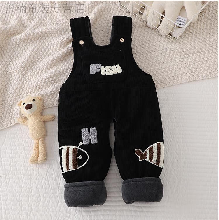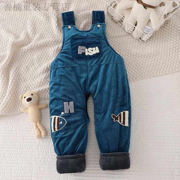 Disney (Disney) baby suspender cotton pants, a pair of winter baby open crotch suspenders, autumn and winter cotton and thickened outer pants for boys and girls, MING suspender cotton pants with pockets, FISH Duoduo fish blue 73 cm