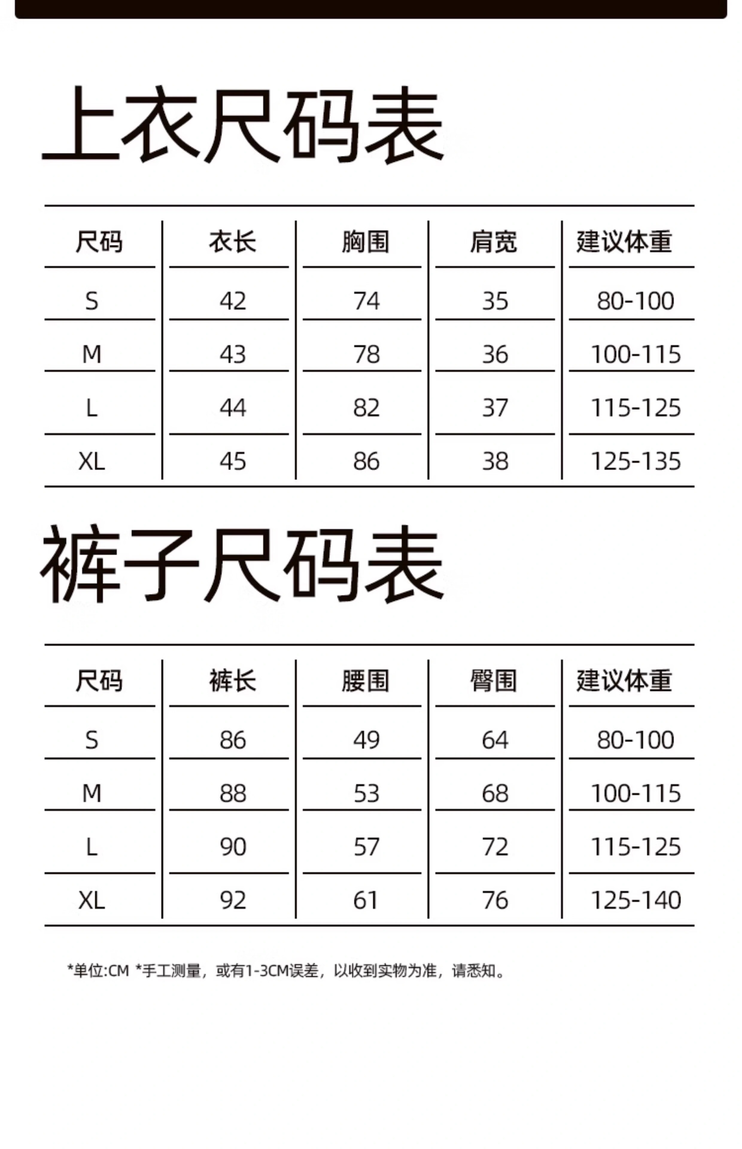 China (cm) 160-165/84-86 165-170 / 88-90 167-172 / 92-96 168-173 / 98-102 170-176 / 106-110