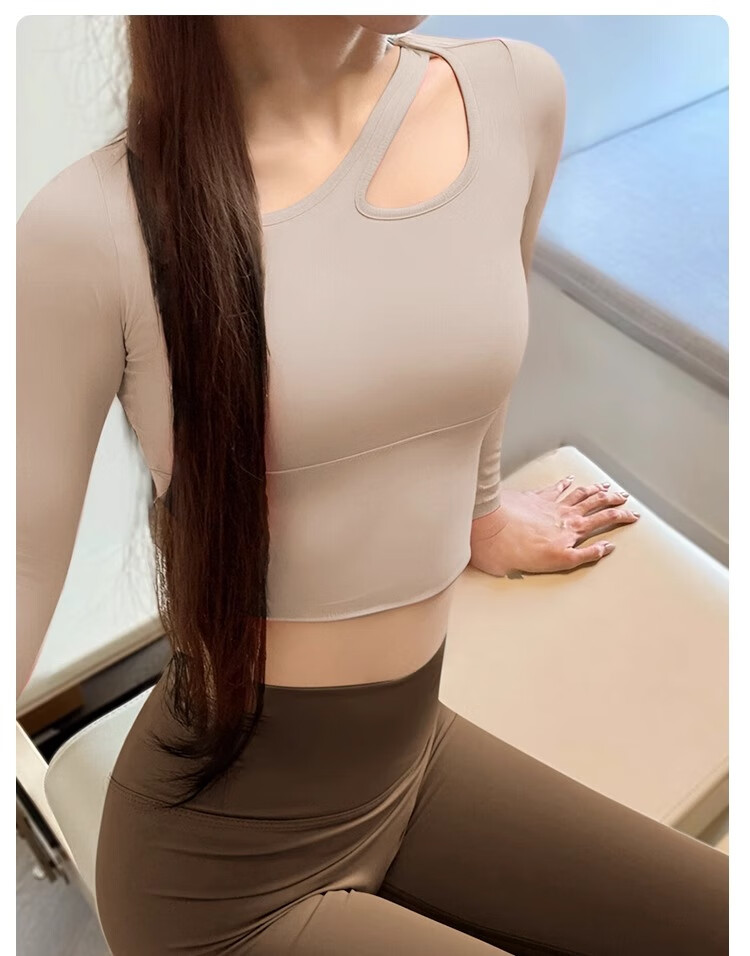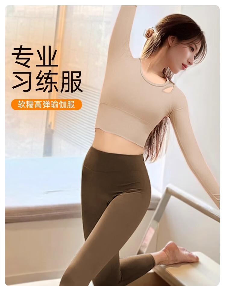 Shuangxiu Beautiful Yoga Wear Set Autumn and Winter High-end Sports Fitness Top with Chest Pad Professional Pilates Training Long Sleeve Rose Pink Top + Haiyueyan Pants Set S 80-100