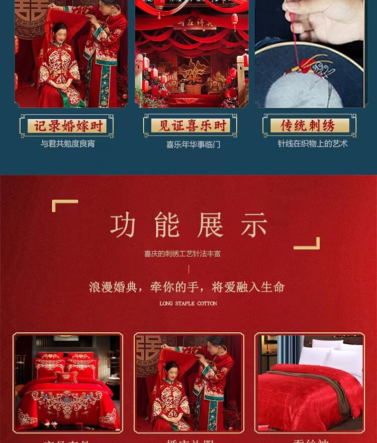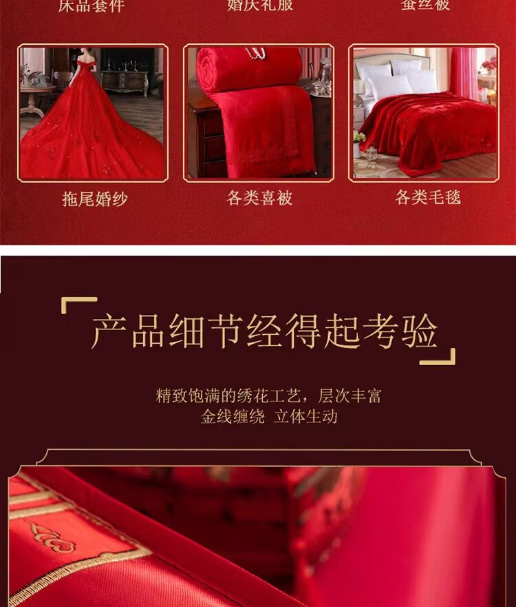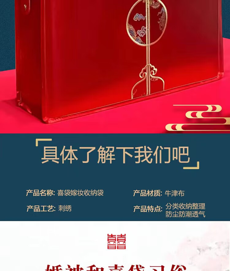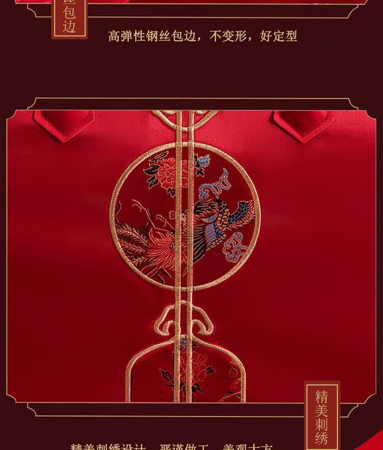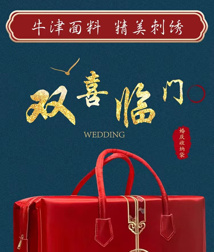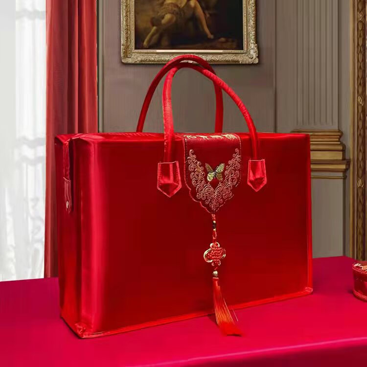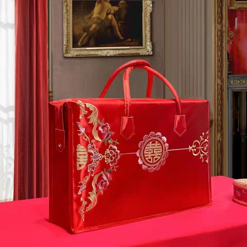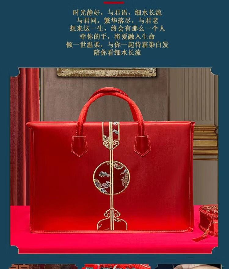 Qing Yu Xi quilt storage bag high-end wedding red four-piece suit with handbag Oxford cloth Dragon and Phoenix Chengxiang high-end satin embroidery fabric XL 60*50*33 pack 8-12 Jin Jin equals 0.5 kg quilt