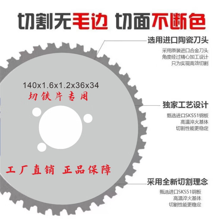Imported iron cutting saw blade steel bar steel pipe threaded steel cutting blade metal saw blade 140/255/305 cold cutting saw blade 140x1.6 thick x36 teeth x34 holes