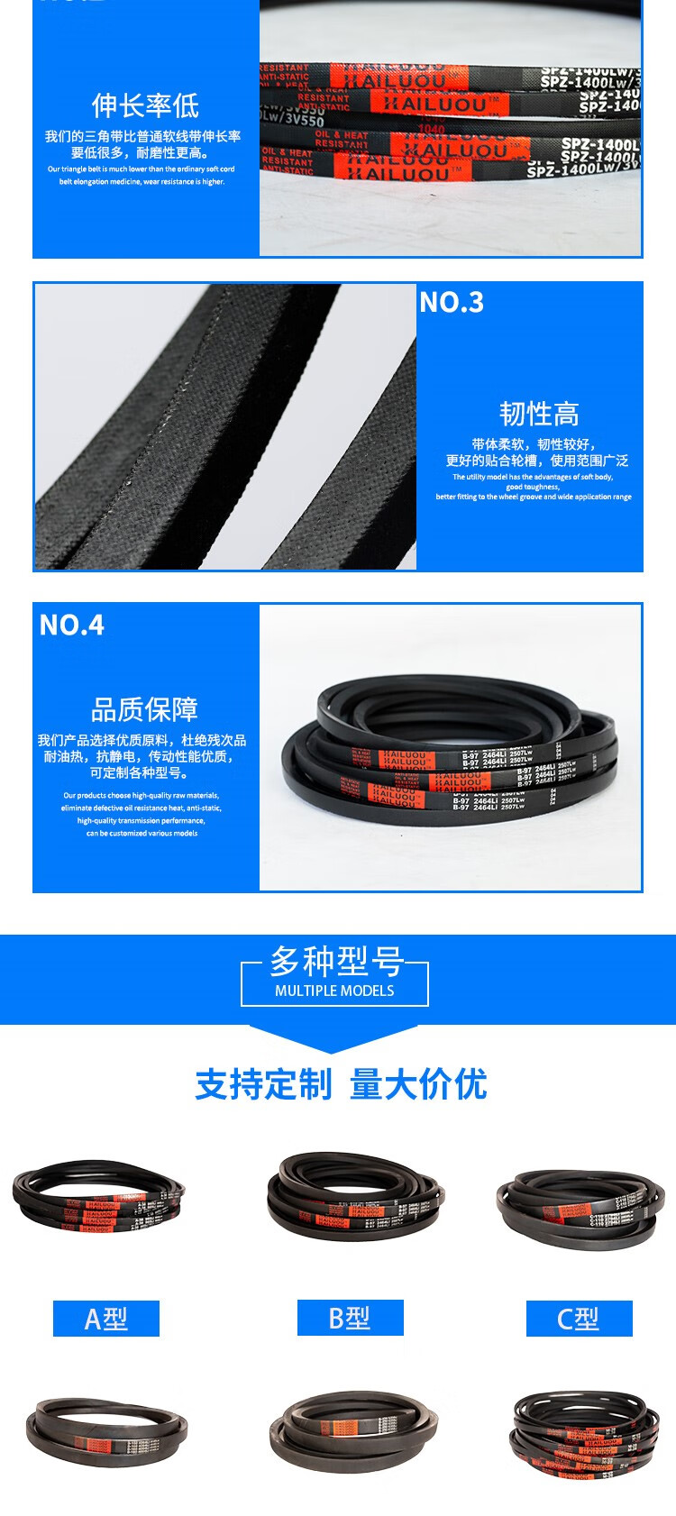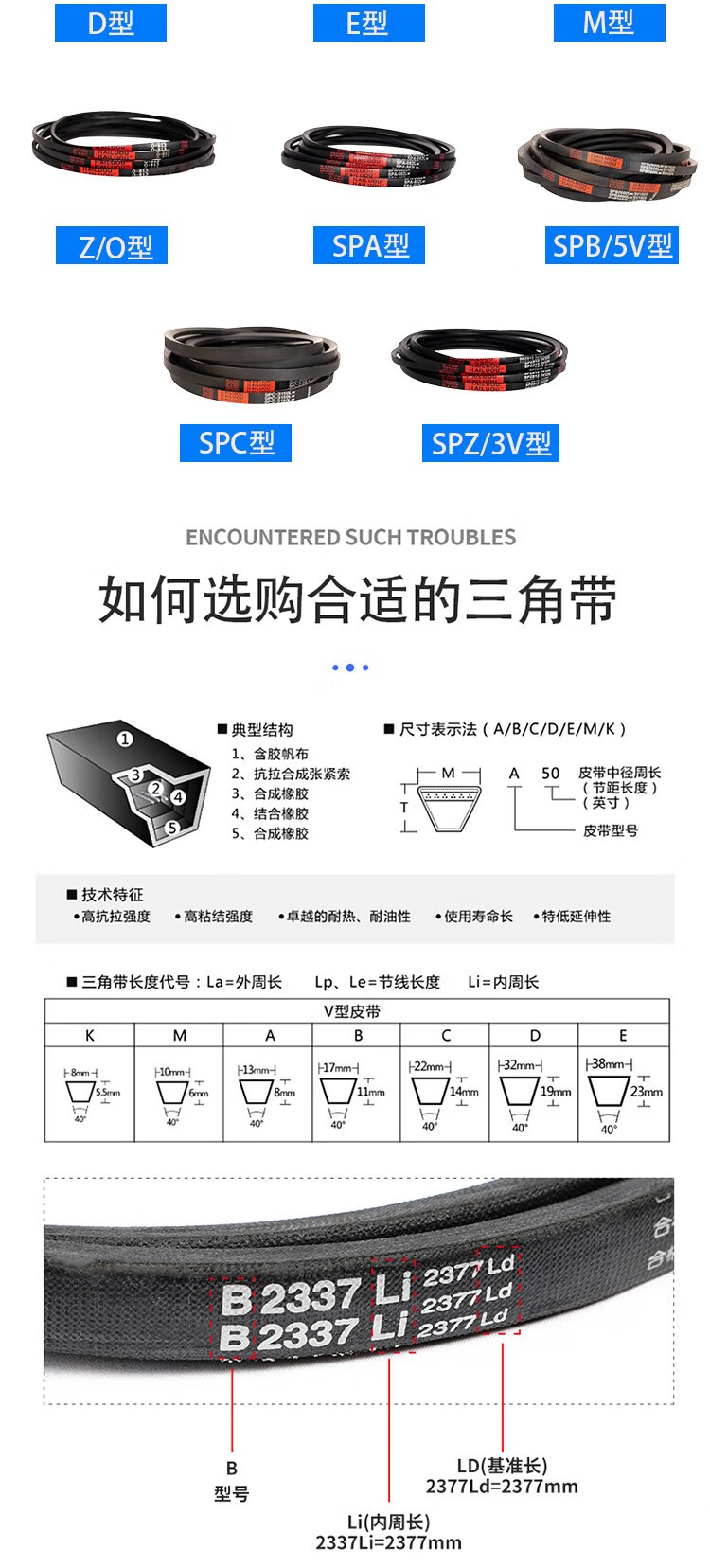 V-belt type B B1260-B2324 rubber industrial machine toothed agricultural motor transmission belt complete anti-static B 1350 Li