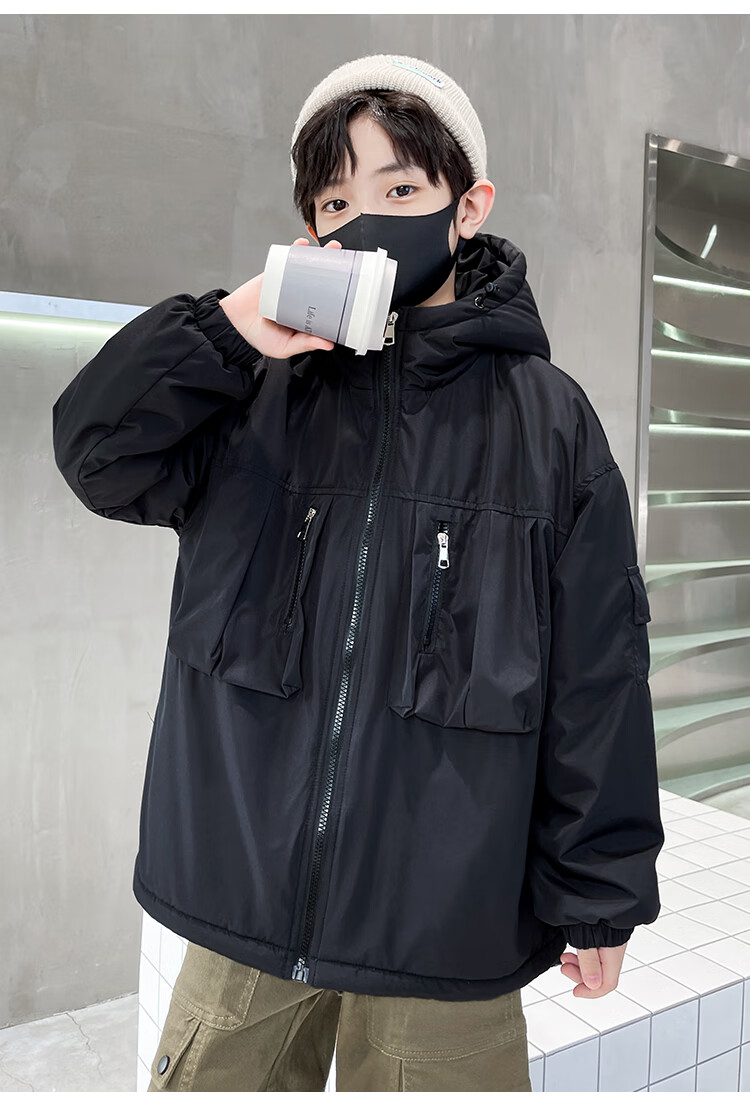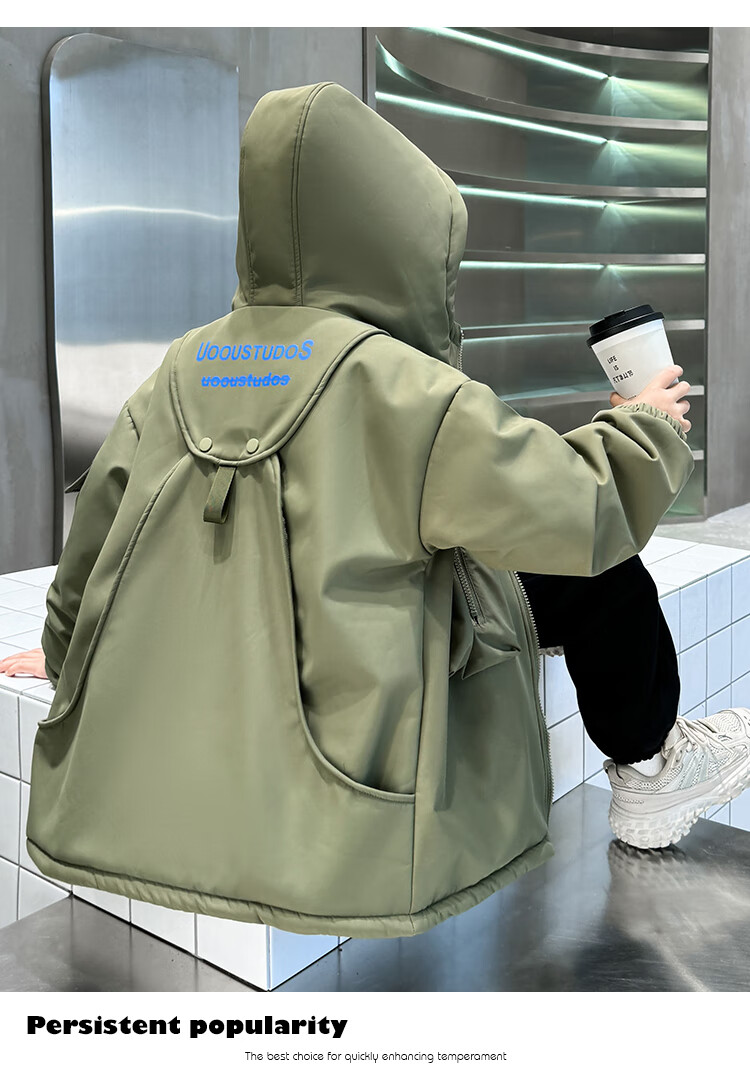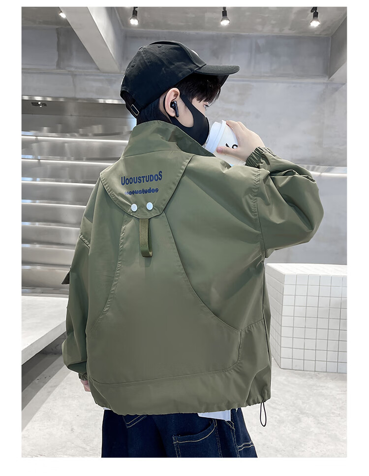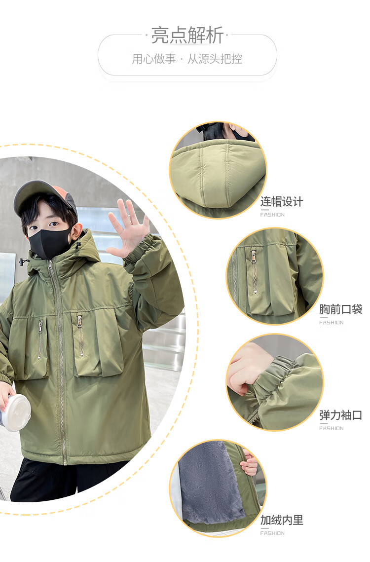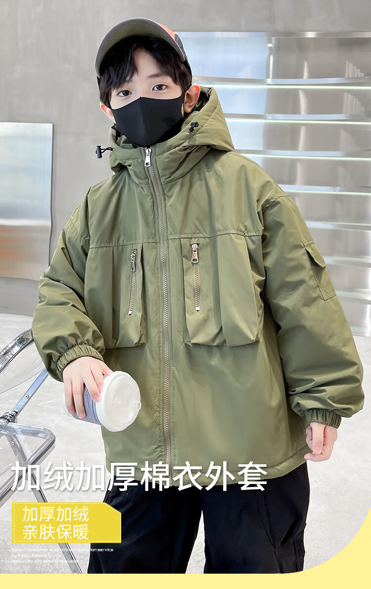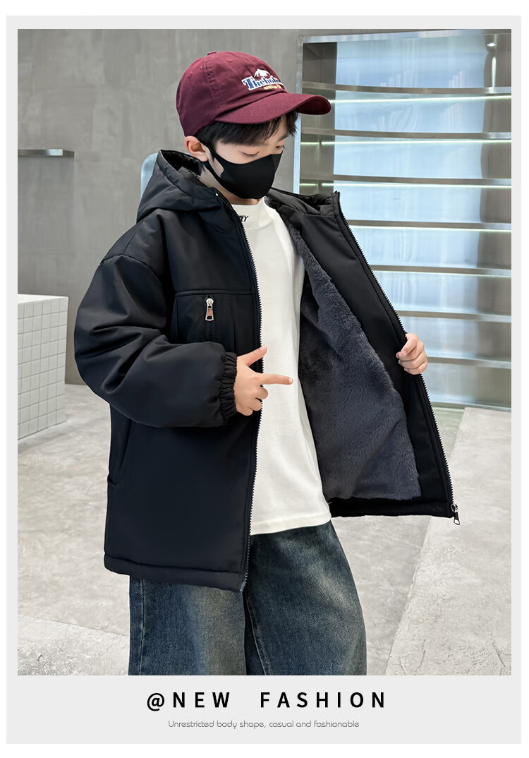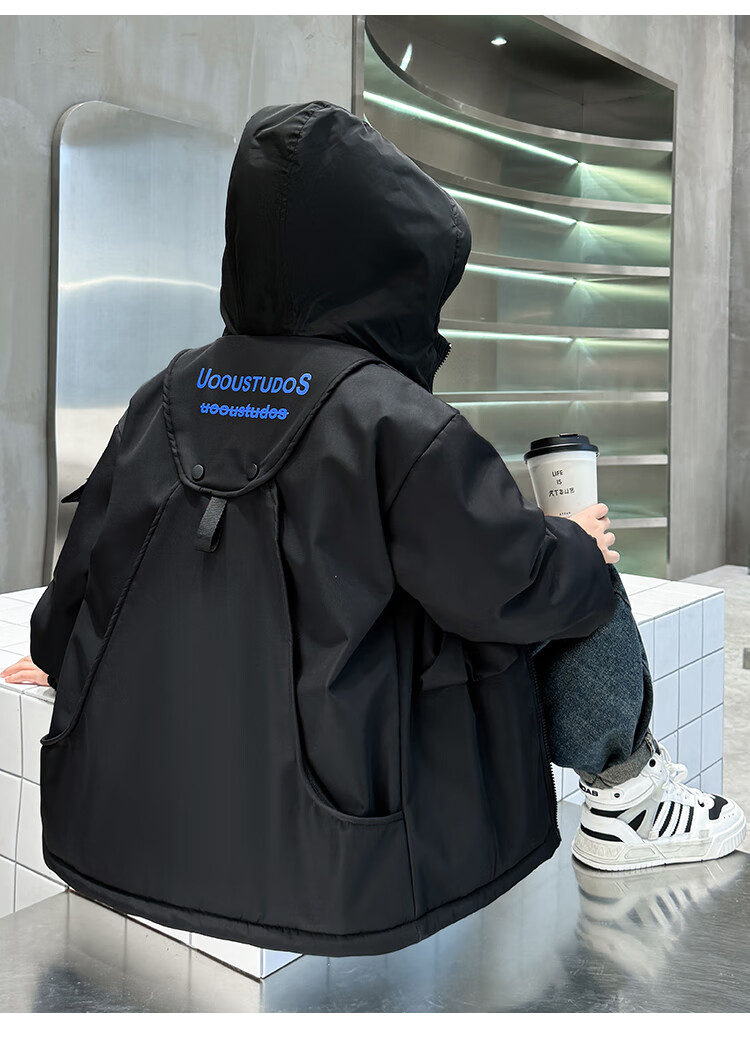 G.duck Boys' Autumn Jacket Plus Velvet Charge 2025 New Big Children's Spring and Autumn Casual Jacket Top Street Children's Clothing Black Cotton Style 110 cm