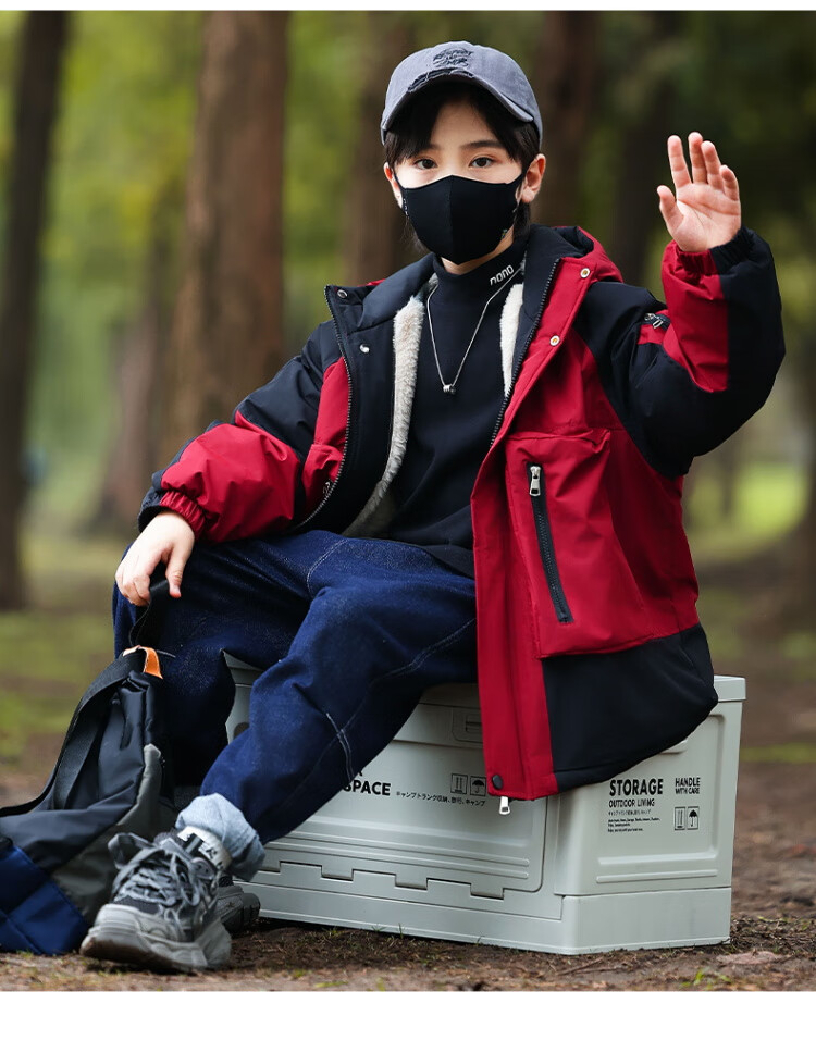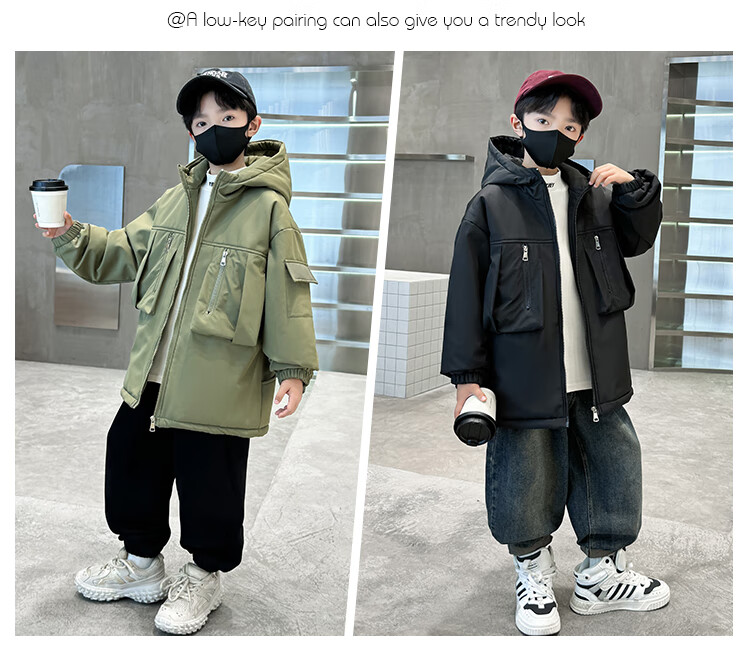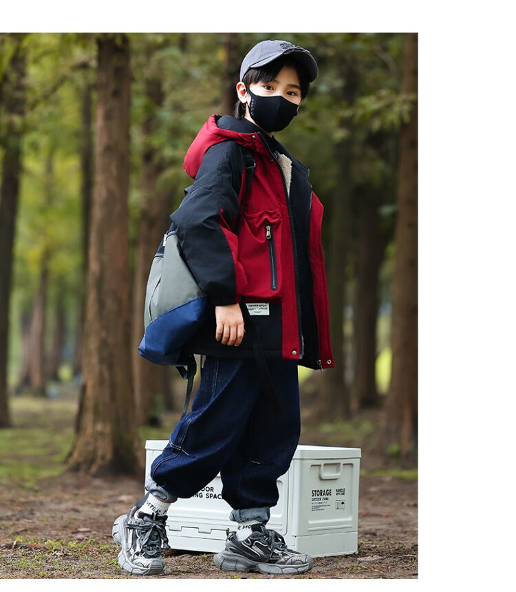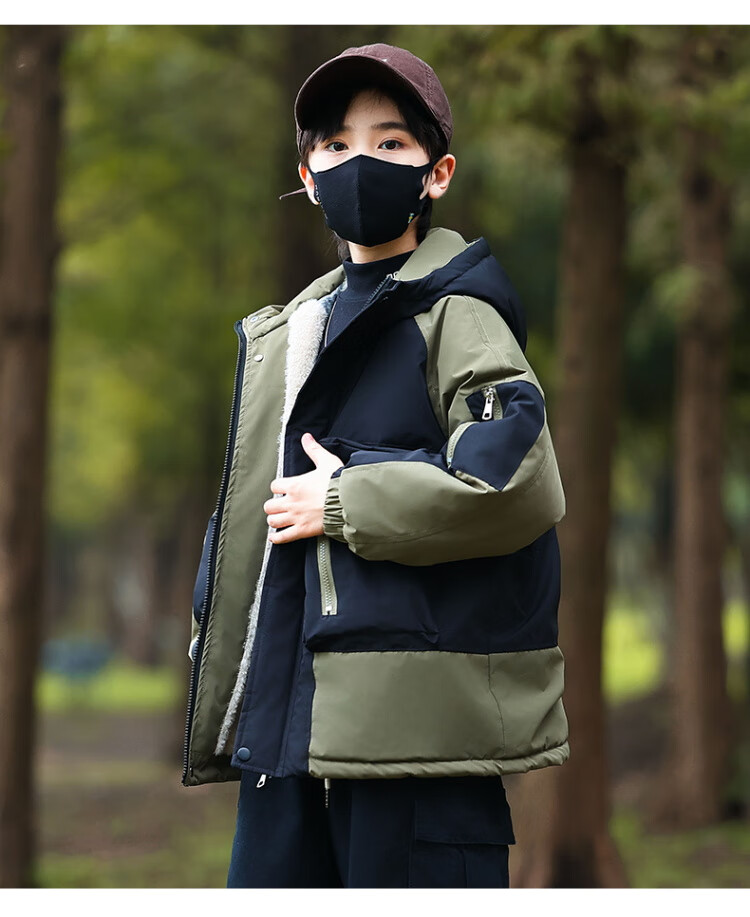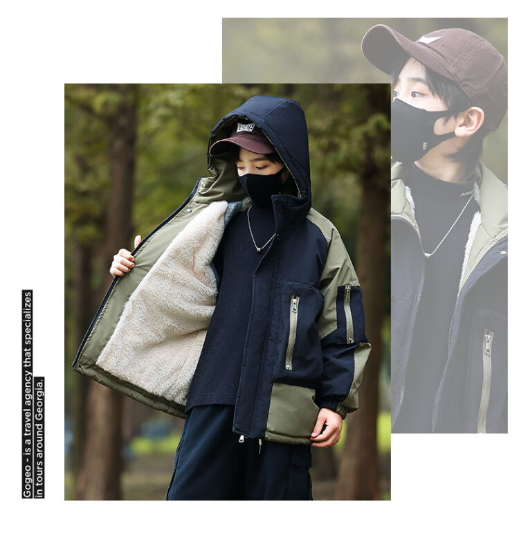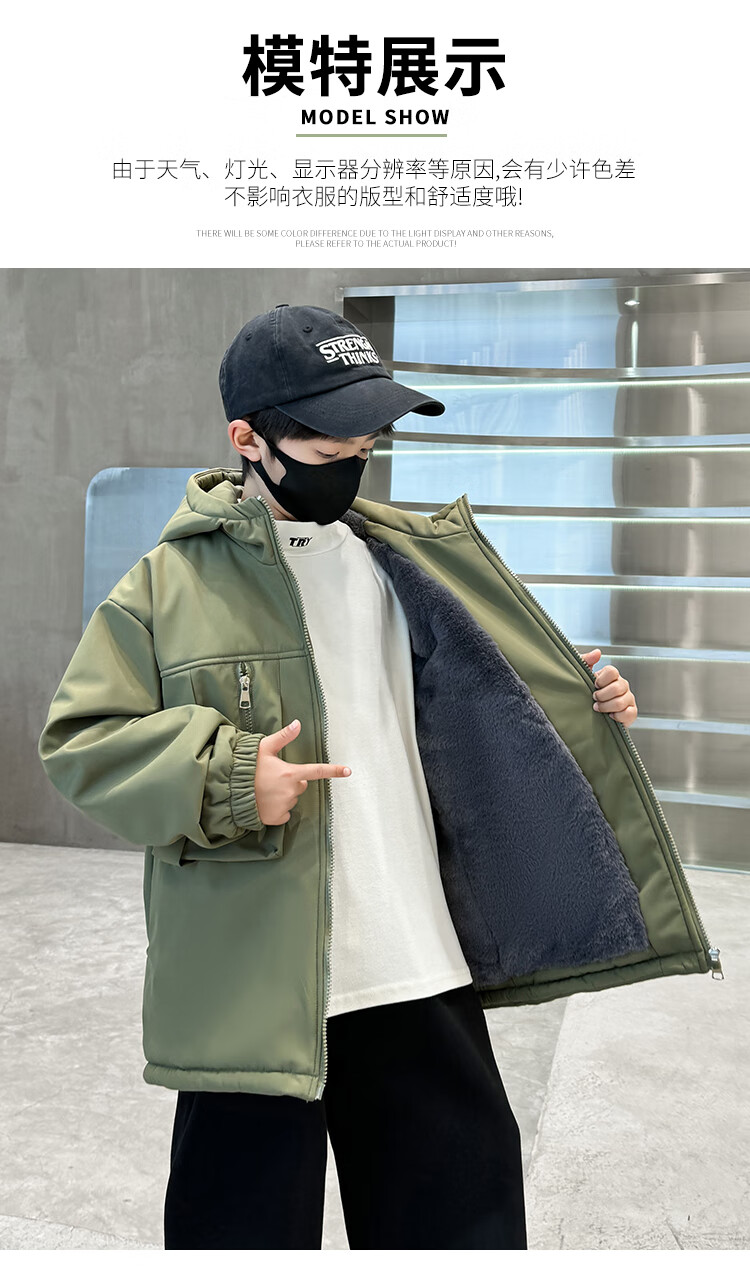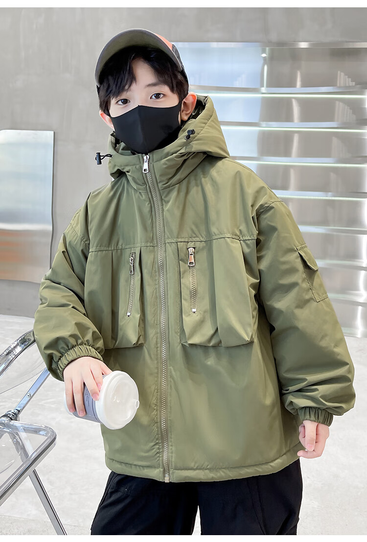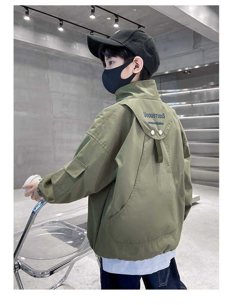 G.duck Boys' Autumn Jacket Plus Velvet Charge 2025 New Big Children's Spring and Autumn Casual Jacket Top Street Children's Clothing Black Cotton Style 110 cm