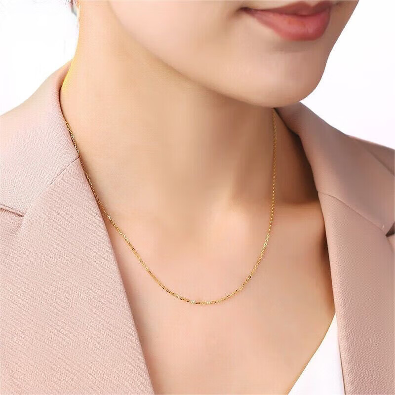 Shizhi 18k gold necklace women's plain chain gold necklace AU750 necklace K gold rose gold platinum clavicle chain flash O chain Au750 flash o chain - gold color 18k + certificate + gift box recommended thickness 1.6mm adjustable 45-47cm long
