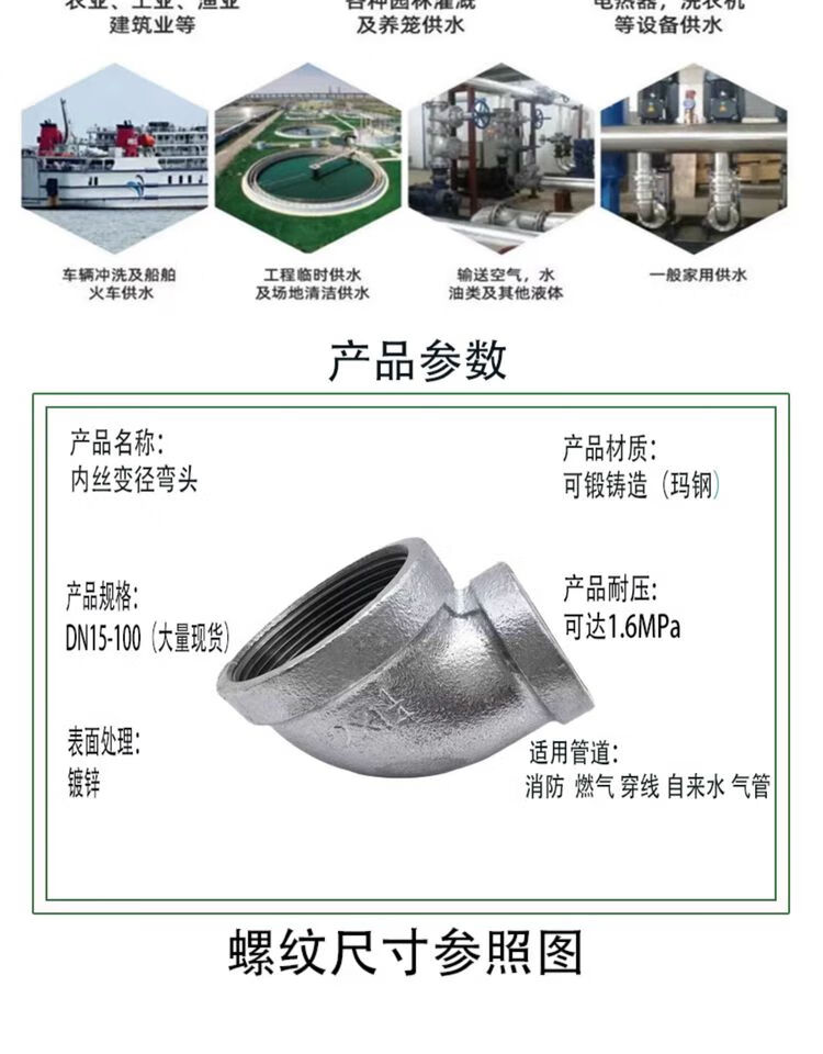 Galvanized inner wire reducing elbow 90 degree reducing pipe joint right angle bend 4 points to 6 points DN25*15 DN20*15 6 points to 4 points
