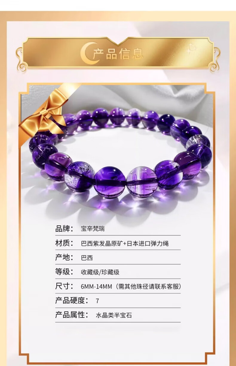 BOSFRU Natural Amethyst Hair Crystal Super Seven Lucky Bracelets Super Seven and Three Wheels Backbone Crystal Bracelet for Best Friend and Girlfriend Collection Grade Natural Brazilian Amethyst Hair Crystal-11mm