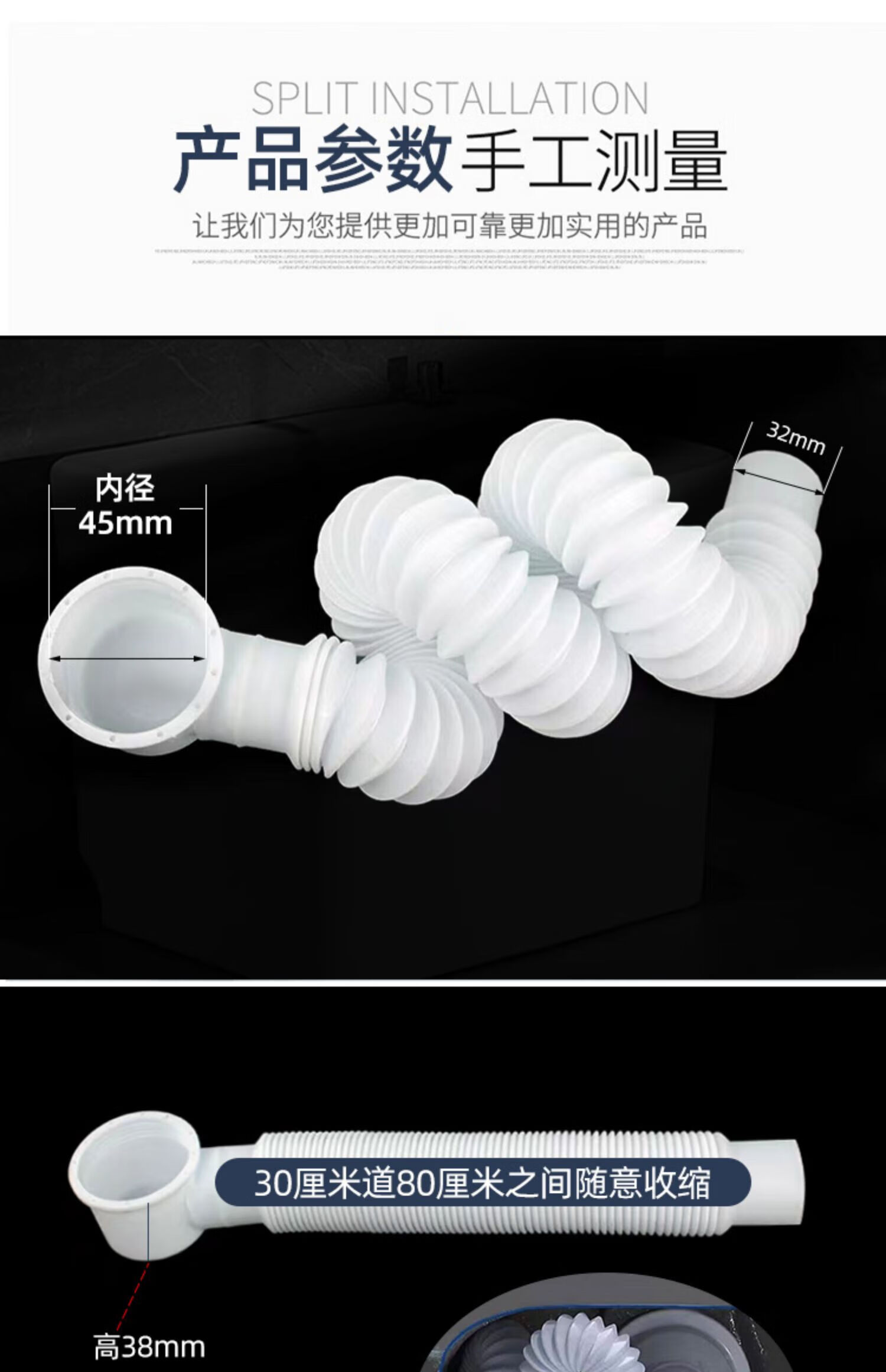Suitable for mop pool mop pool drain drain pipe mop pool bathtub thickened and lengthened universal horizontal row bottom 80cm white horizontal row pipe (stretchable)