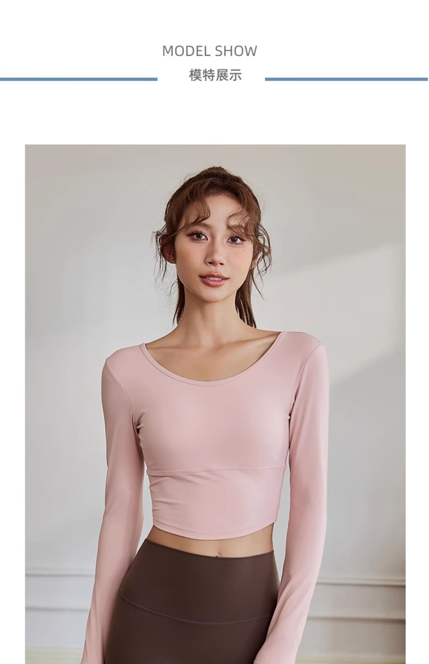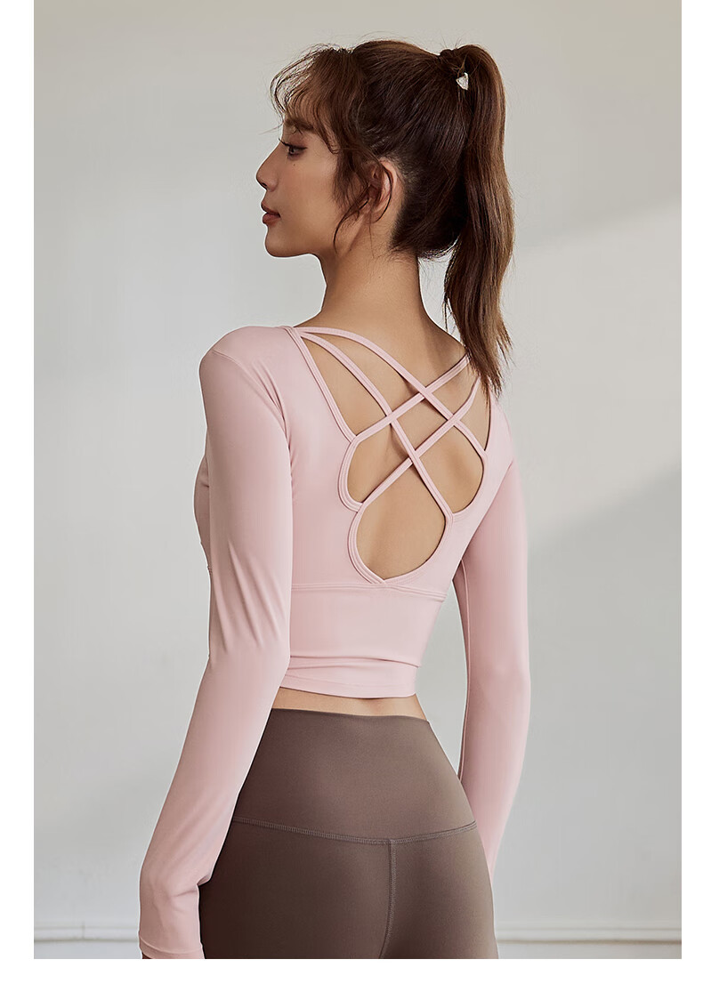 Dcw hollow beautiful back yoga top women's fixed chest pad free underwear Pilates training clothes fitness long-sleeved T-shirt black M