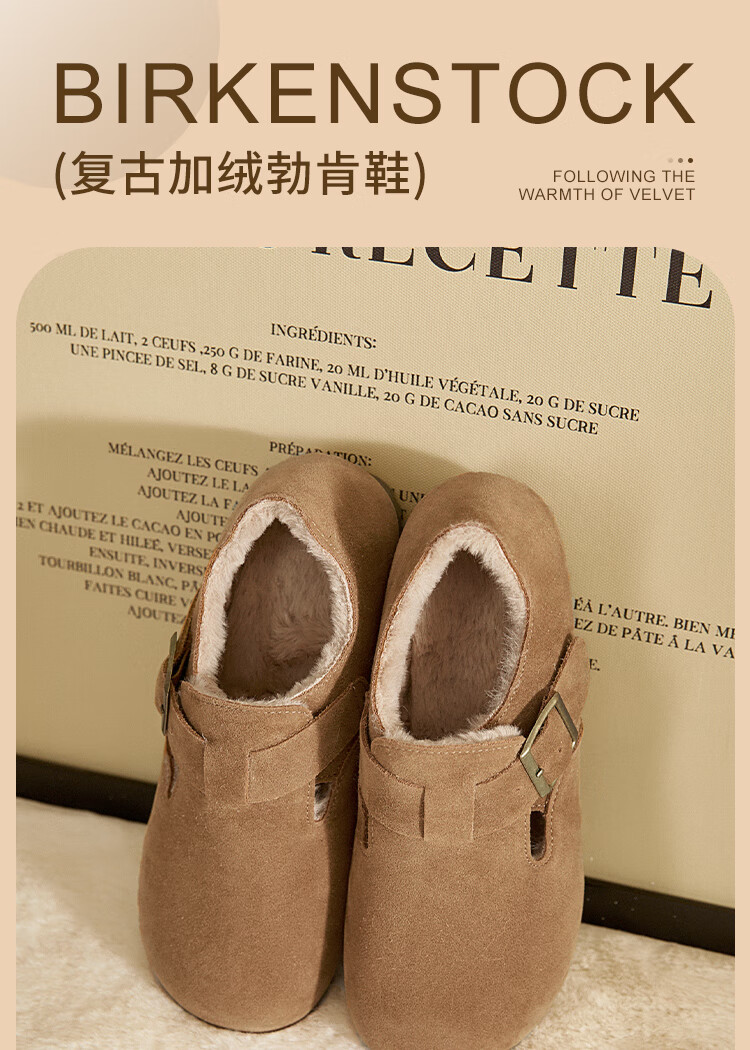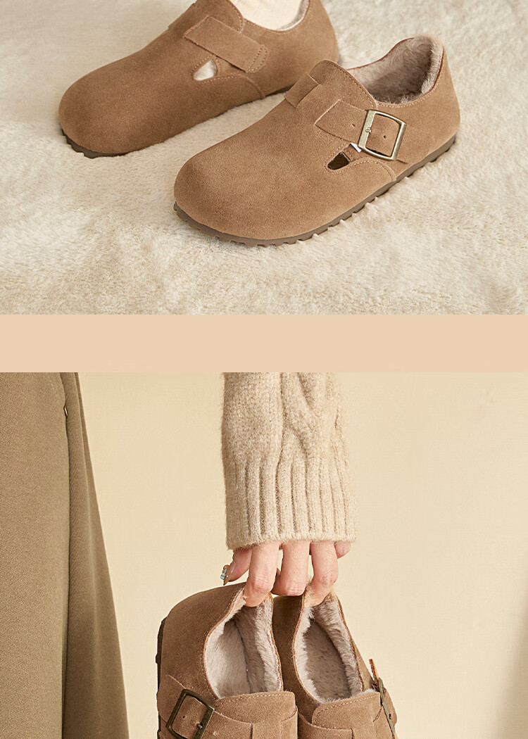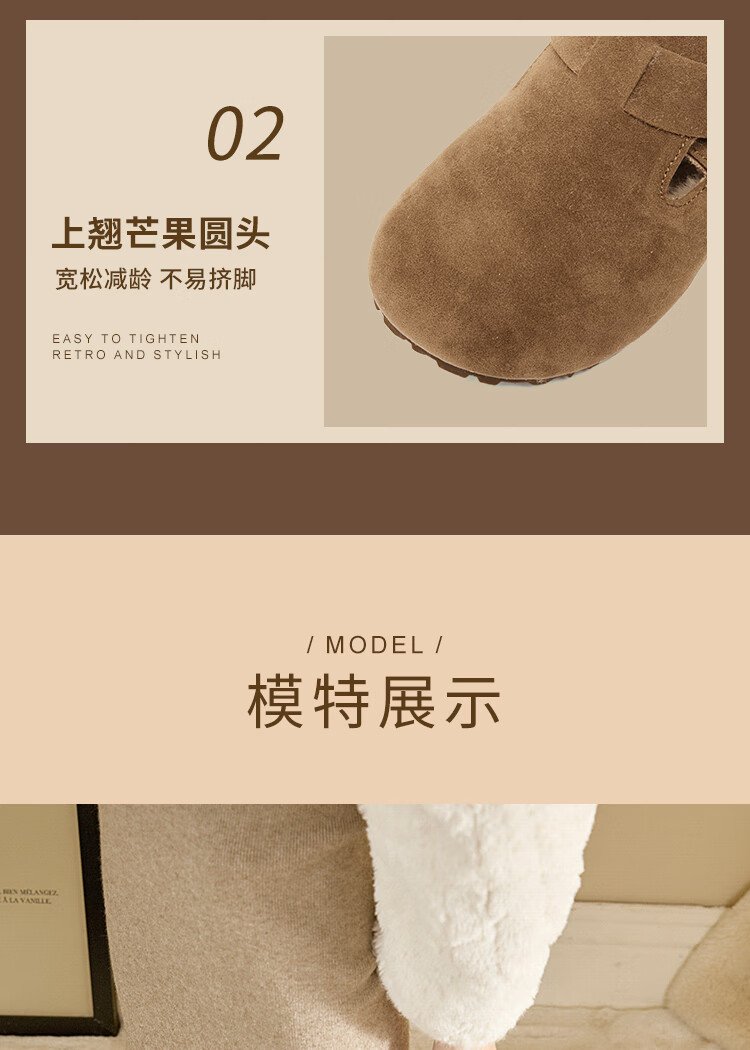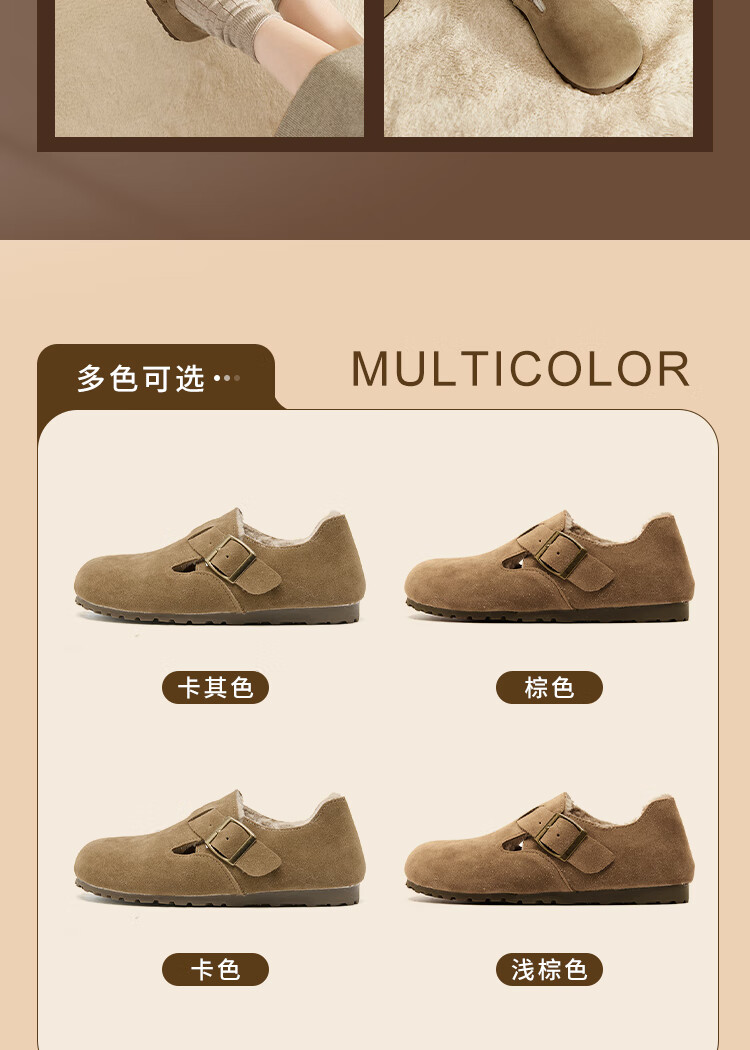 Xiyu all-inclusive Birkenstock shoes for women plus velvet 2025 winter new soft-soled cotton shoes warm one-foot furry shoes card color 38 (240mm)