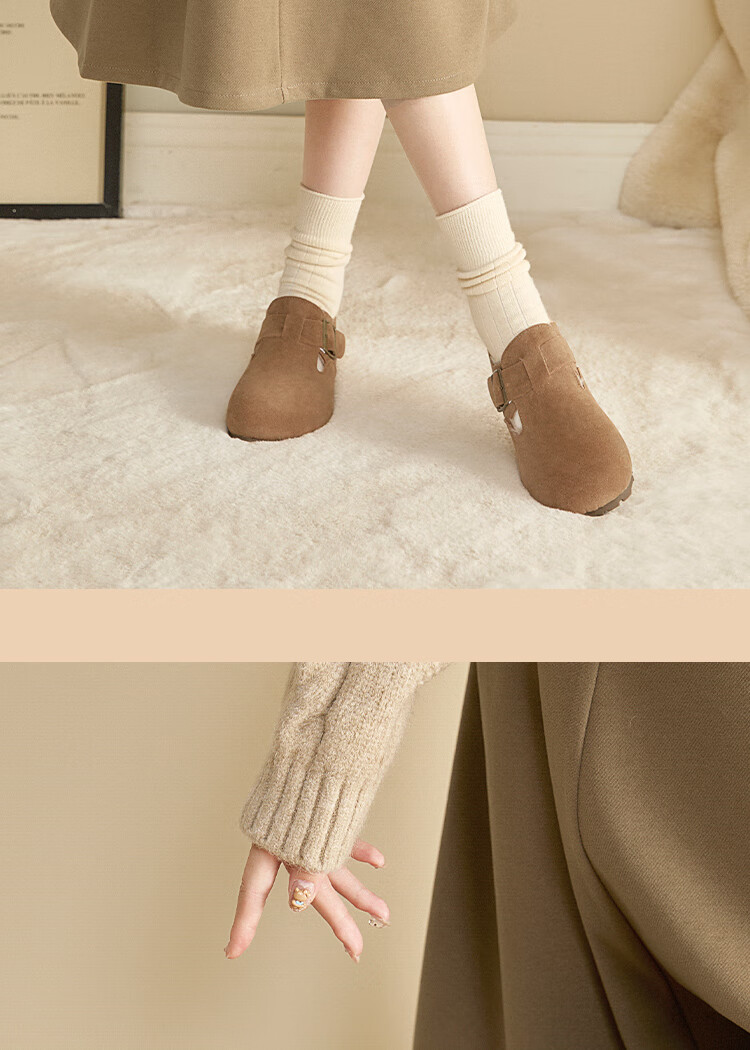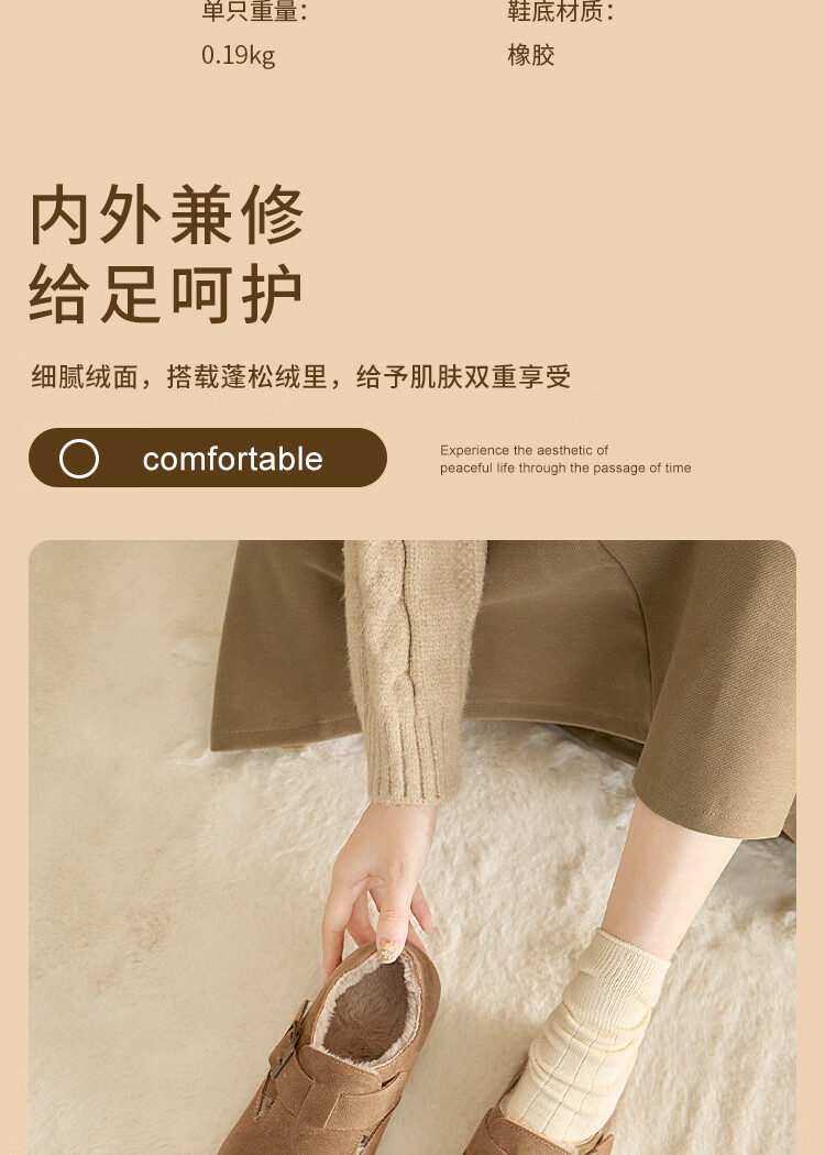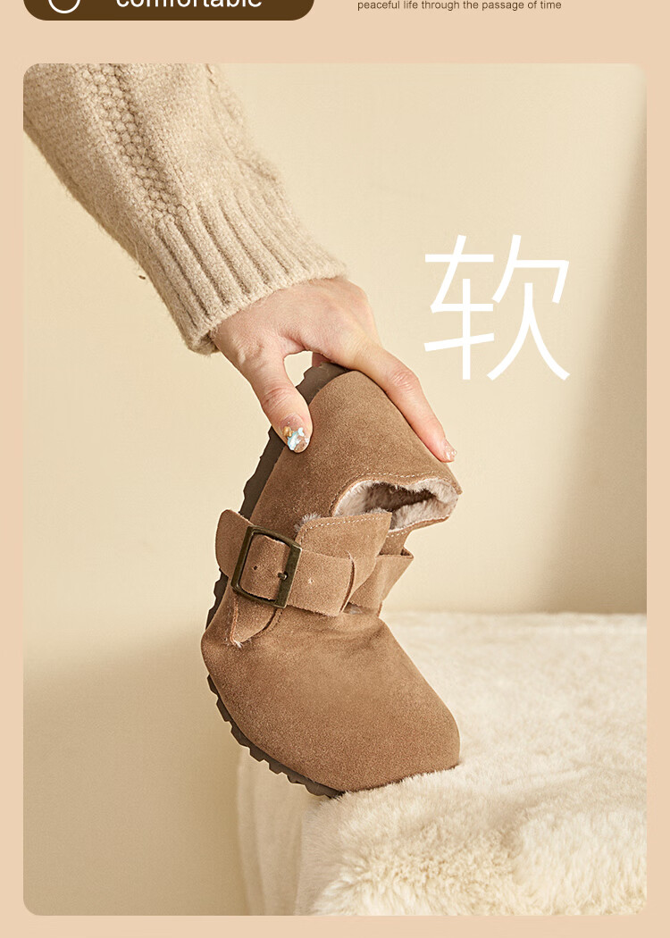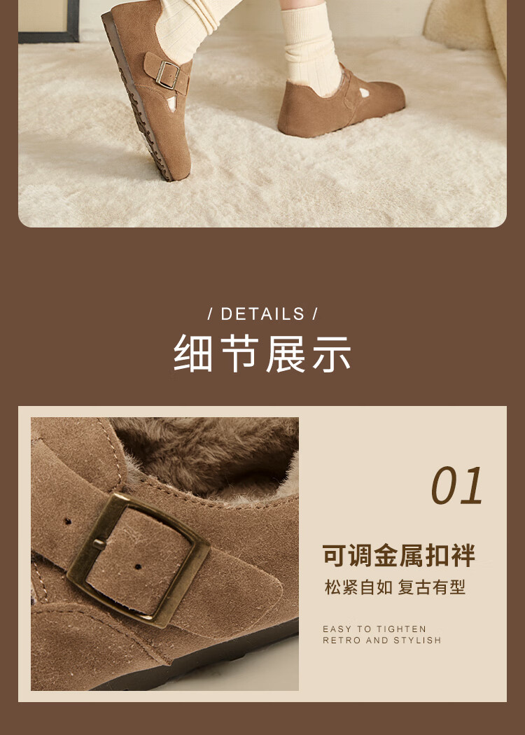 Xiyu all-inclusive Birkenstock shoes for women plus velvet 2025 winter new soft-soled cotton shoes warm one-foot furry shoes card color 38 (240mm)