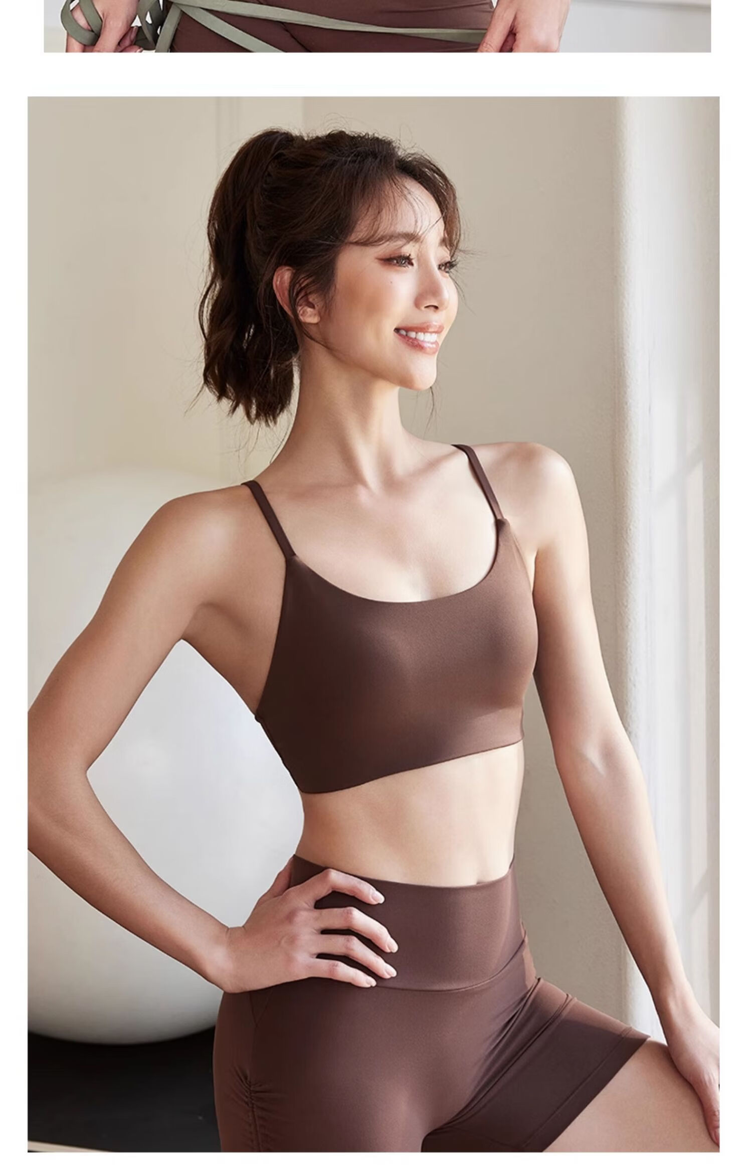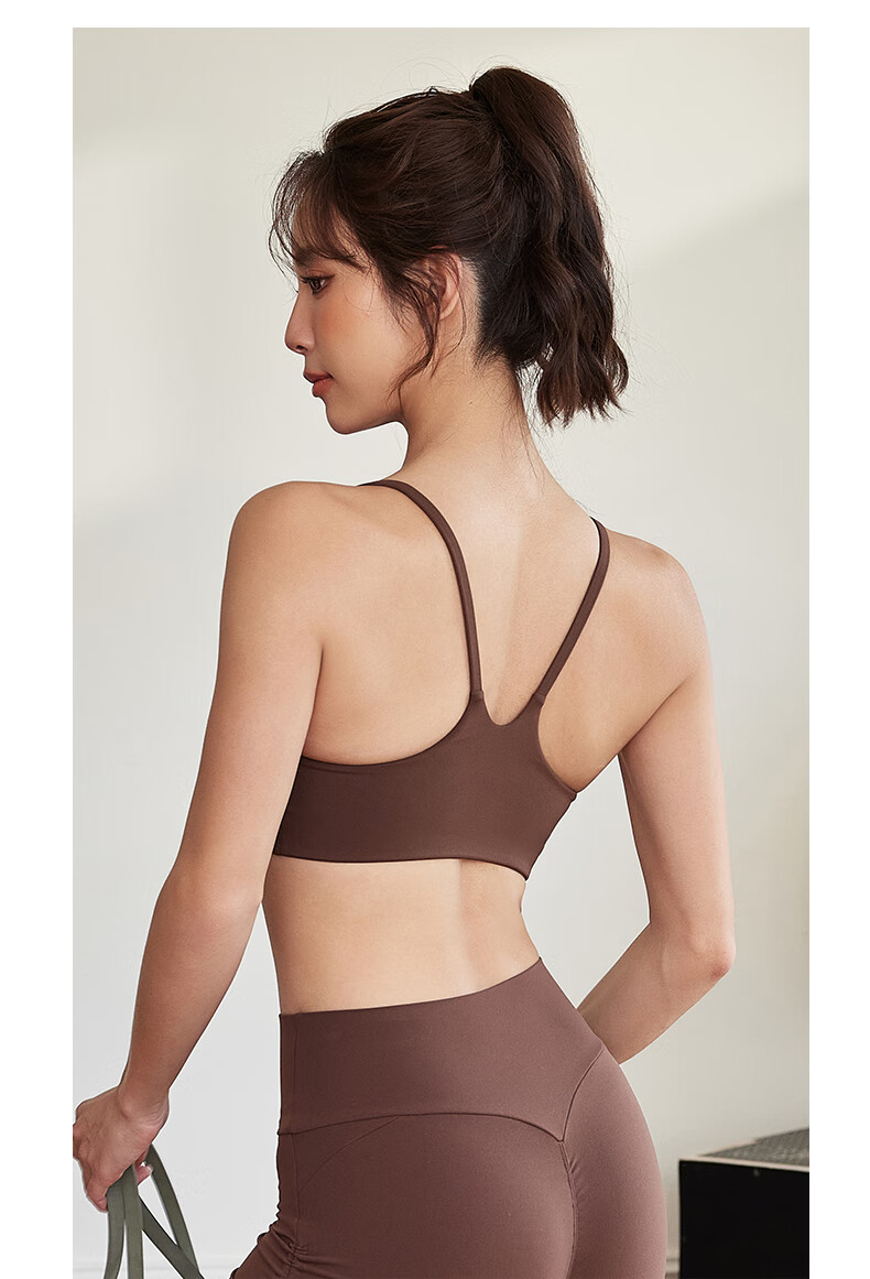 Dcw spaghetti strap sports bra women's shock-absorbing running training yoga vest Pilates advanced fitness bra ivory white S