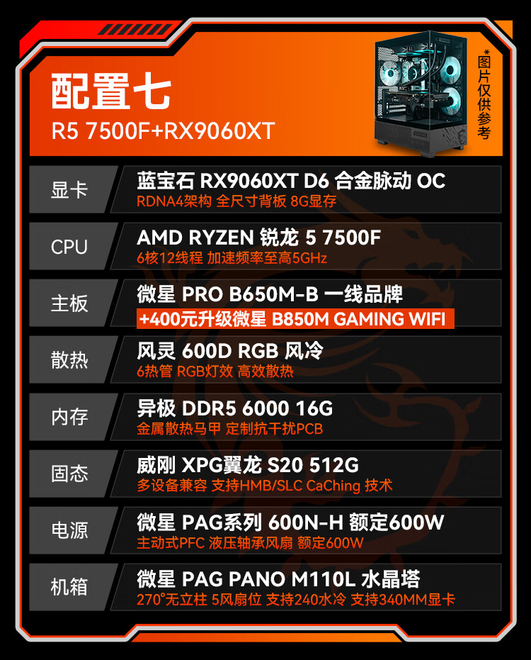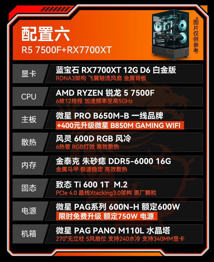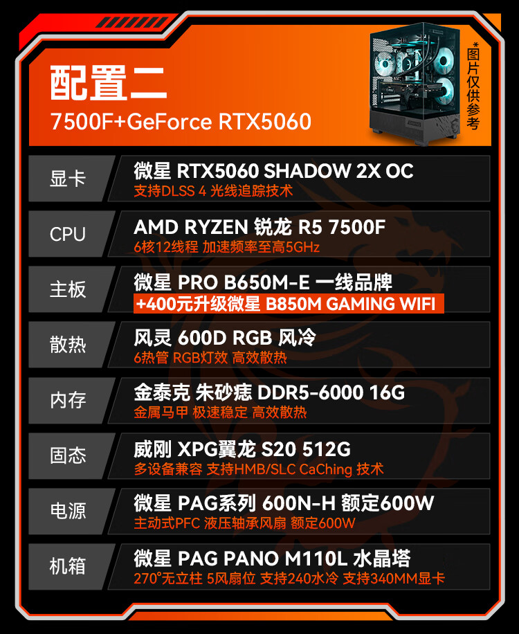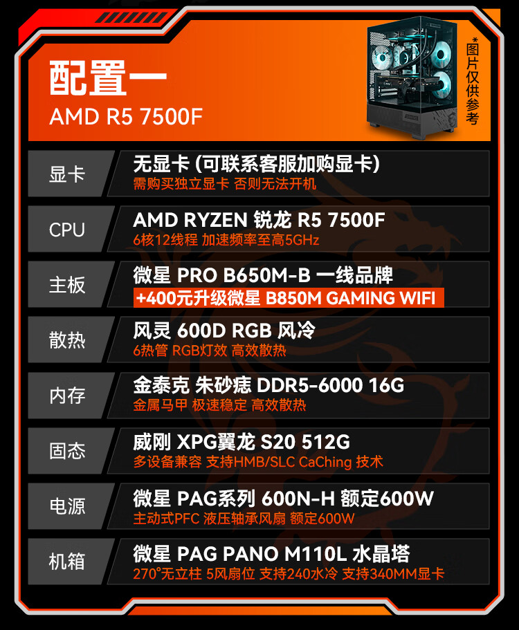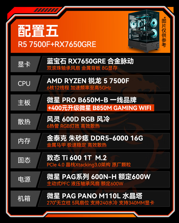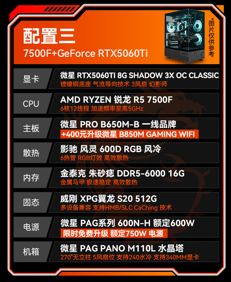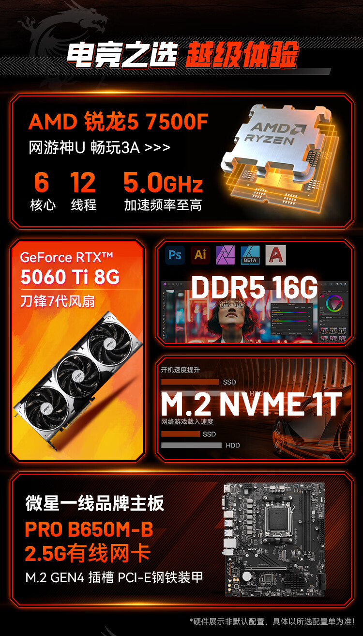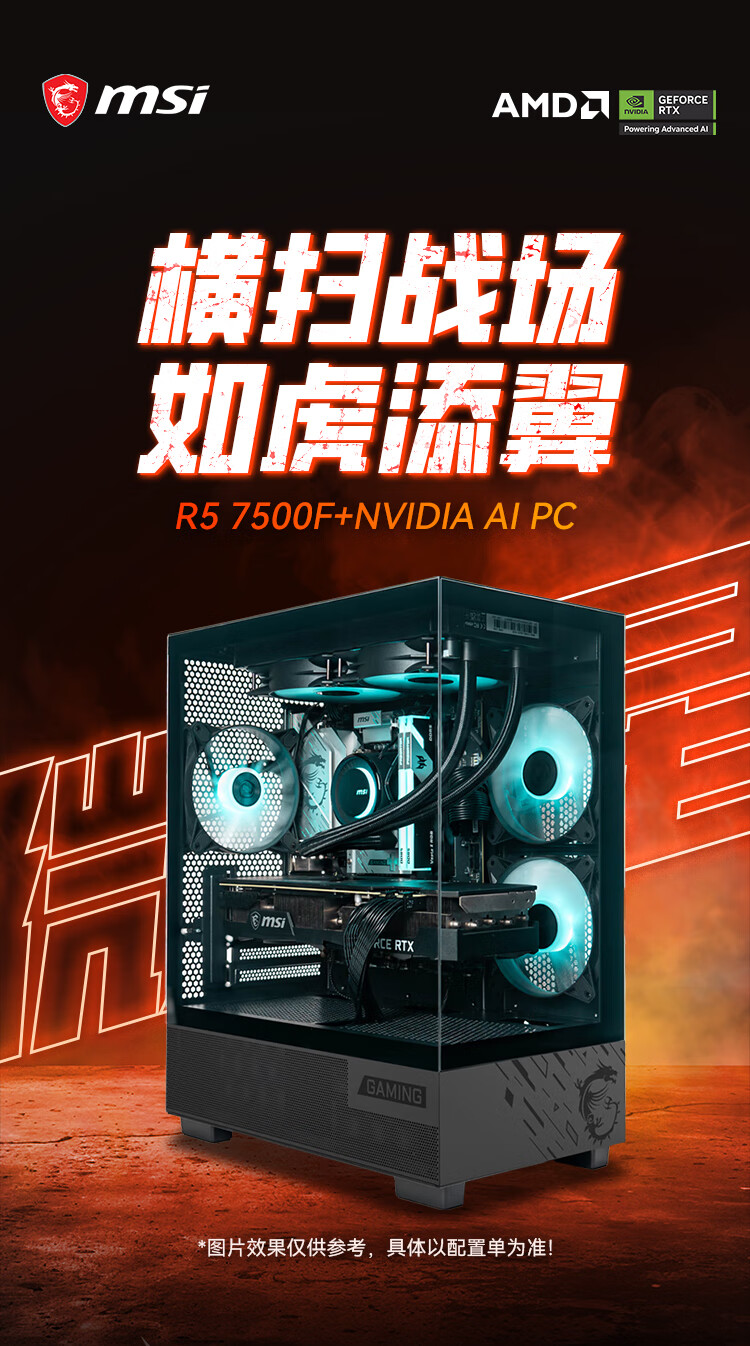 MSI Family Bucket Ryzen R5 7500FRTX5060Ti/7700XT DIY game console online game e-sports desktop rendering design drawing complete machine assembly computer configuration 2 7500F | RTX5060