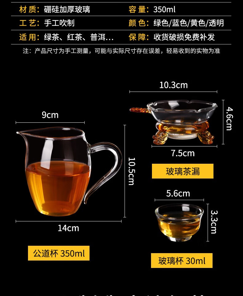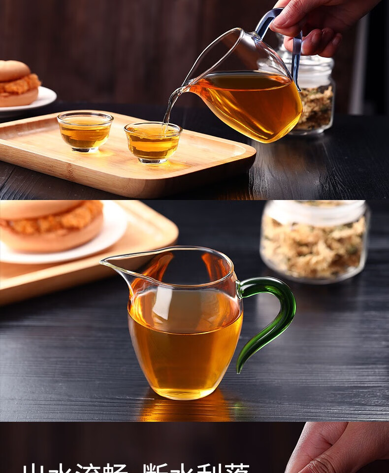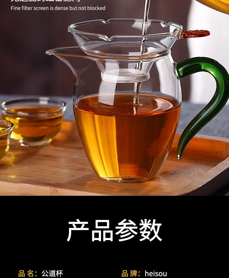Yingtou tea set, large capacity, Japanese filter tea leakage set, glass fair cup, 1 transparent fair cup