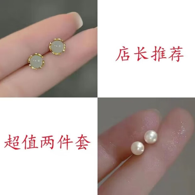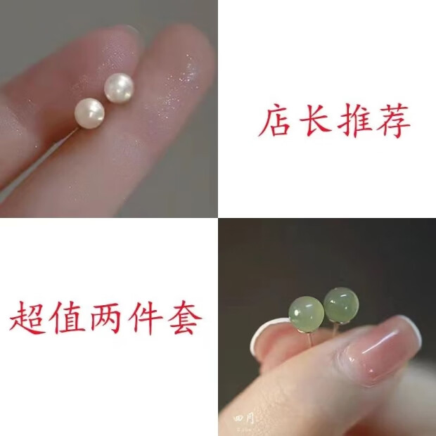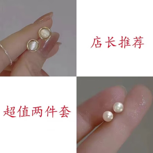 Zhongyi Silver Earrings 9999 Sterling Silver Korean Freshwater Pearl Earrings for Women Retro French Elegant Silver Needle Temperament F85-99 Buy a Set of Four