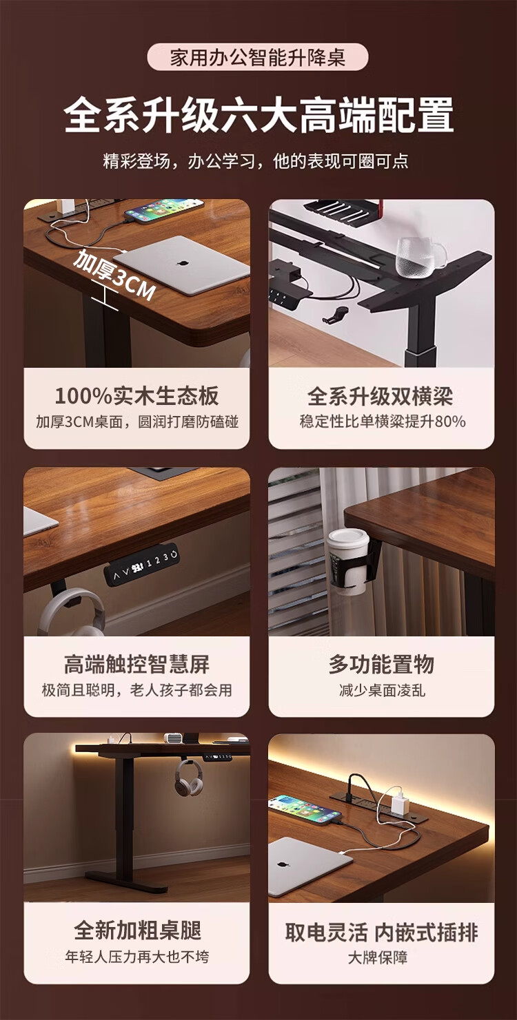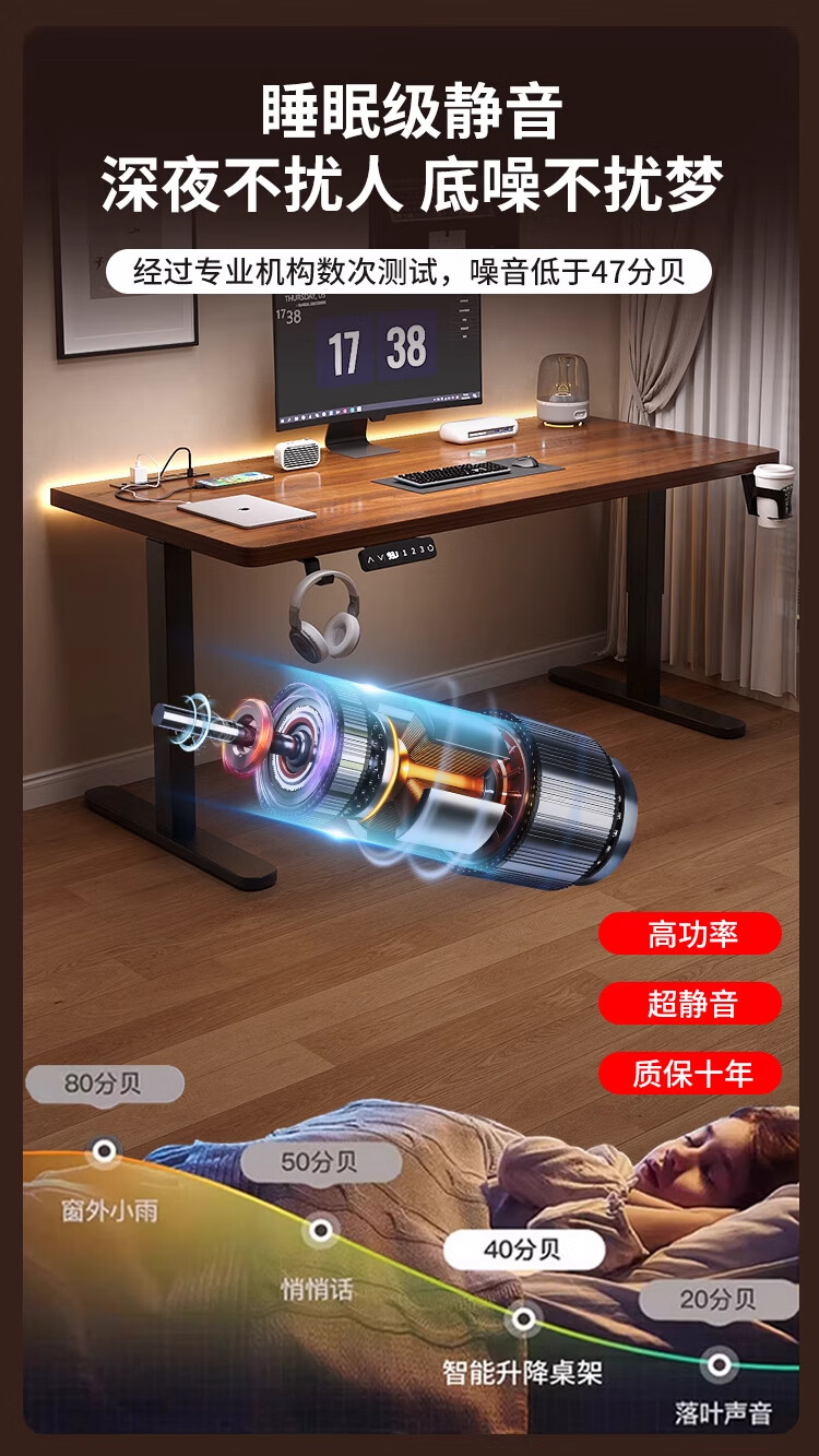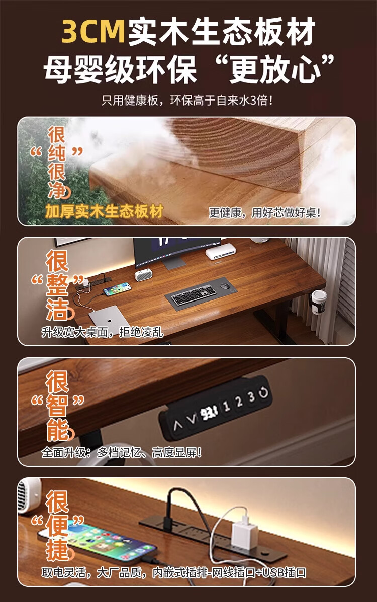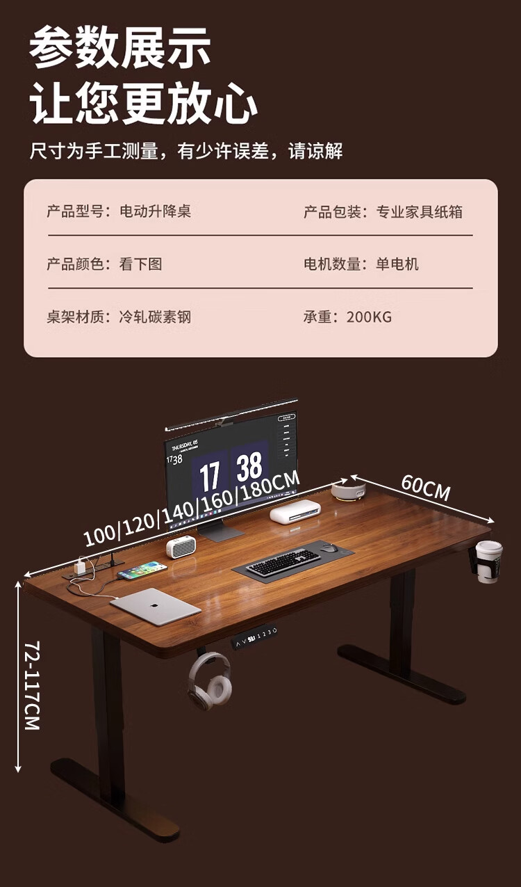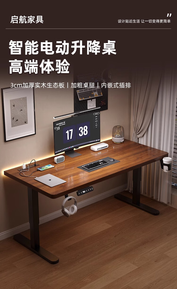 Hongtan solid wood electric lifting table computer table desk student home desk gaming table lifting table workbench 3CM all solid wood desktop single motor black walnut + black frame 140*60*0cm
