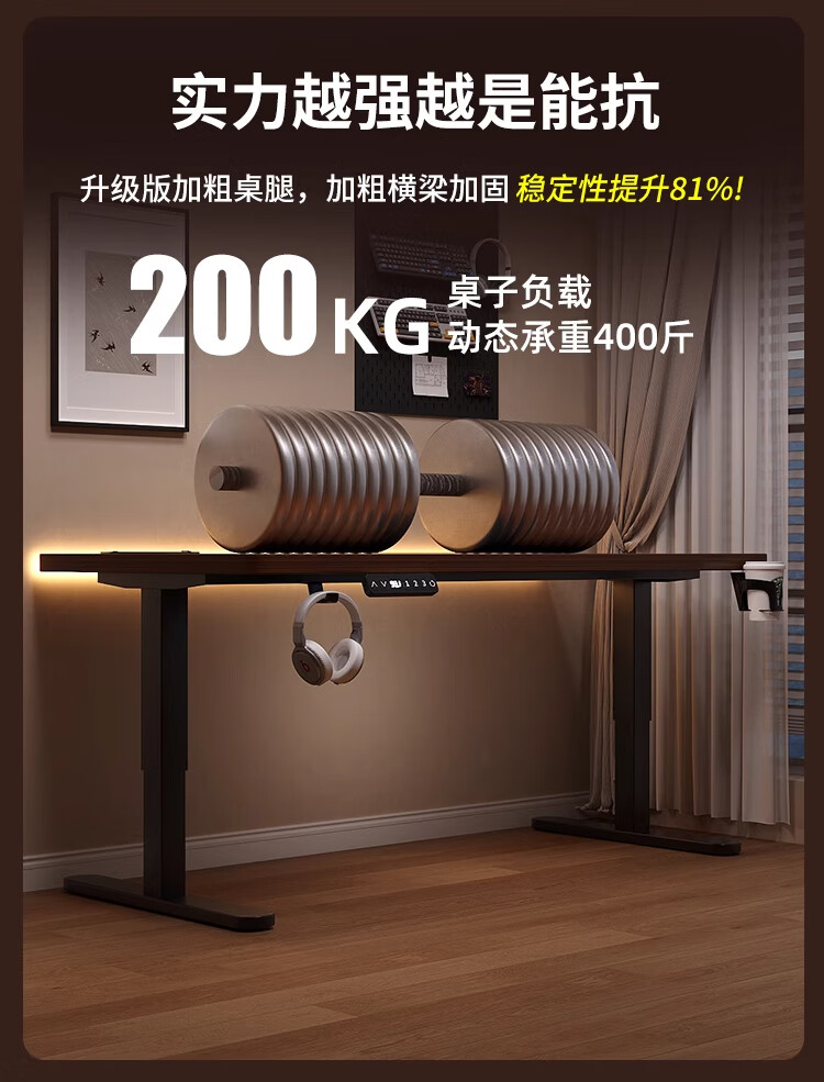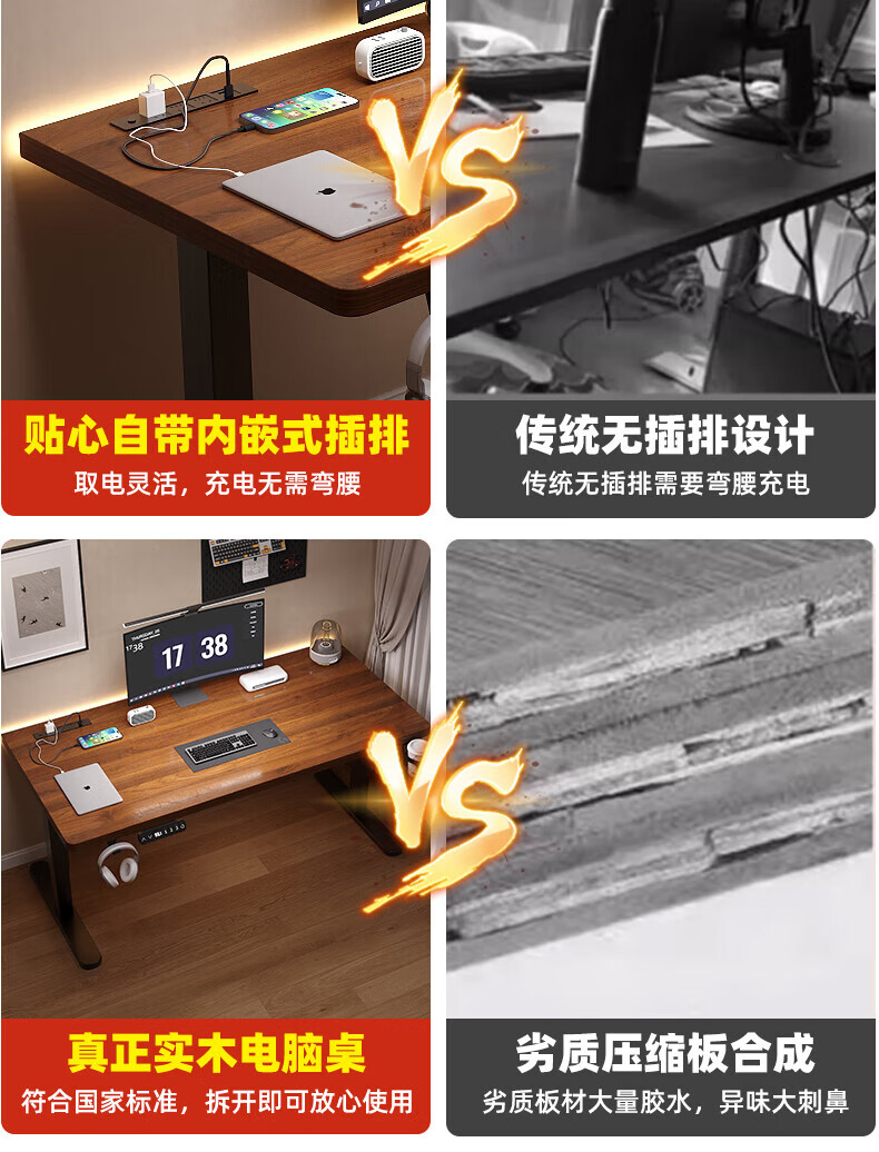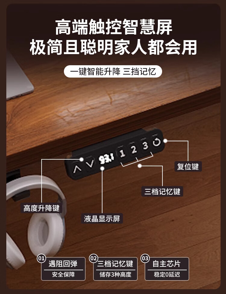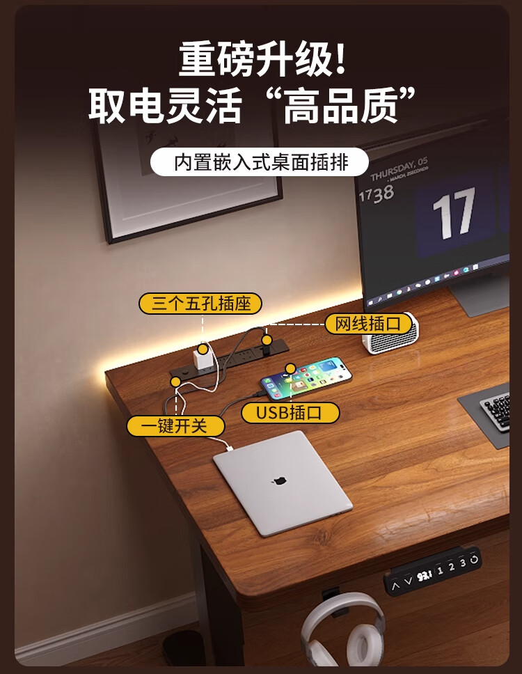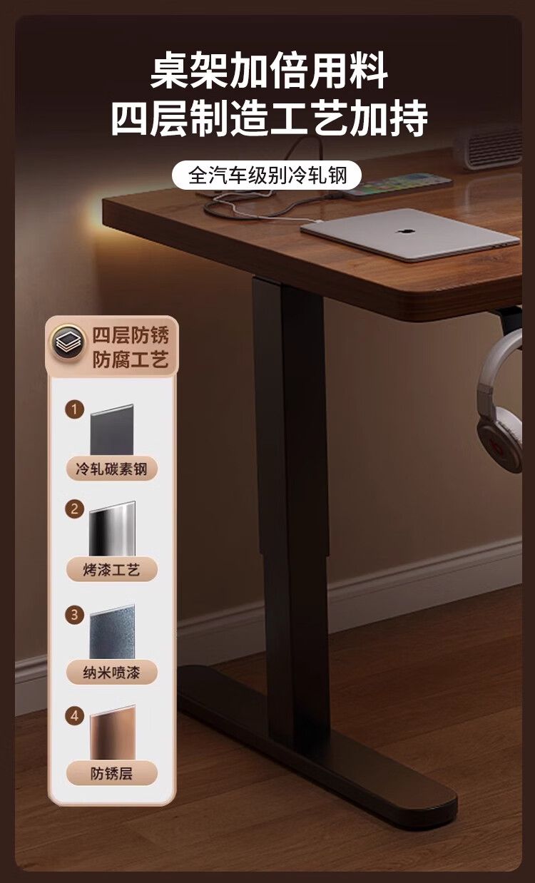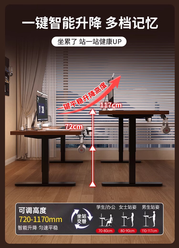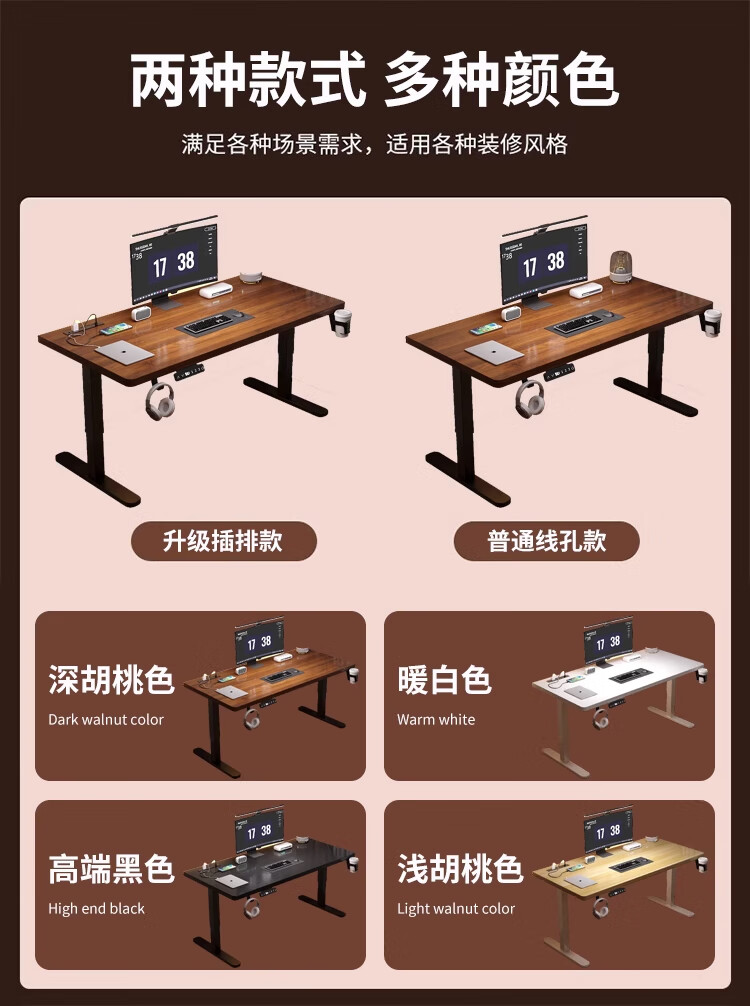 Hongtan solid wood electric lifting table computer table desk student home desk gaming table lifting table workbench 3CM all solid wood desktop single motor black walnut + black frame 140*60*0cm