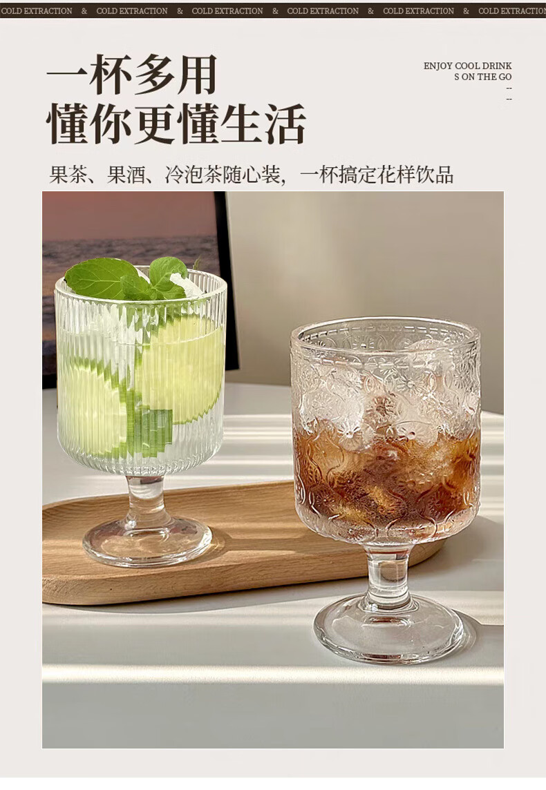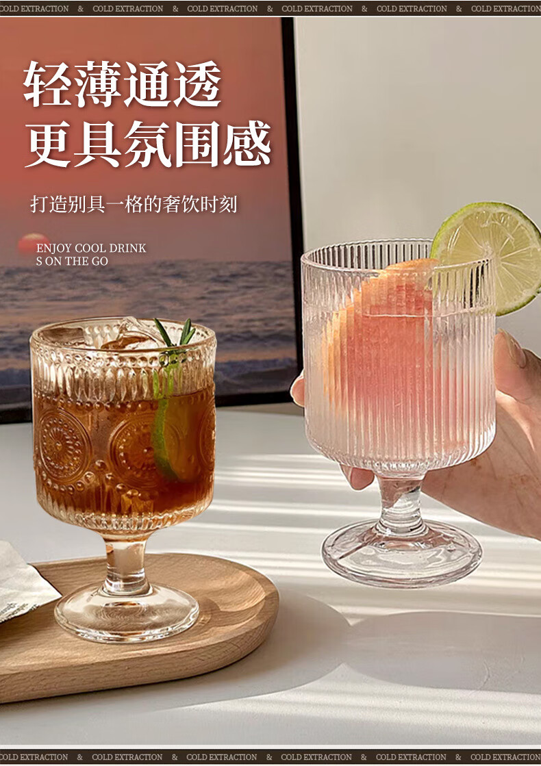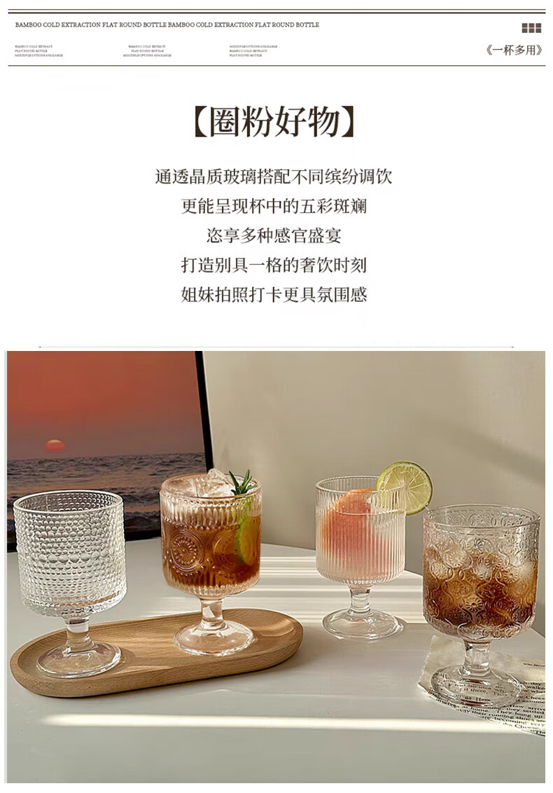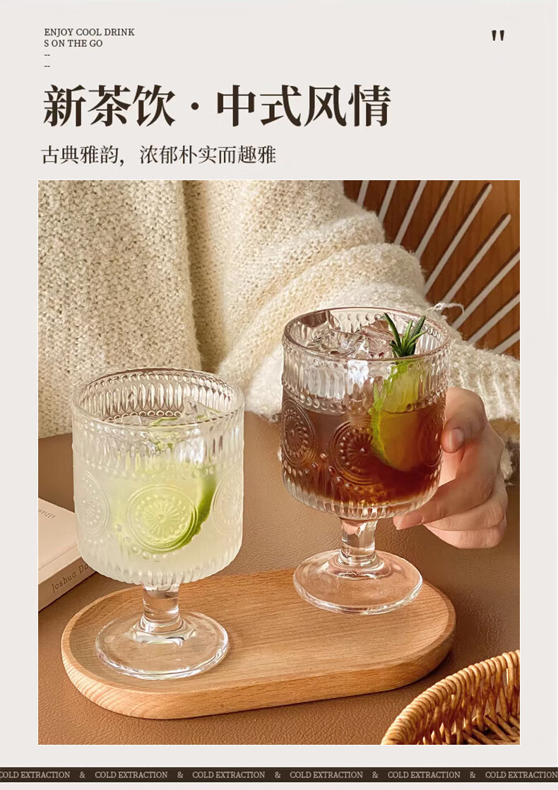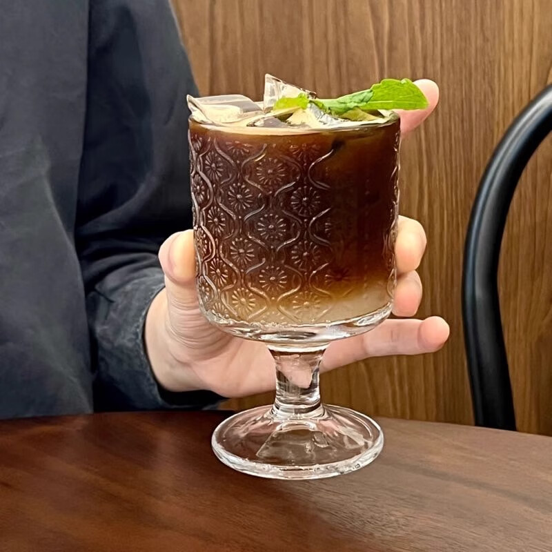 Lu Shanwu wine glass set, retro sunflower embossed glass cup, high-looking design, drink juice goblets, four-pack, mixed pattern wine glasses, four-pack