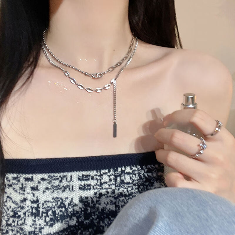 Luruo sterling silver necklace for women 2024 new light luxury niche high-end clavicle chain double layer stacked necklace that does not fade double layered pig nose necklace