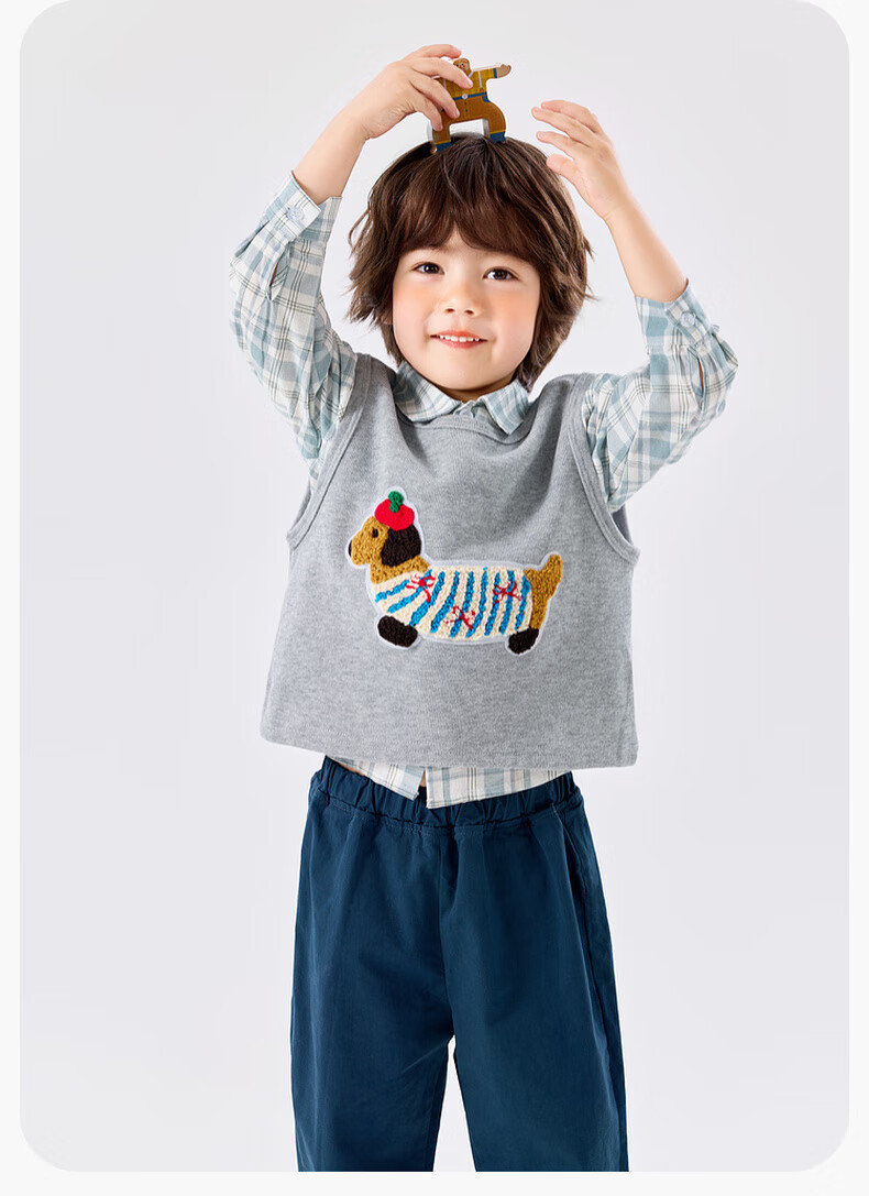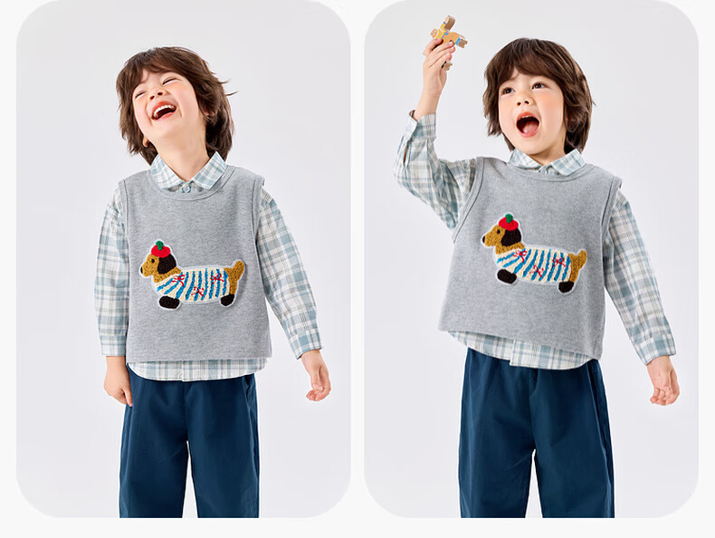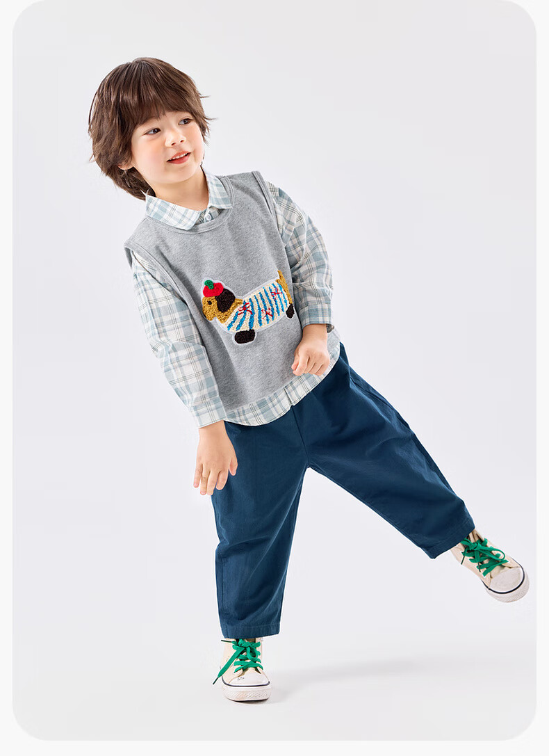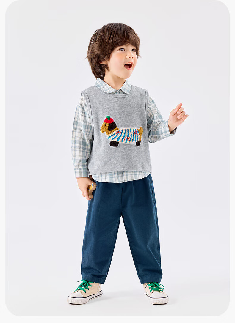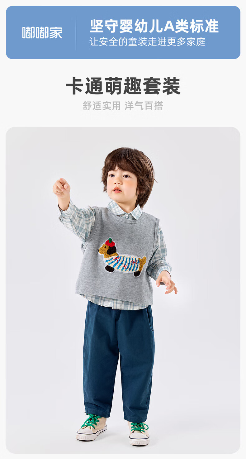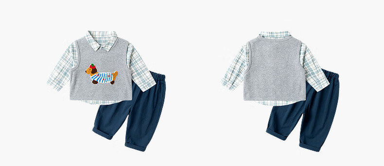 Dudujia Children's Autumn Plaid Shirt Suit Boys Lapel Jacket Knitted Vest Baby Cotton Pants Casual Jacket Blue 90