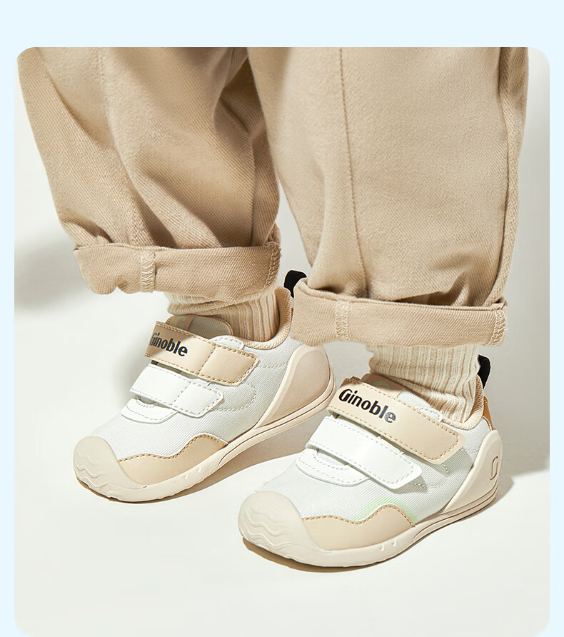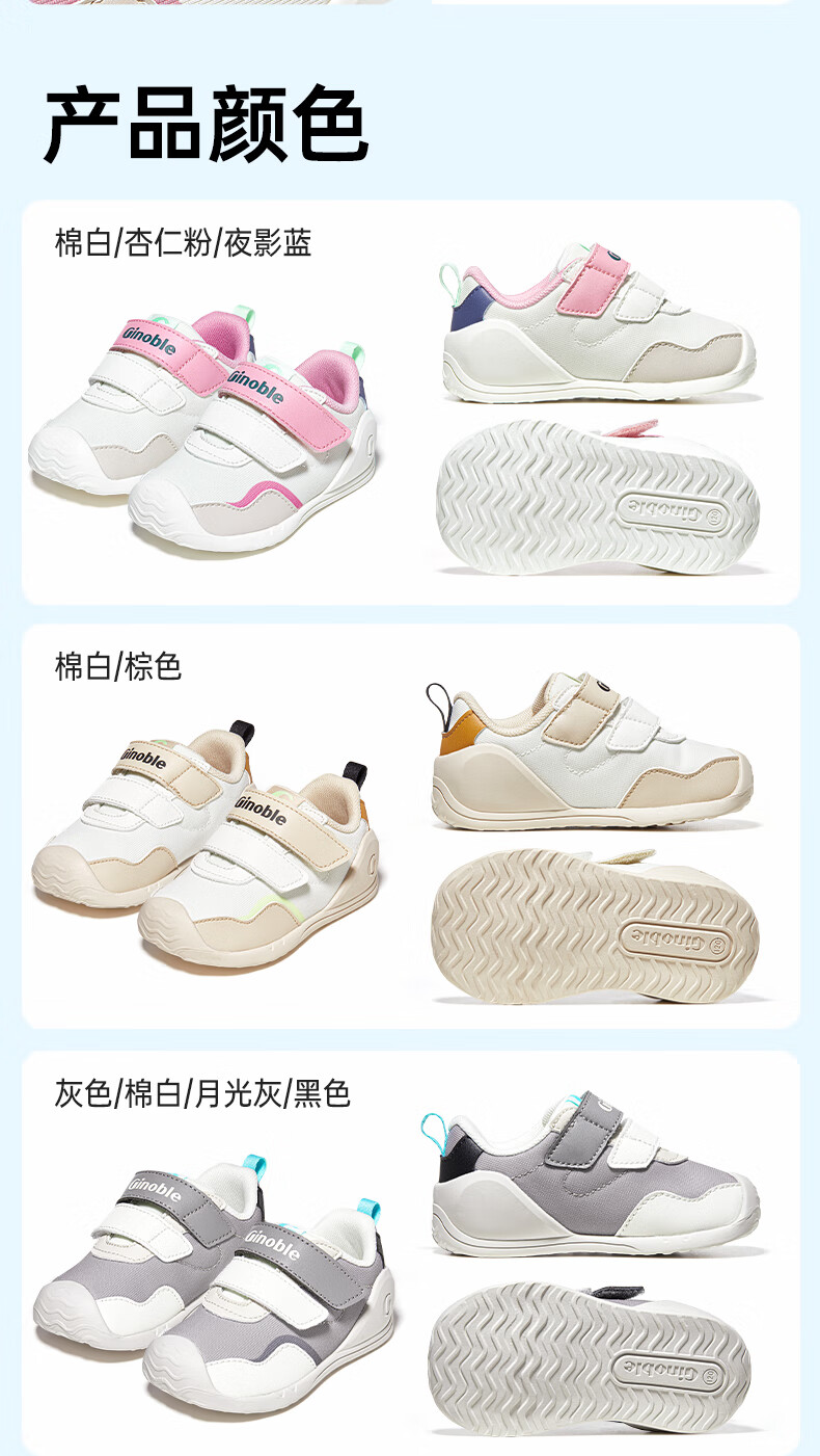 Jinopu Baby Shoes Spring Baby Soft Sole Breathable Floor Shoes 8-18 Months Spring and Autumn Toddler Shoes GB2391 Gray/Cotton White/Moonlight Gray/Black 20 125mm Suitable for Foot Length 125-129mm