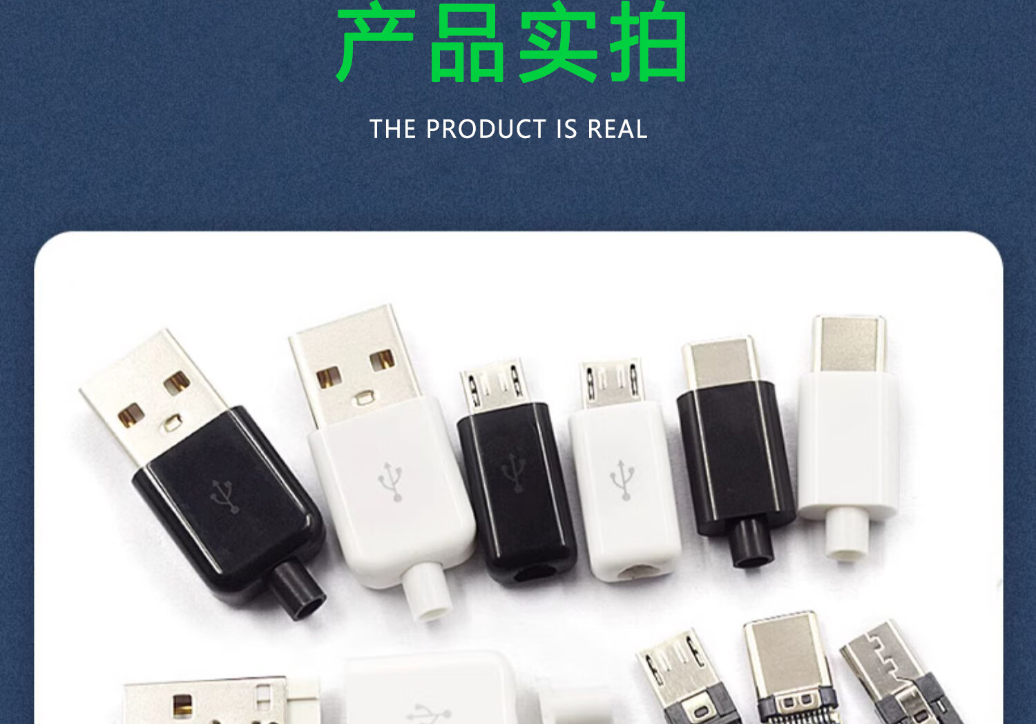 TaoTimeClubTYPEC USB2.0 male MICRO welding plug female diy mobile phone data cable accessories interface connector MICRO male white shell (5 sets) official standard