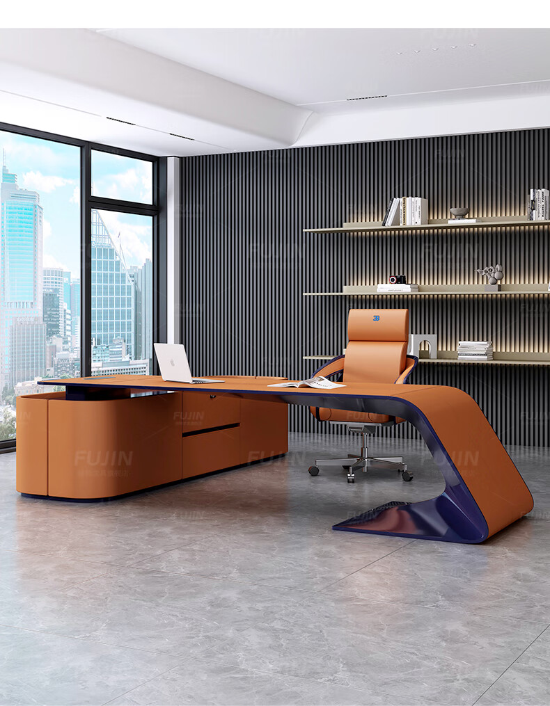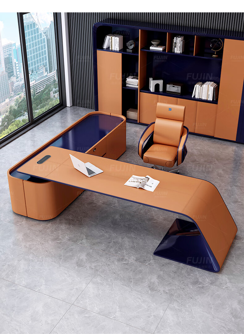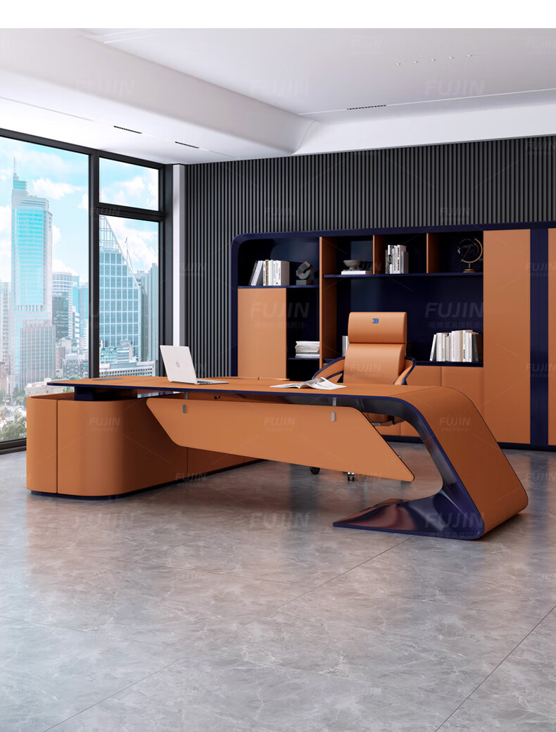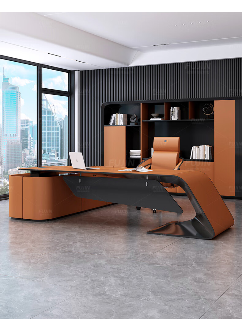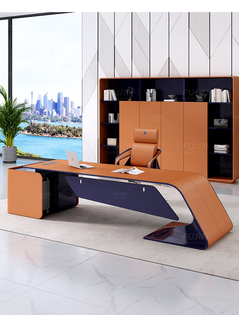 FUJIN Italian-style boss table, president table, light luxury, modern high-end villa executive desk, office leader desk and chair combination, customizable color and size