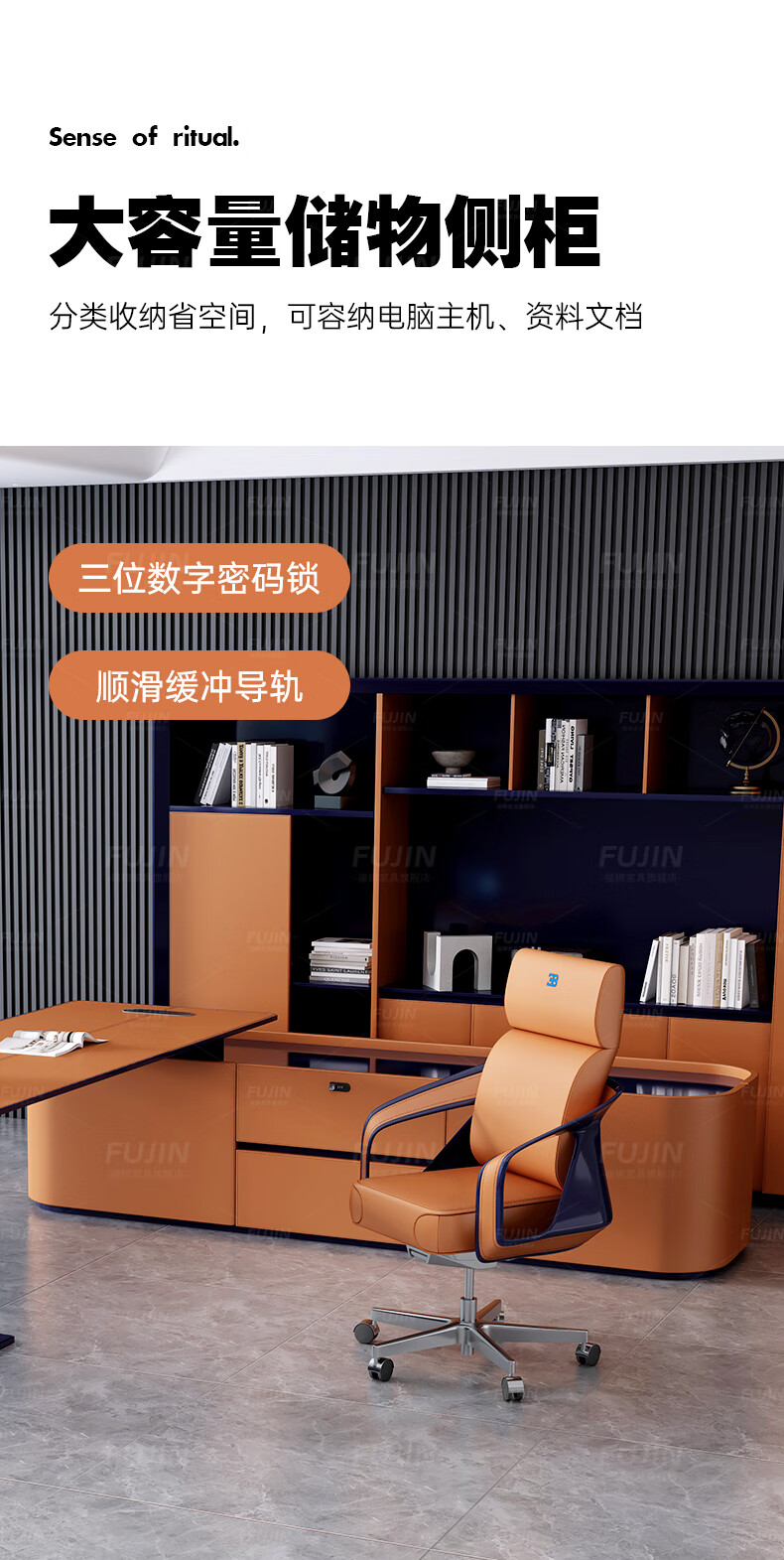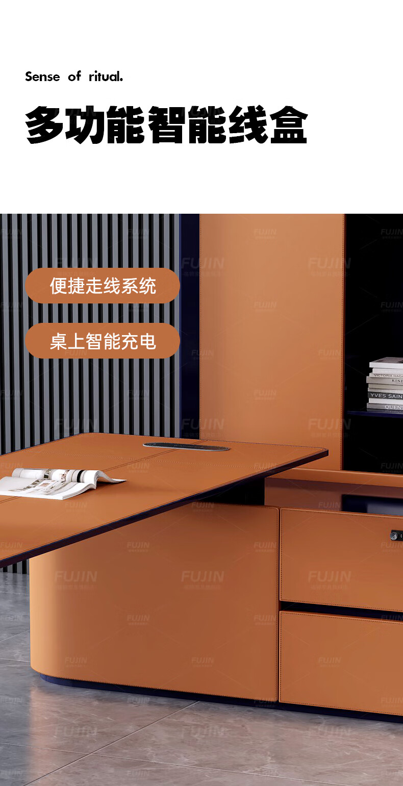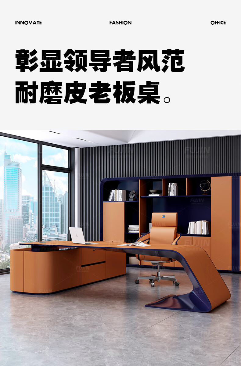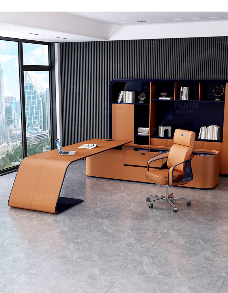 FUJIN Italian-style boss table, president table, light luxury, modern high-end villa executive desk, office leader desk and chair combination, customizable color and size