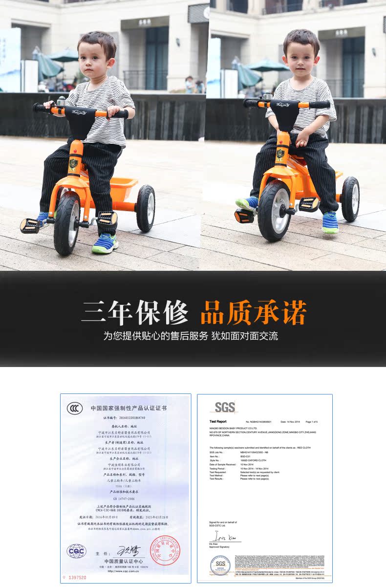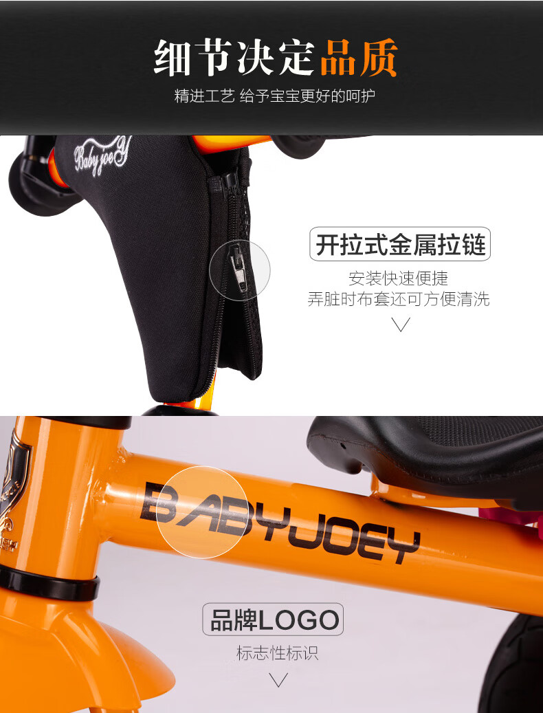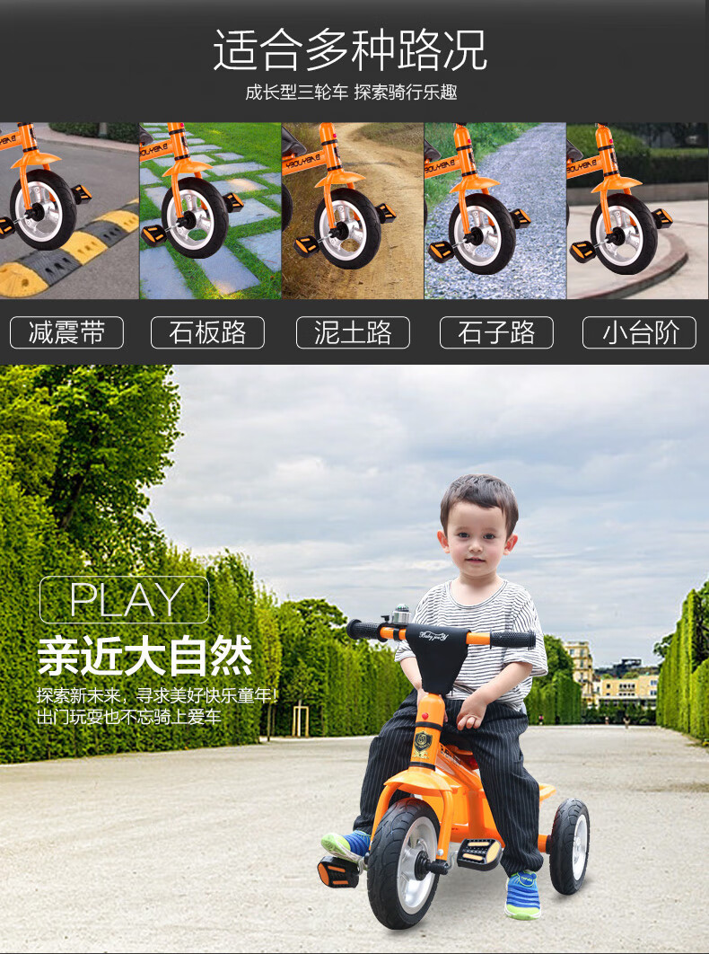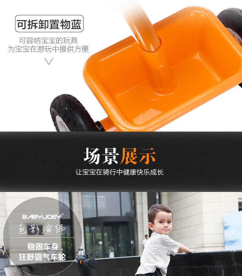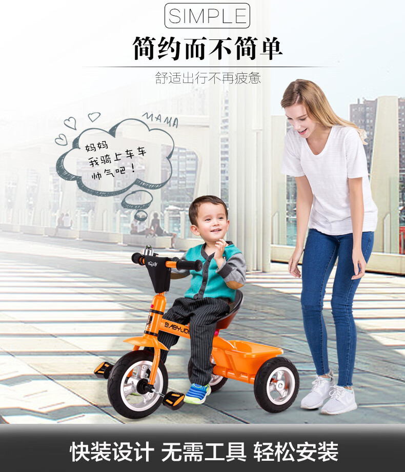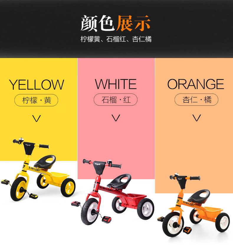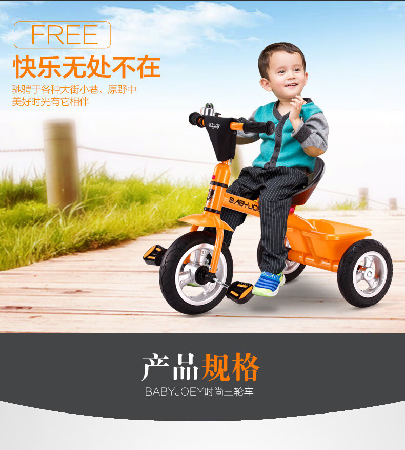 BABYJOEY children's tricycle bicycle toy stroller 2-3-5 years old gift baby bicycle lemon yellow