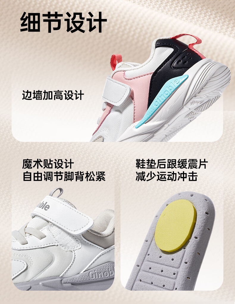 Genopu Breathable Toddler Shoes Spring and Autumn Style Soft-soled Functional Shoes for Boys and Girls Trendy and Versatile Baby Shoes GW1698 Bright White/Moonlight Grey/Algae Green/Black 22.5 140mm Suitable for Foot Length 136-145mm