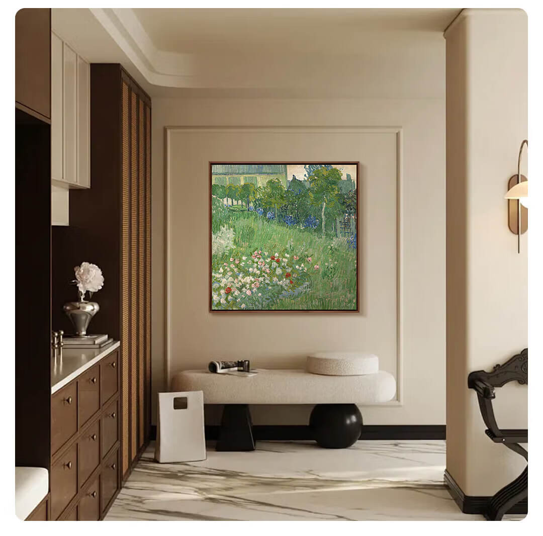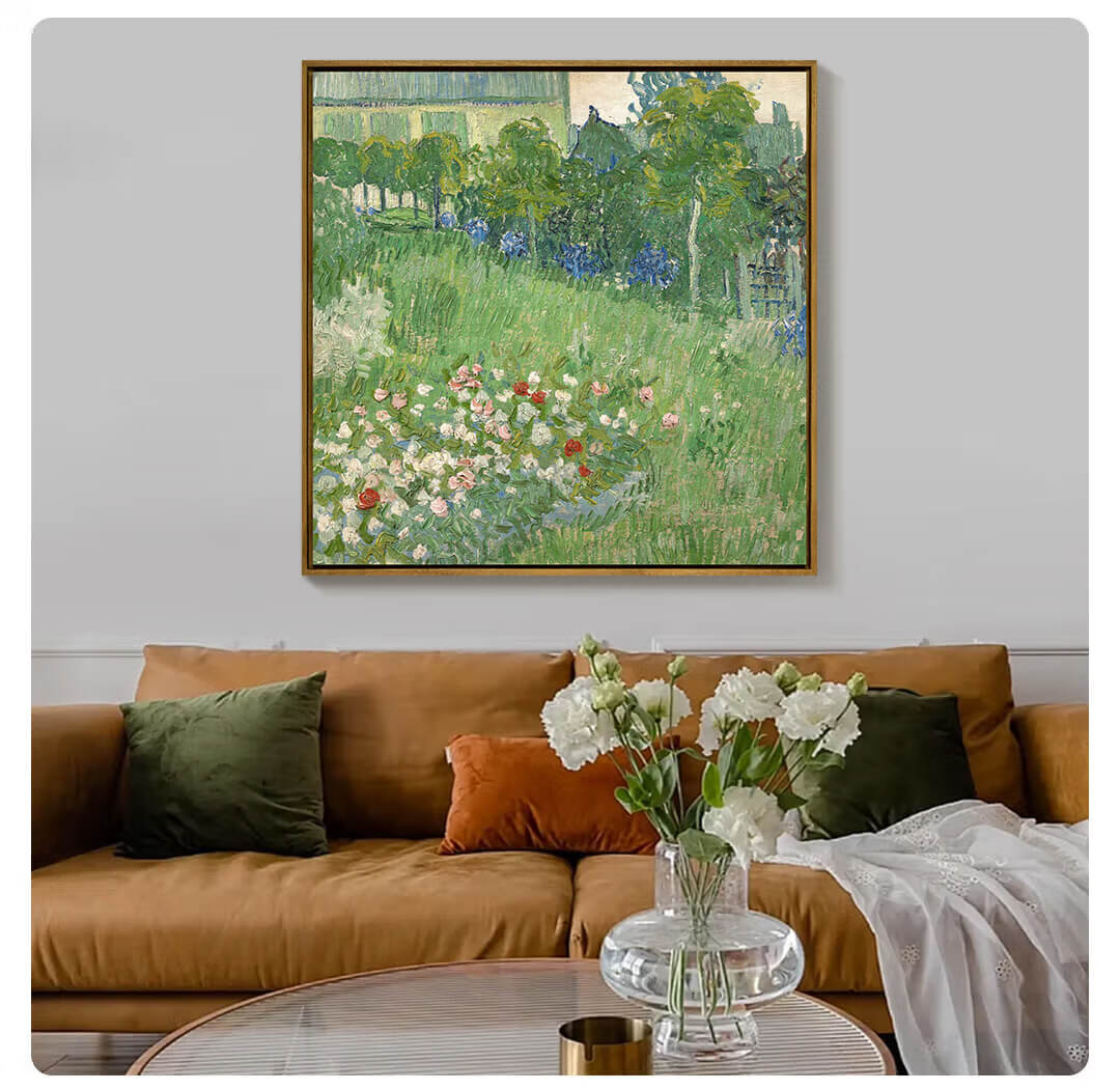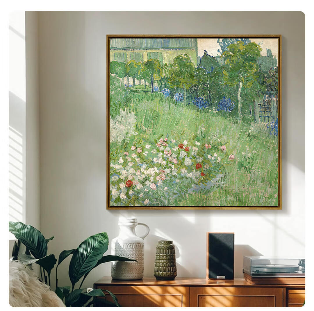 New artist's gift product Van Gogh's "The Garden of Daubigny" prints, living room entrance decoration paintings, oil paintings and hanging paintings, simple and modern, Daubigny's Garden - XS size 40*40cm, imported teak frame 08/35mm