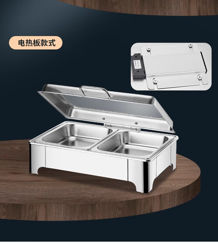 AOLISI Stainless Steel Hydraulic Buffet Insulation Stove Electric Heating Dining Stove Hotel Breakfast Buffy Stove Touch Screen Temperature Control Model - Rectangular Double Compartment 9 Liters