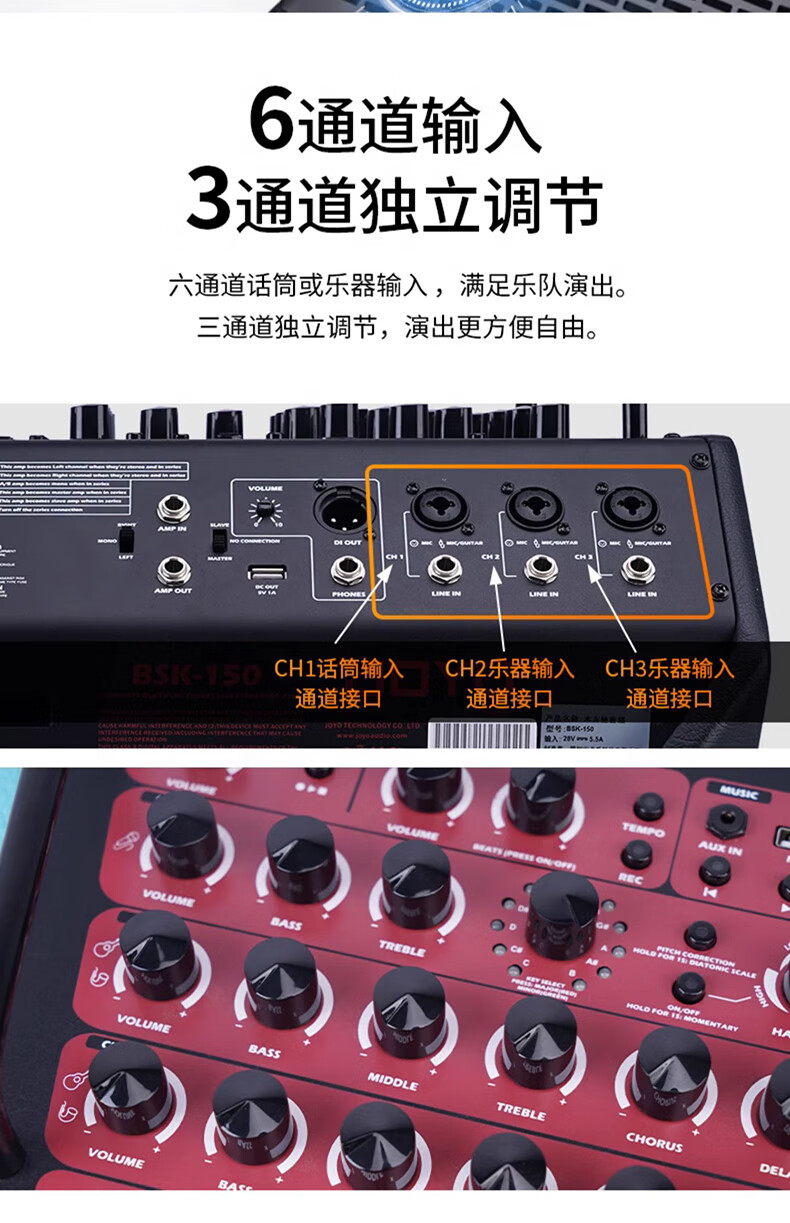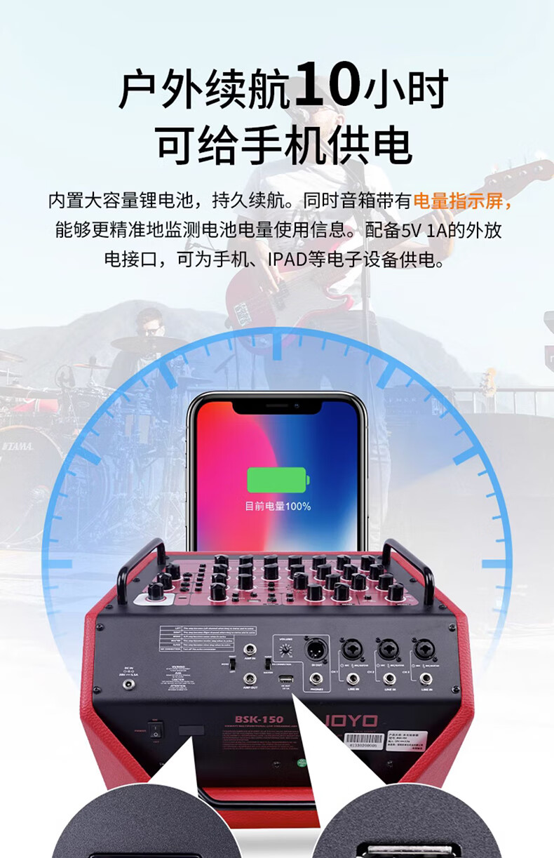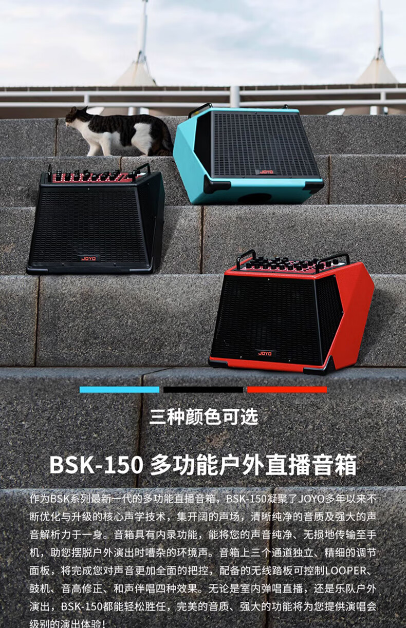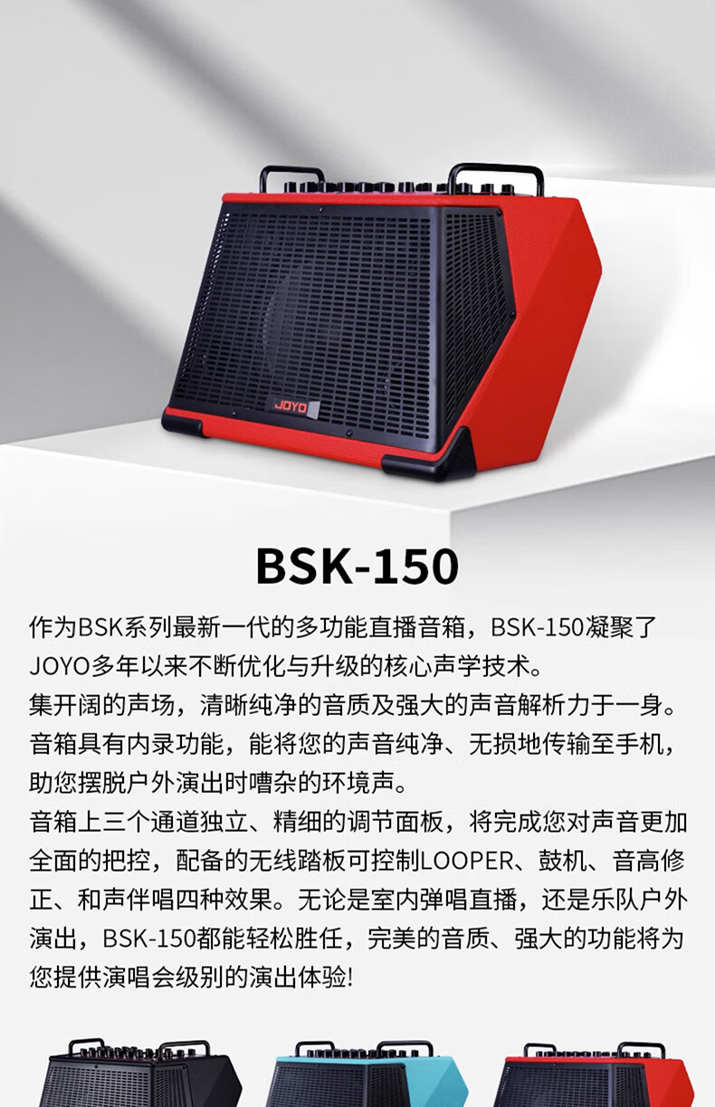 JOYO JOYO Excellent Guitar Speaker Acoustic Guitar Audio Charging Outdoor Bluetooth Drum Machine Internal Recording Instrument Universal BSK BSK-150 Blue-Live Broadcast Internal Recording Outdoor Playing and Singing