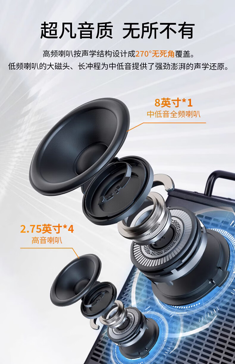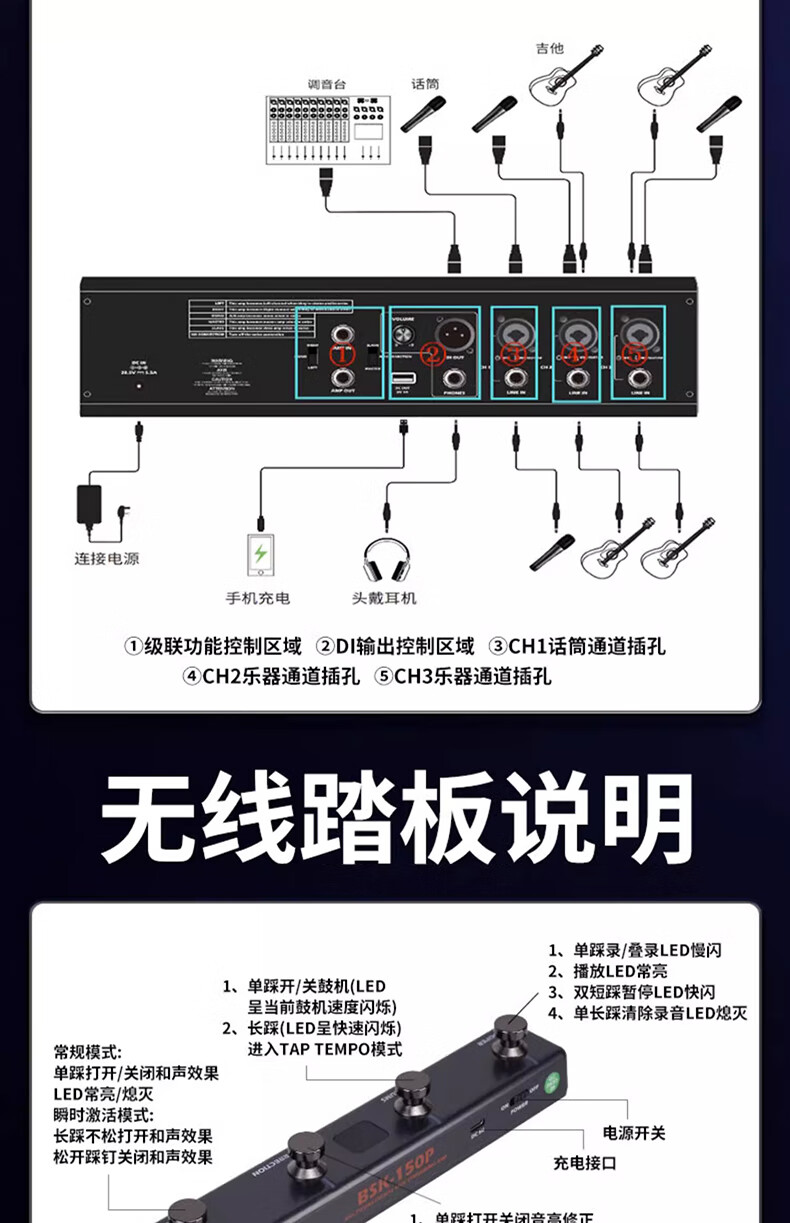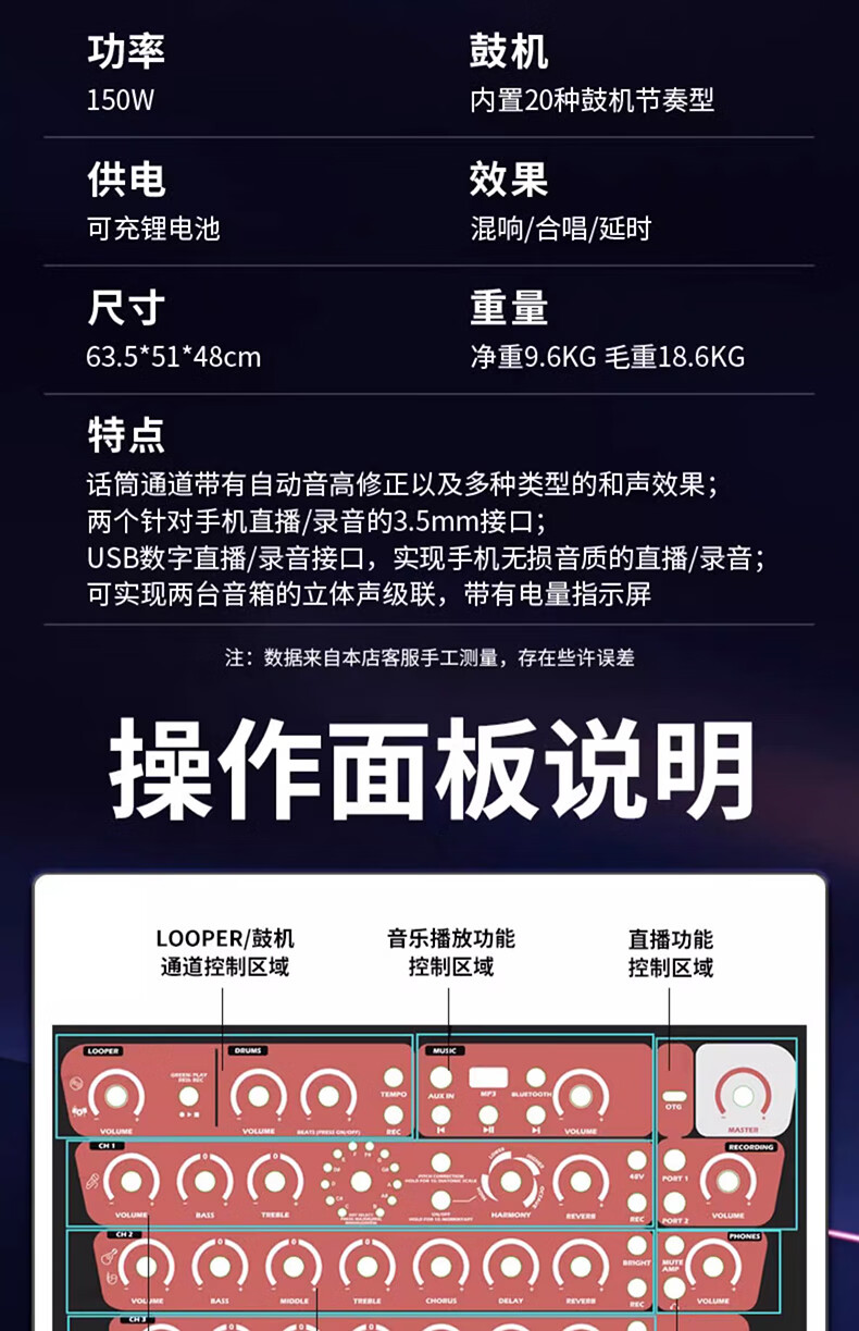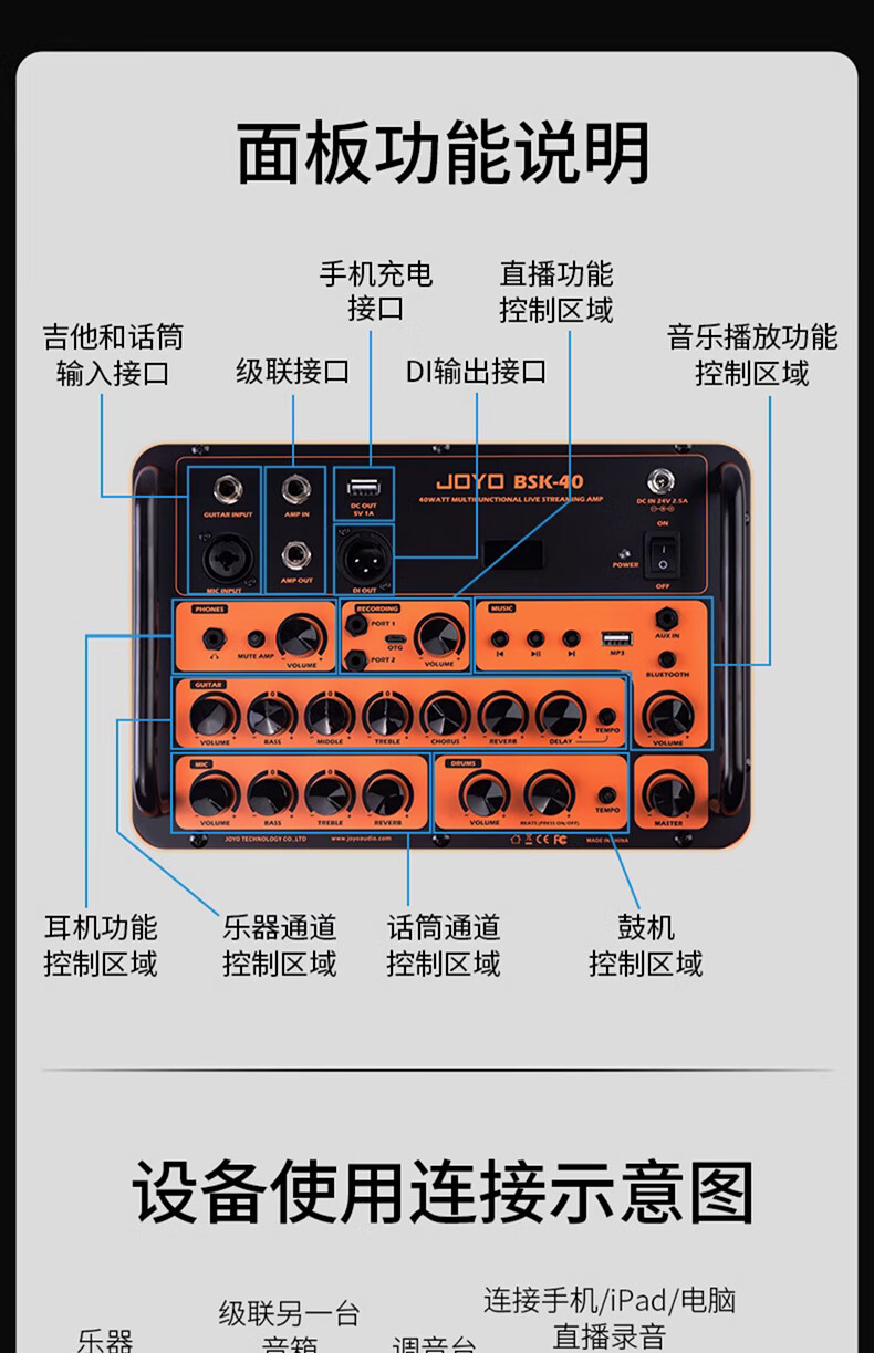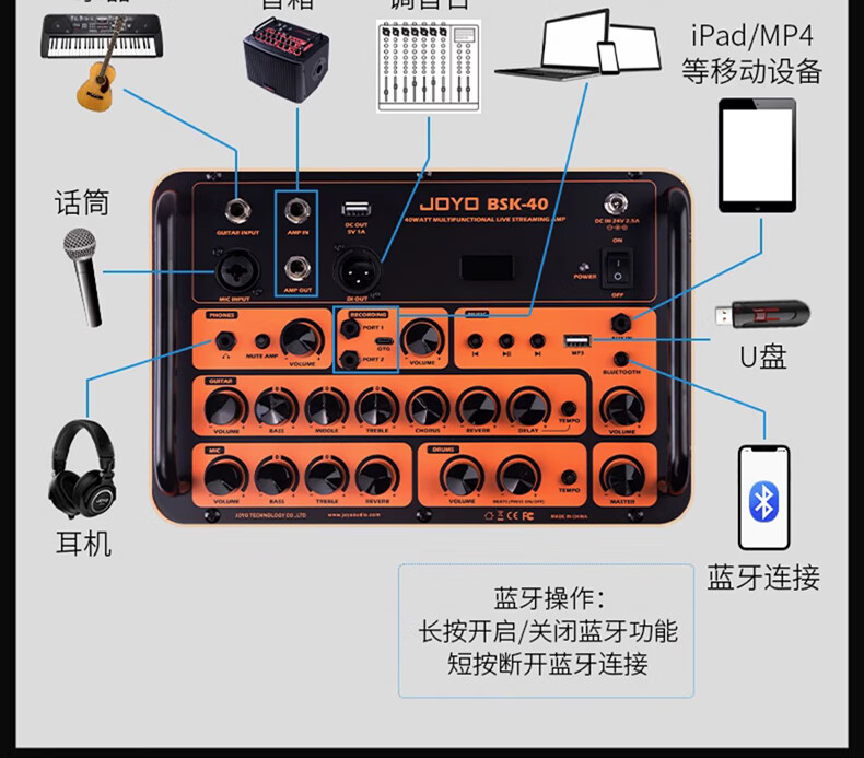 JOYO JOYO Excellent Guitar Speaker Acoustic Guitar Audio Charging Outdoor Bluetooth Drum Machine Internal Recording Instrument Universal BSK BSK-150 Blue-Live Broadcast Internal Recording Outdoor Playing and Singing