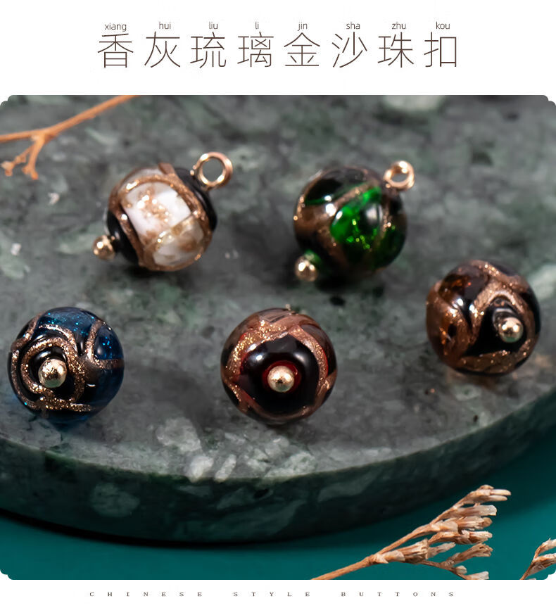 ZOCI Chinese-style glazed cheongsam buttons, high-end national style imitation jade buttons, retro clothes buckles, exquisite fashion decoration, red ash glazed beads, crystal glazed material, 10 pcs