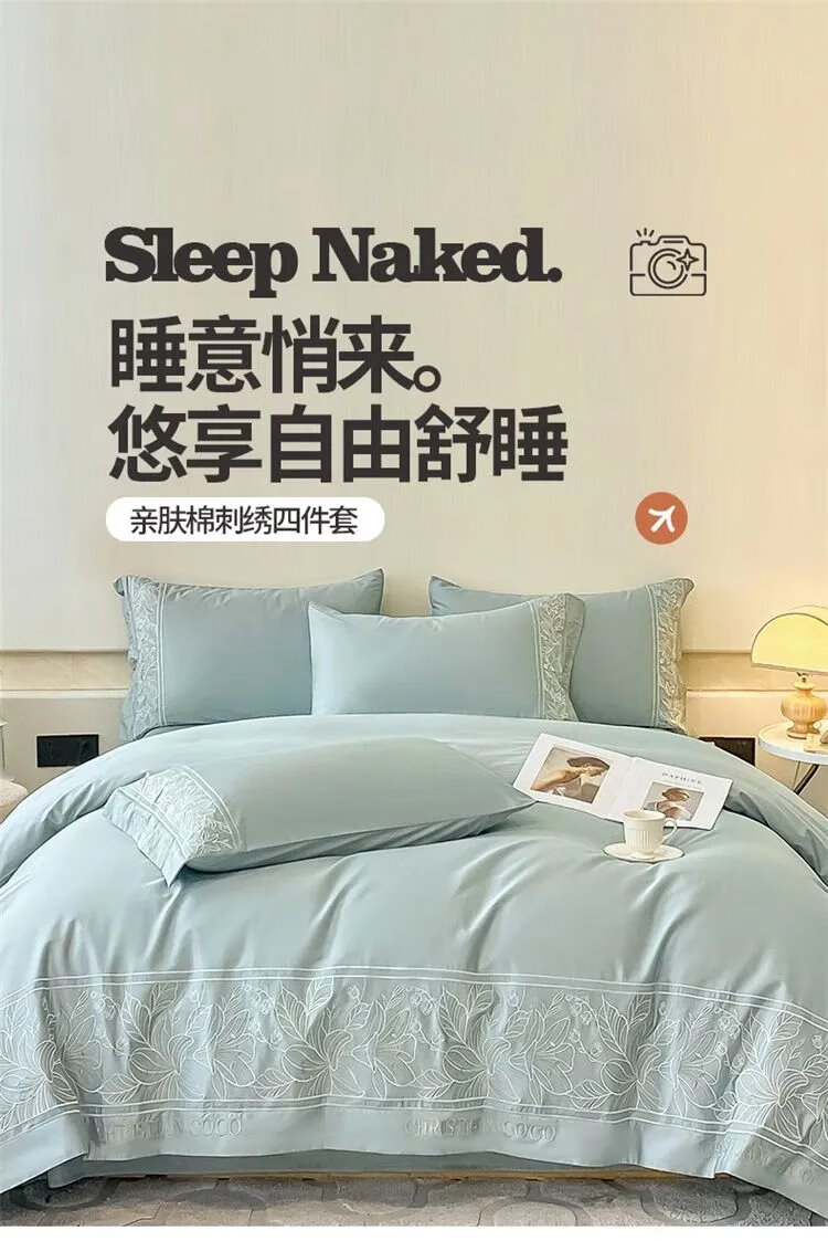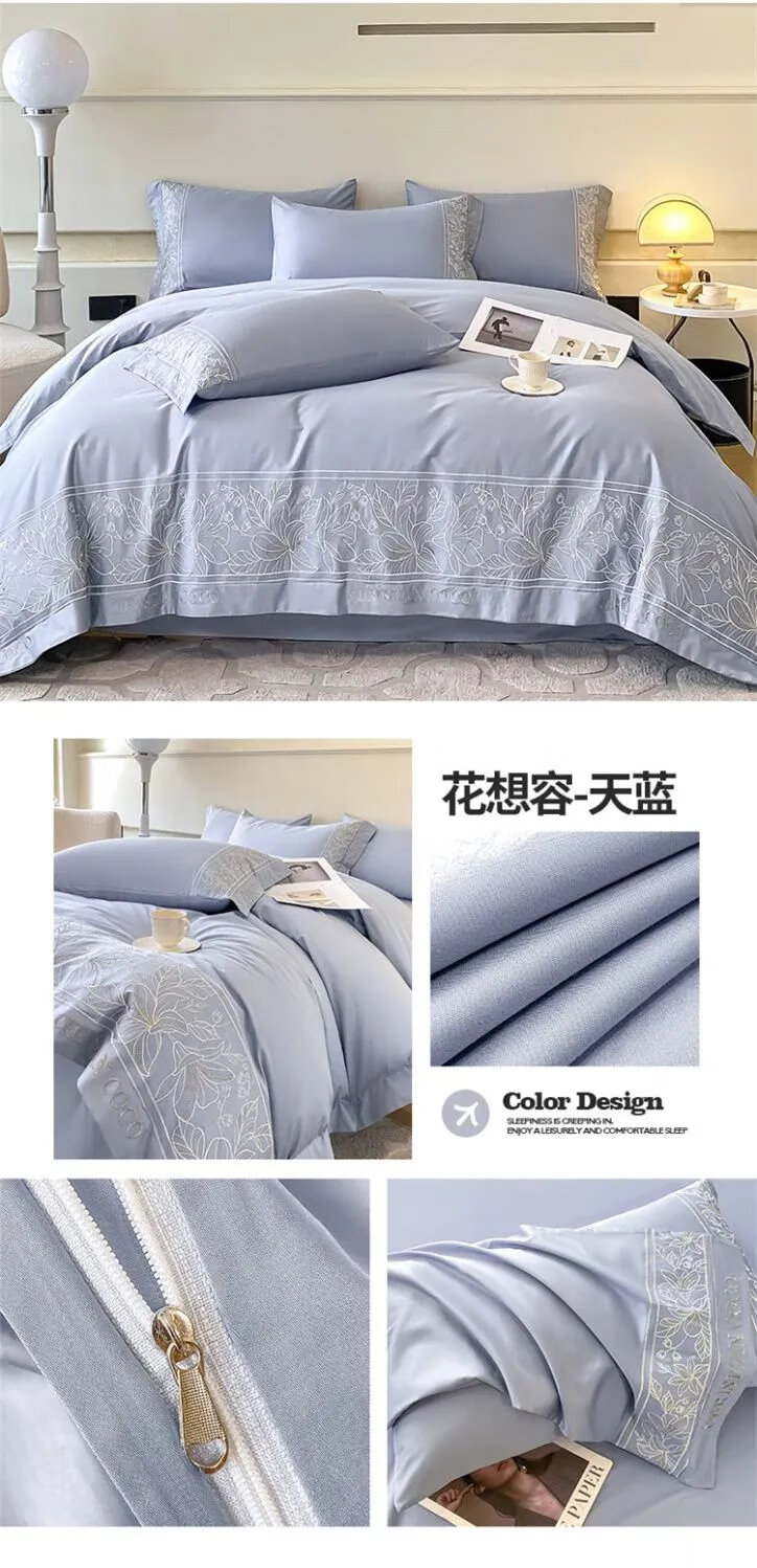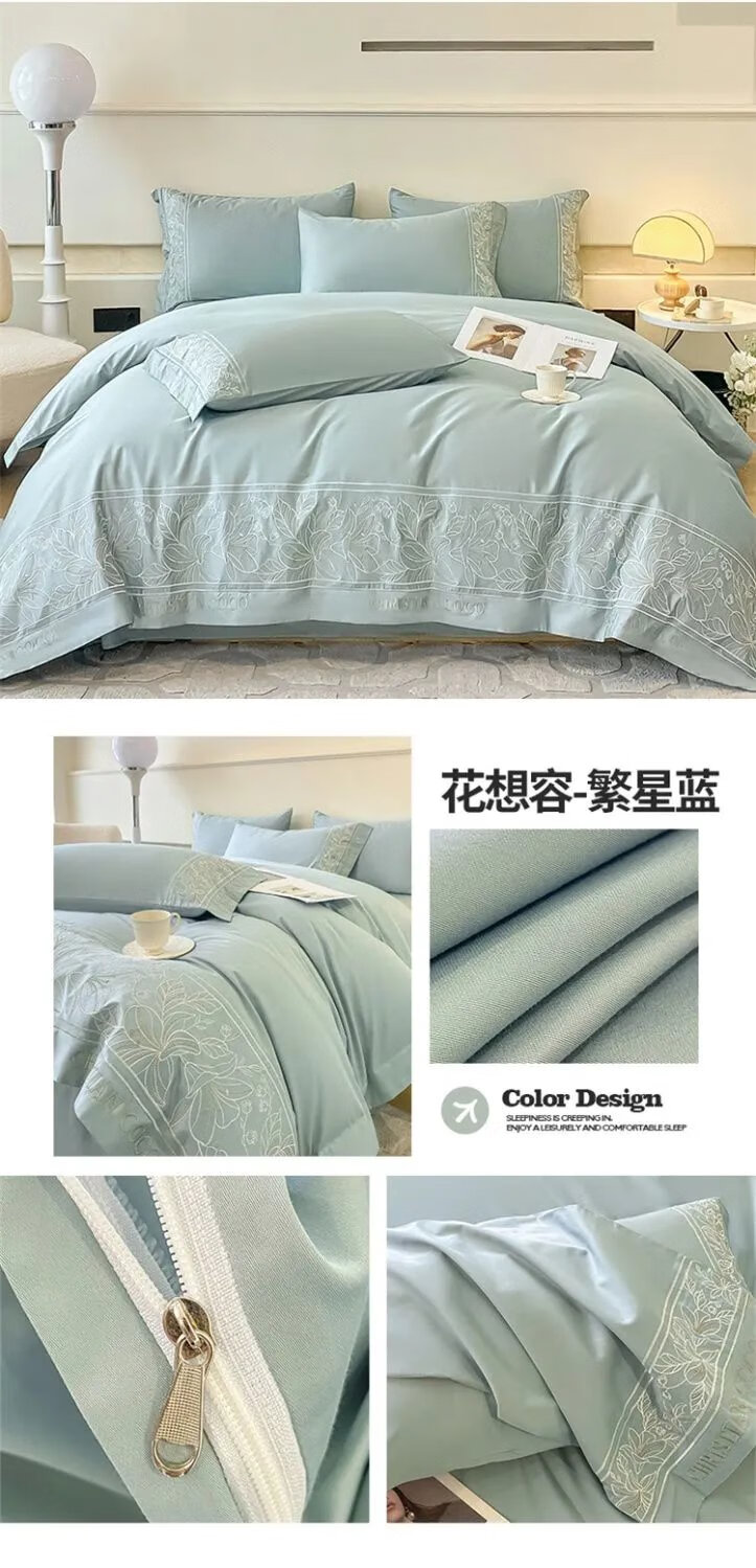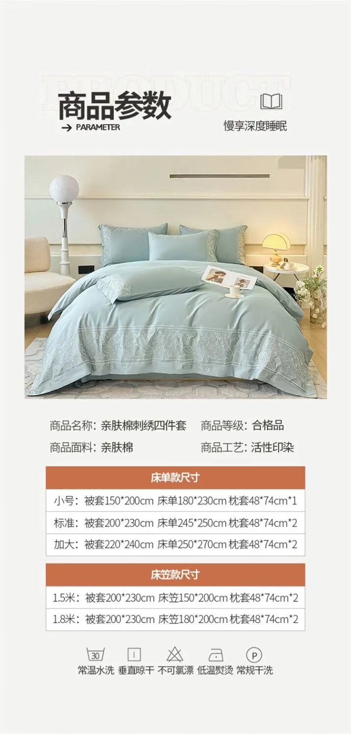 Crystal Home Textiles European Maternal and Infant Long Staple Cotton Four-piece Set Pure Cotton Light Luxury Embroidered Quilt Cover Sheet Sheet Fitted Sheet Full Cotton Upgraded Baby Grade Heavy Embroidery * Starry Blue * Suitable for 1.8m bed Four-piece Set * Quilt Cover 2x2.3m