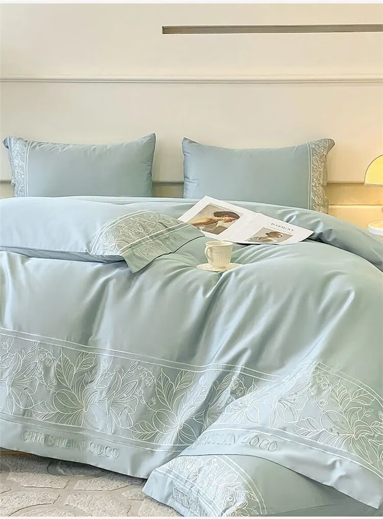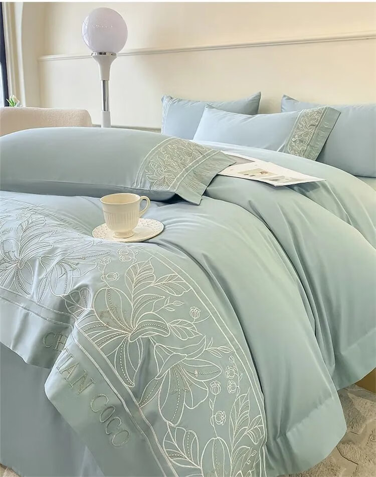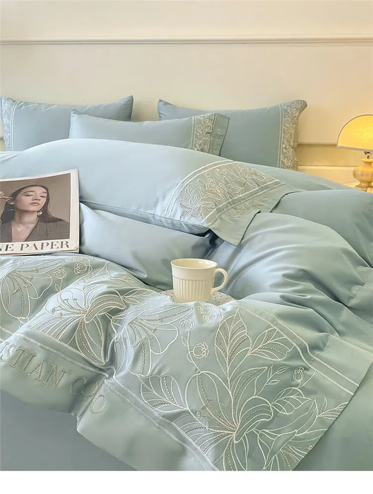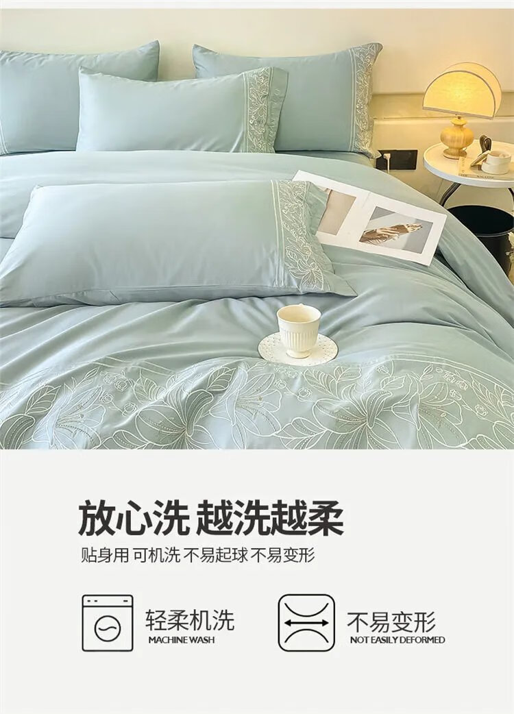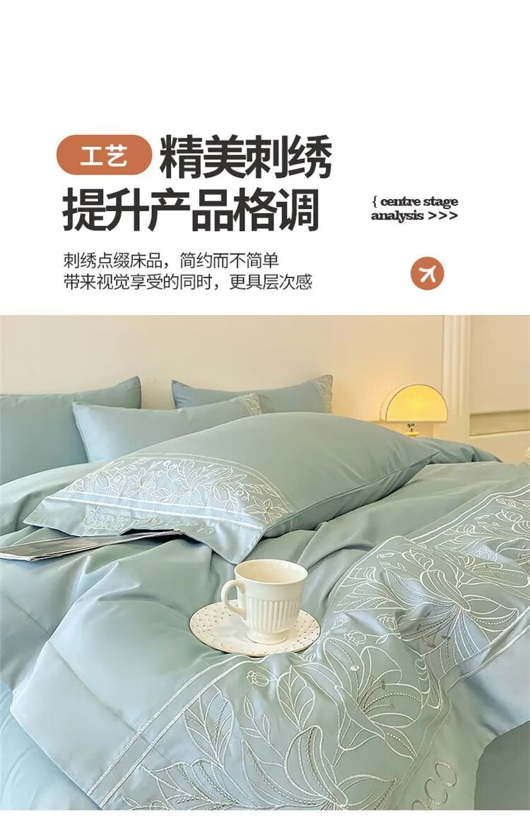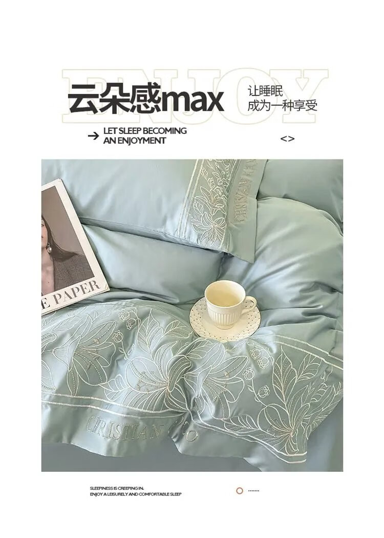 Crystal Home Textiles European Maternal and Infant Long Staple Cotton Four-piece Set Pure Cotton Light Luxury Embroidered Quilt Cover Sheet Sheet Fitted Sheet Full Cotton Upgraded Baby Grade Heavy Embroidery * Starry Blue * Suitable for 1.8m bed Four-piece Set * Quilt Cover 2x2.3m