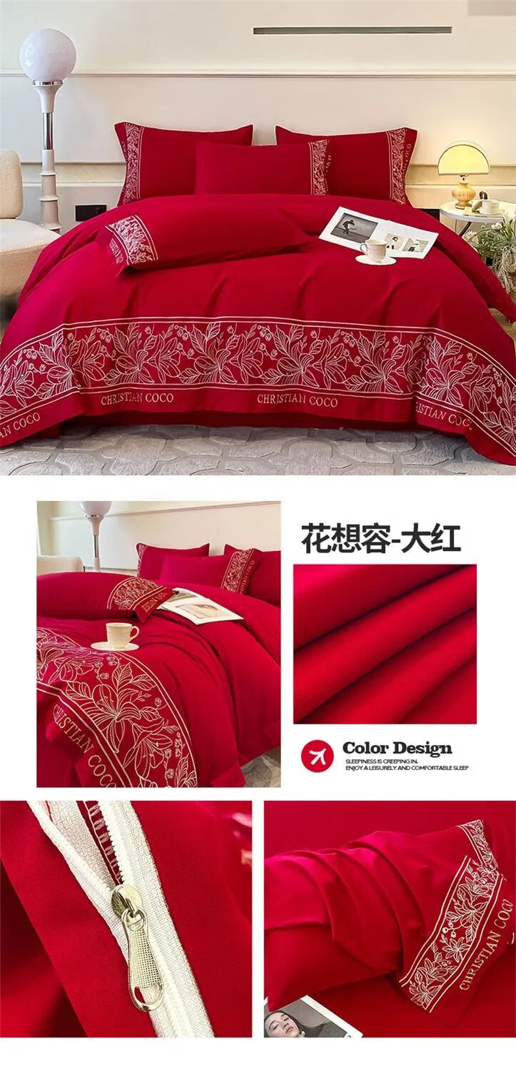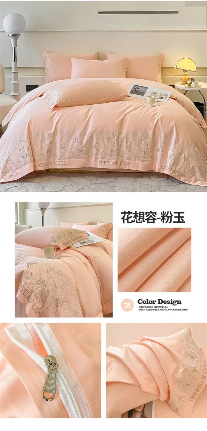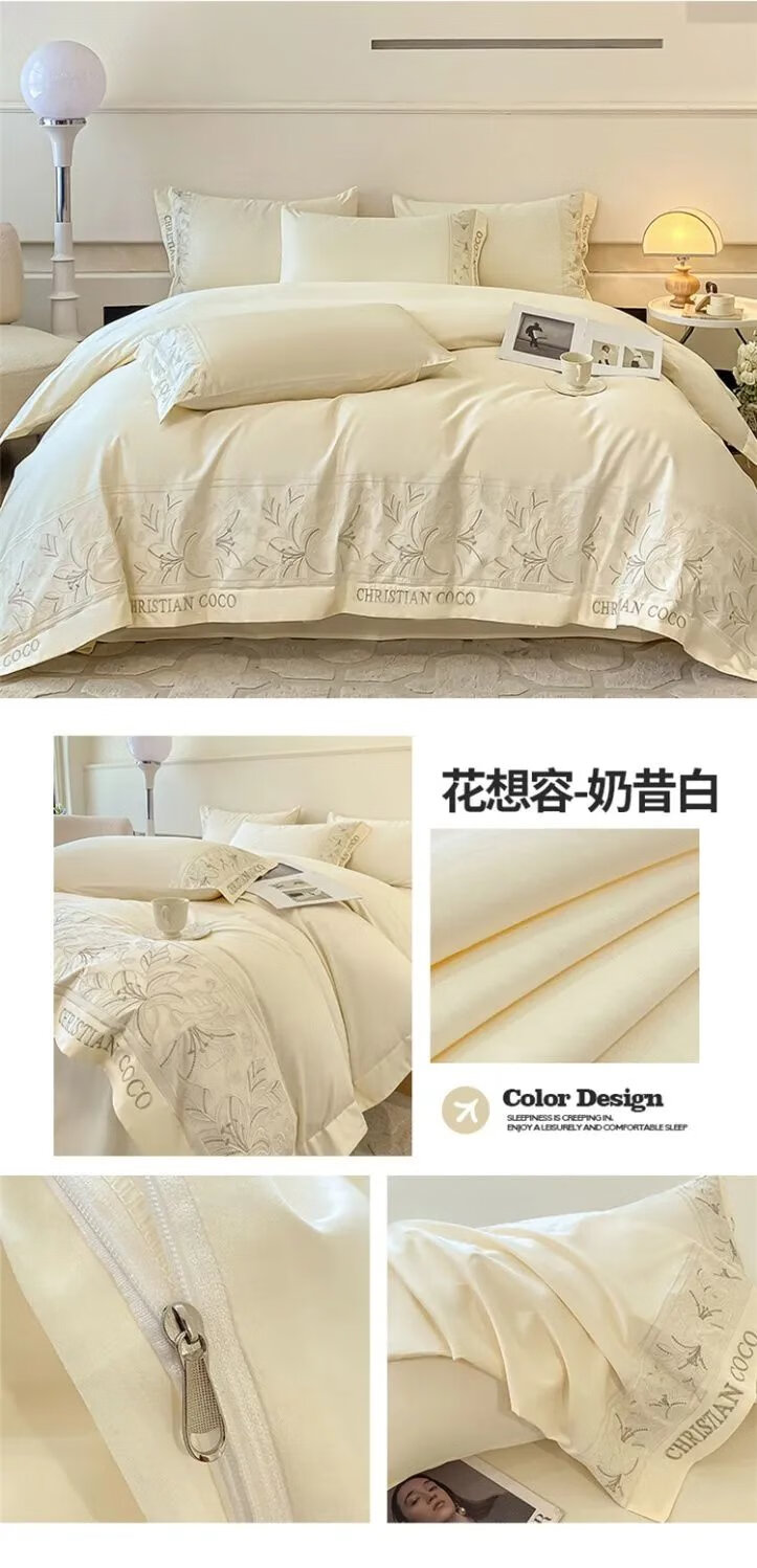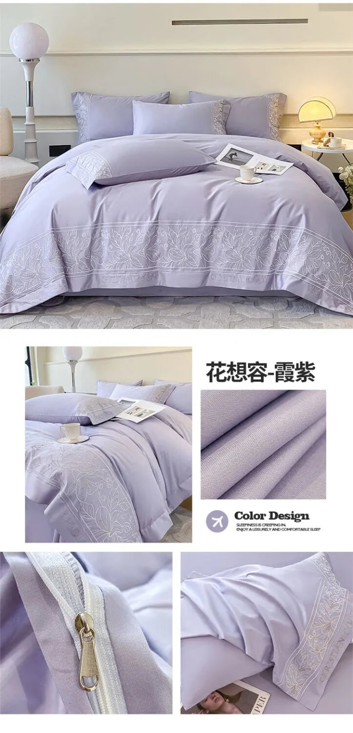 Crystal Home Textiles European Maternal and Infant Long Staple Cotton Four-piece Set Pure Cotton Light Luxury Embroidered Quilt Cover Sheet Sheet Fitted Sheet Full Cotton Upgraded Baby Grade Heavy Embroidery * Starry Blue * Suitable for 1.8m bed Four-piece Set * Quilt Cover 2x2.3m