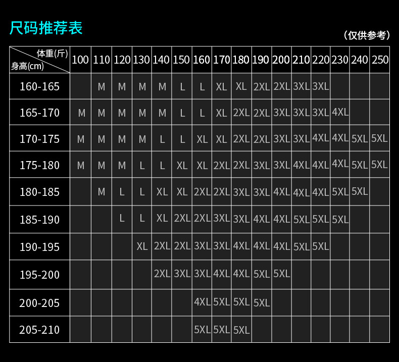 China (cm) 160-165/84-86 165-170 / 88-90 167-172 / 92-96 168-173 / 98-102 170-176 / 106-110