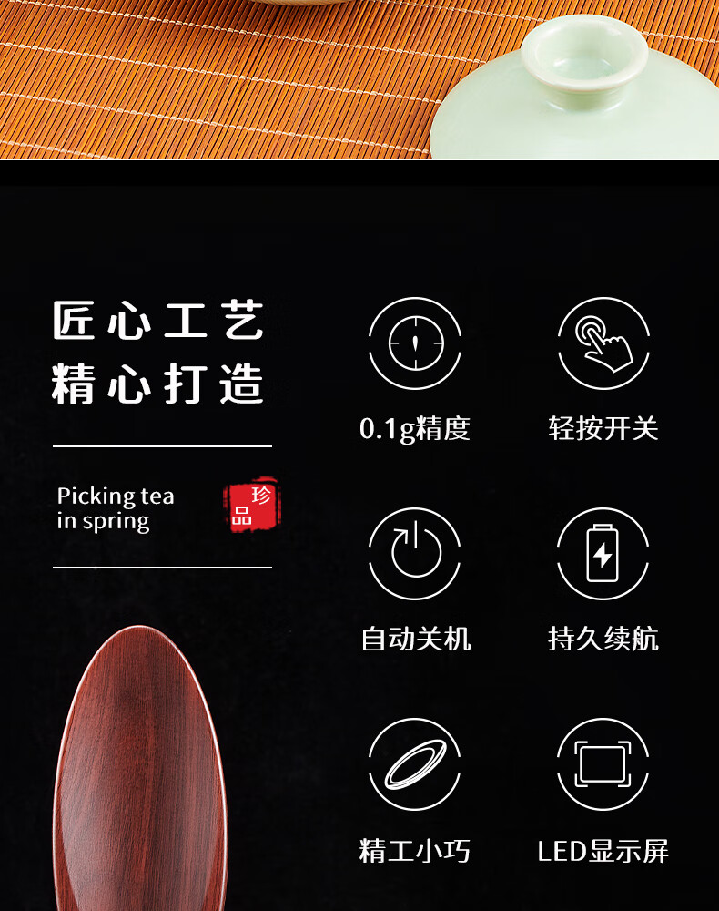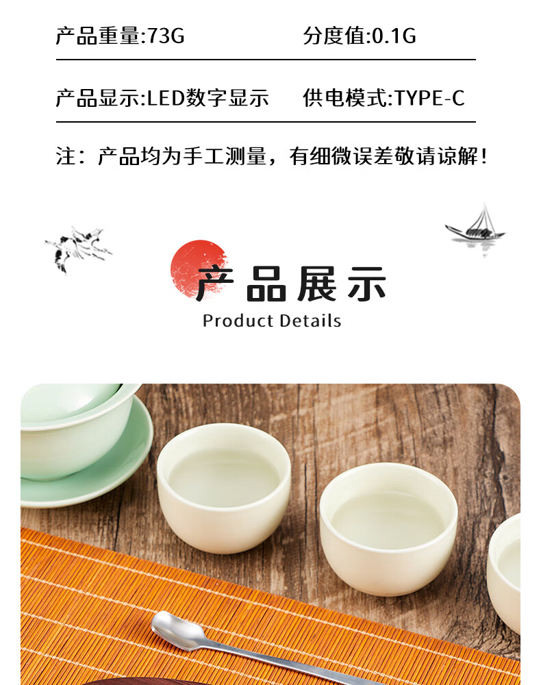 Baijie electronic tea scale, electronic tea scale, tea scale, electronic tea scale, tea scale, electronic tea weighing scale, eighth generation upgraded ingenious design, free tea spoon, LED display, automatic sleep