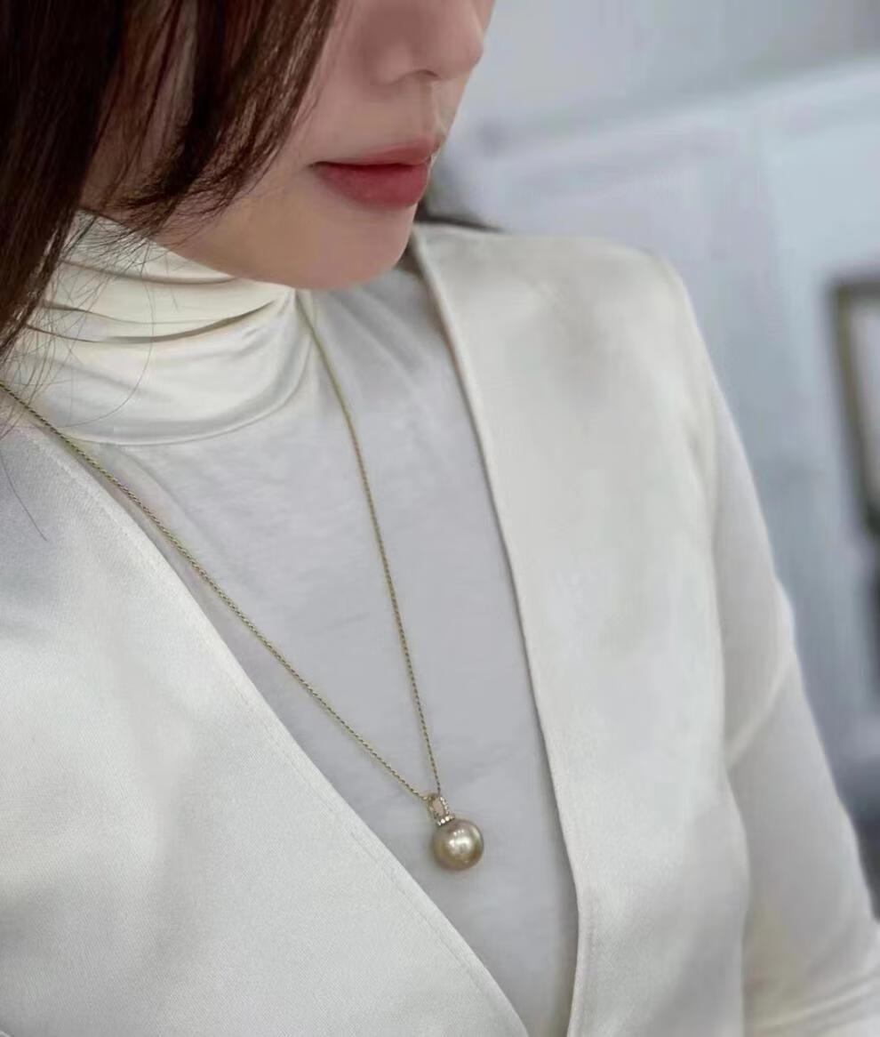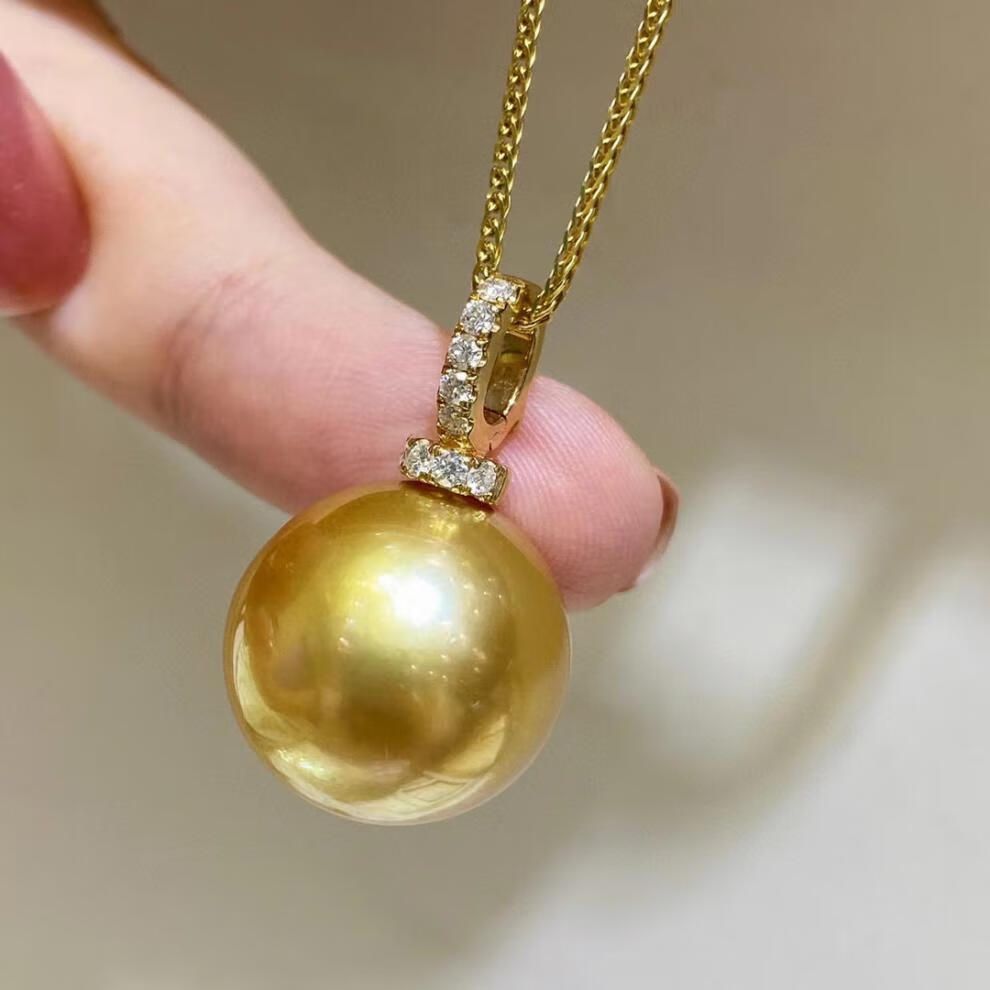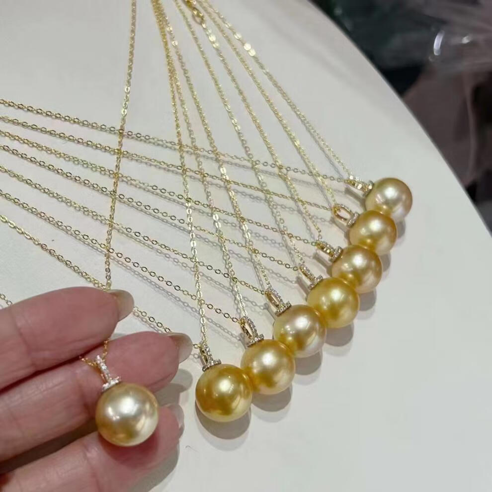 Spinner 18k gold seawater pearl necklace South Sea gold bead pendant round strong light rich gold earrings movable buckle 12-13mm 10-11mm